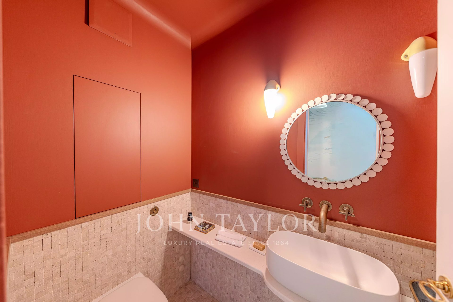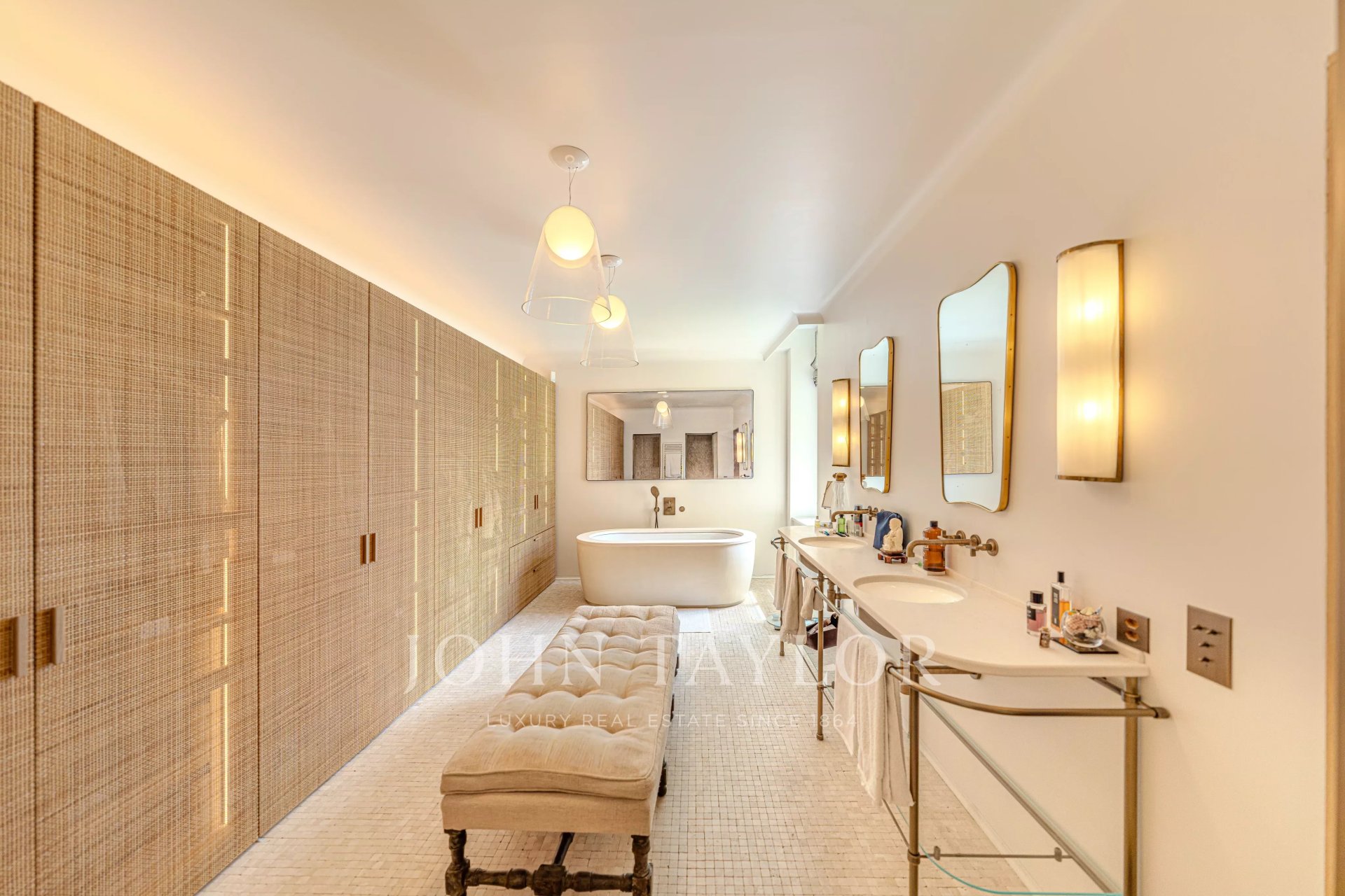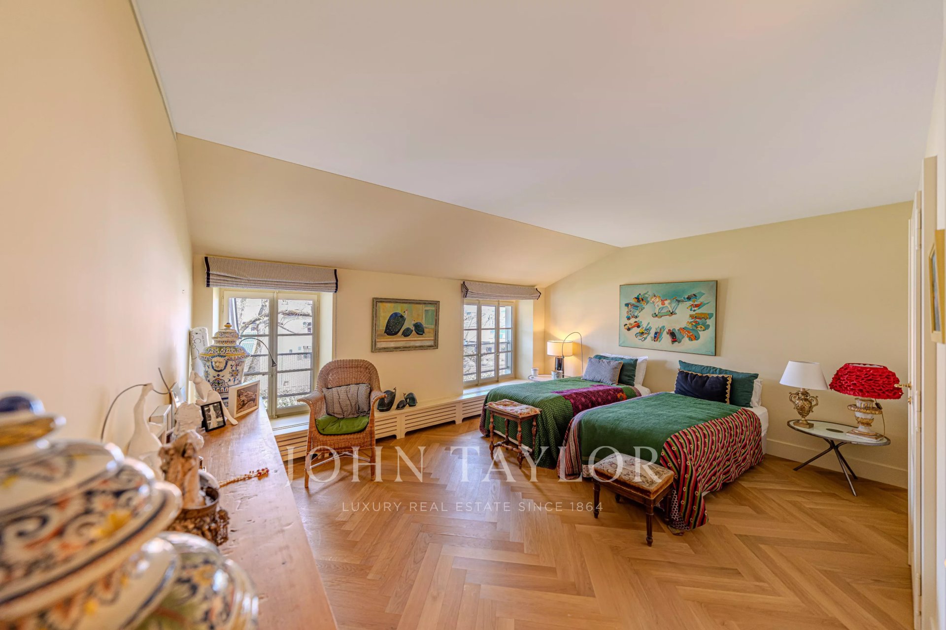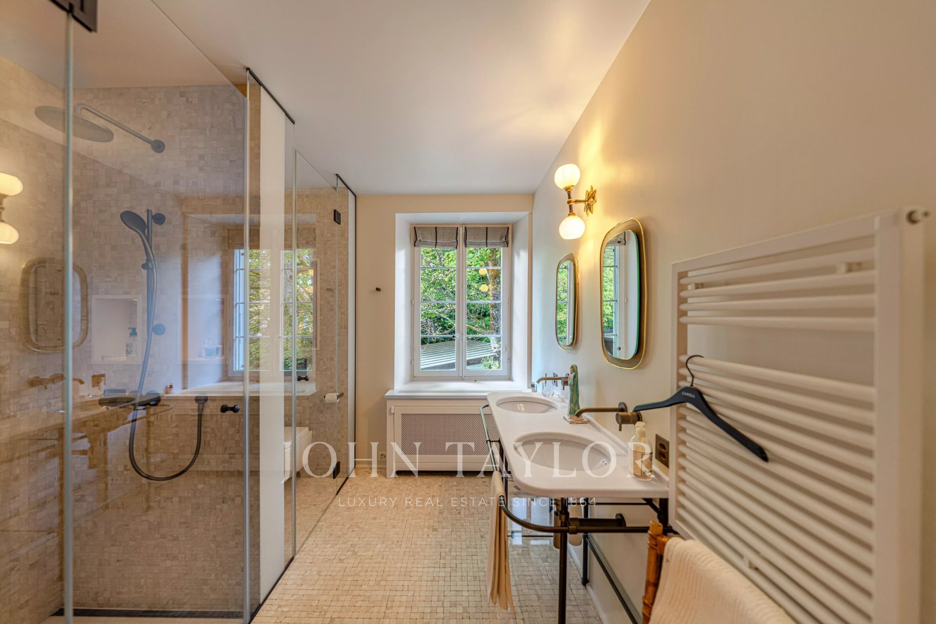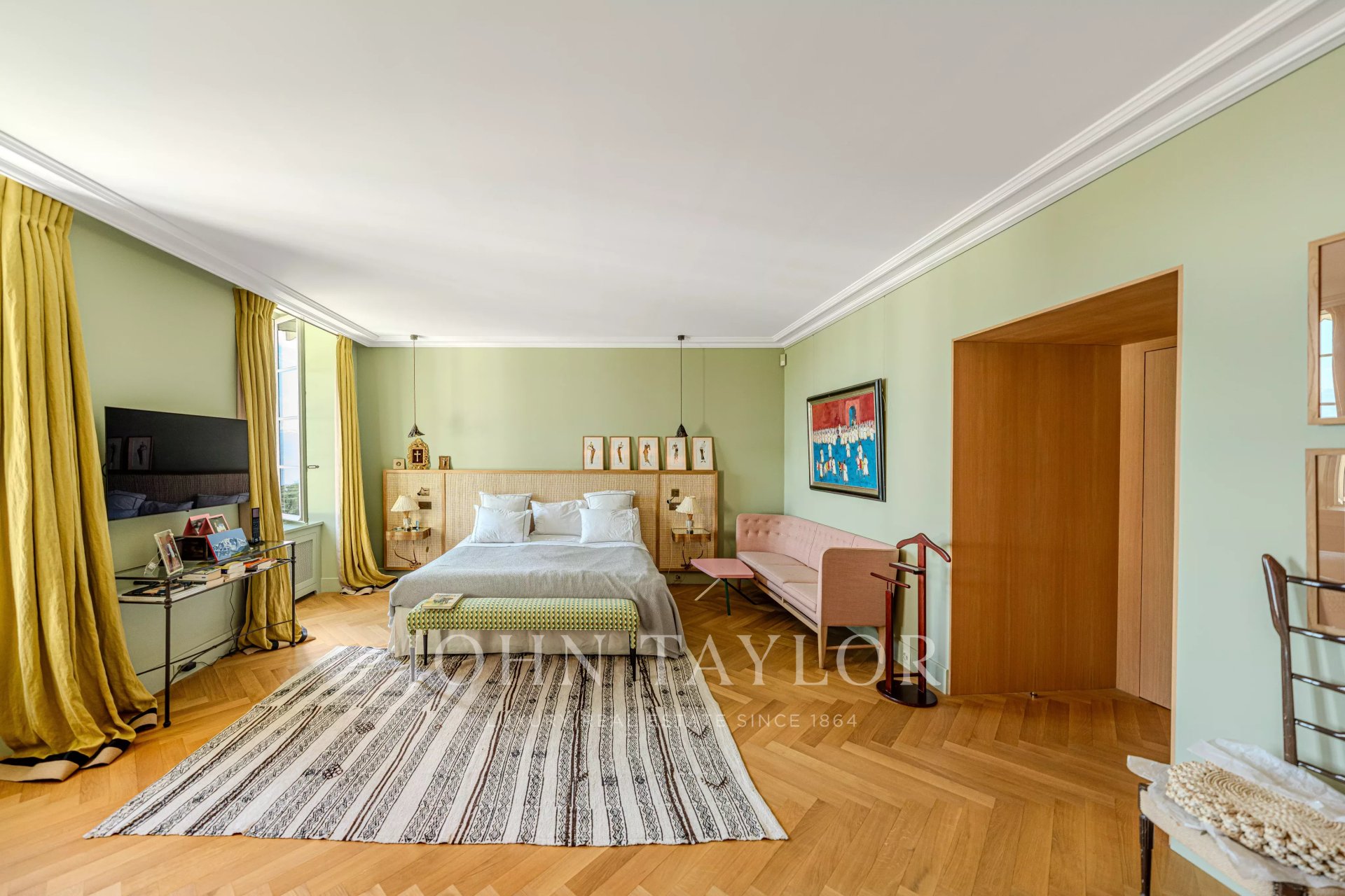 -Privileged location between Geneva and Lausanne, 200 meters from the lake and close to shops and the train station-Historical estate from the 18th century, fully renovated, within a private park of 7,000 m² with heated pool-High-end residence consisting of only 5 apartments-266 m² habitable apartment, renovated with very high-quality materials-Generous volumes, high ceilings, and elegant layout-Reception rooms offering a panoramic view of Lake Geneva and the Alps-A contemporary artwork by Matthieu Cossé enhances the corridor, inspired by Lake Geneva and created in a color palette in perfect harmony with the apartment-3 complete suites with bathrooms and dressing rooms-Spacious and fully equipped kitchen-Private garden of about 1,000 m²-Double garage, cellars, and wine cellar, additional at CHF 100,000