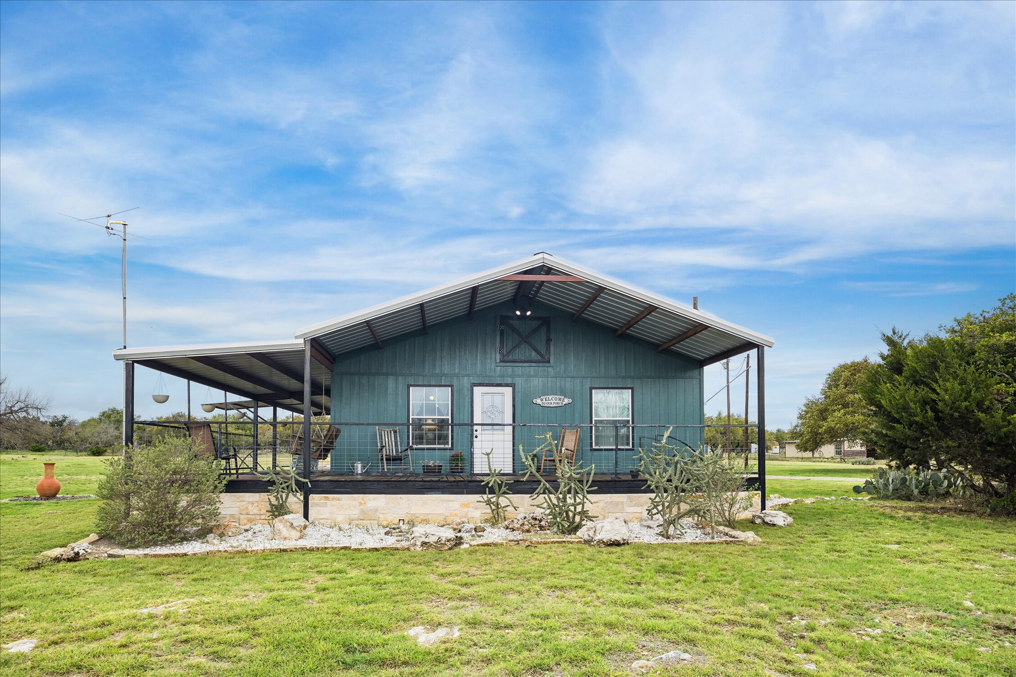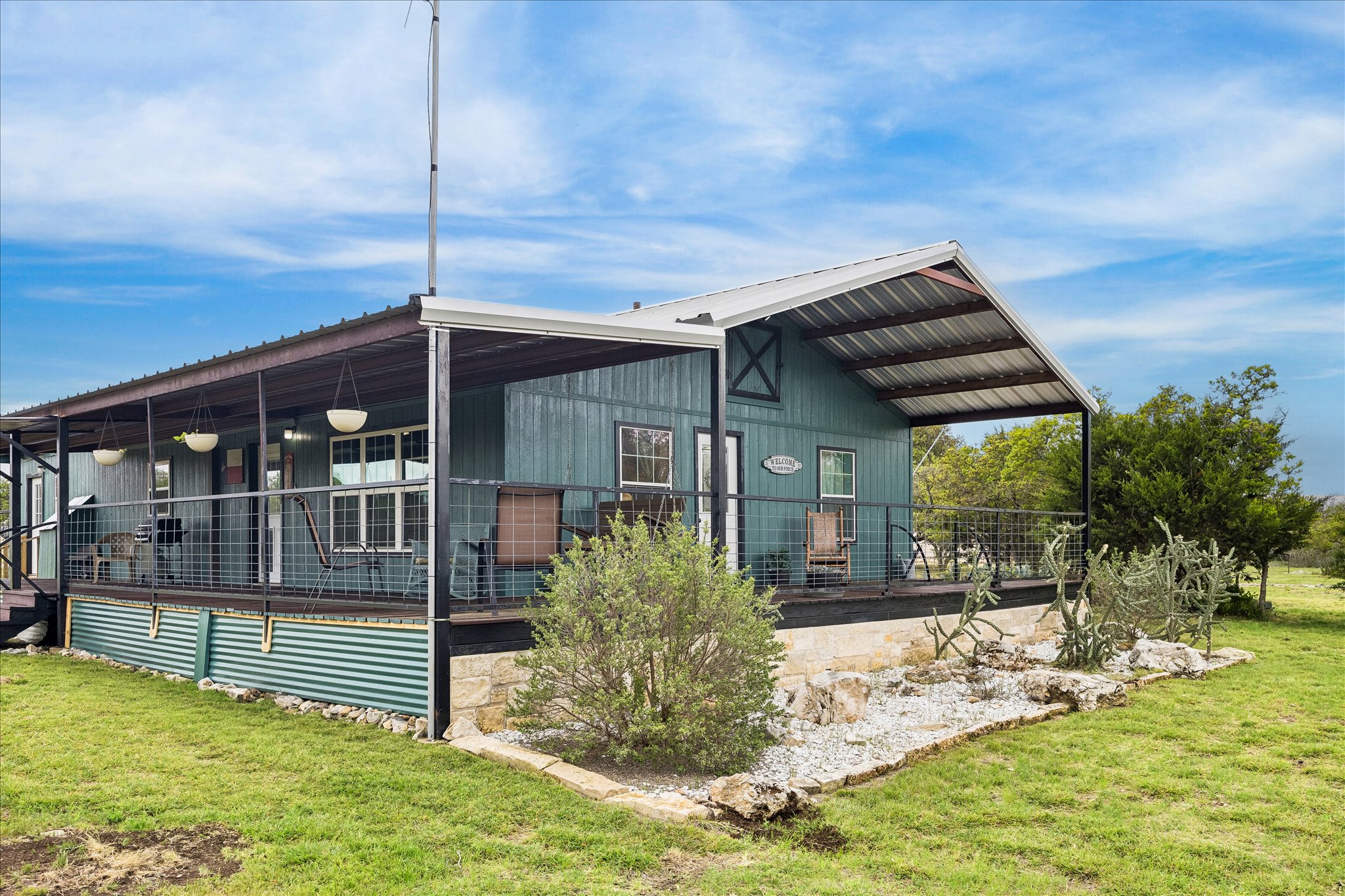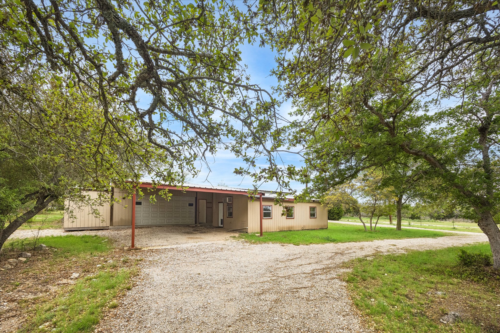 Tucked away in the peaceful countryside of Harper, Texas, this thoughtfully owner-built property offers a rare blend of durability, efficiency, and Hill Country charm. Constructed with a steel-built roof by Texas Steel Buildings and supported by pier-and-beam steel frame flooring, the home was designed with longevity and structural integrity in mind.Inside, comfort meets practicality with 2x6 walls, double-pane windows, a double-insulated attic, and exceptional overall insulation—creating an energy-efficient environment year-round. The spacious layout includes a large laundry room with ample space for a freezer, home office setup, or additional storage, along with generously sized closets throughout.Outdoor living shines with a 10-foot covered porch stretching across the front and along the side—perfect for enjoying the surrounding natural beauty. The property is dotted with mature live oaks in the front and features several serene groves in the back, offering both shade and privacy. A wet-weather creek adds to the landscape’s character and charm.Functionality continues with multiple improvements: a garage/shop situated on a 30x30 slab with an additional 26x24 slab, a two-car carport at the shop, and a small attached carport at the home. There’s also an RV cover conveniently located behind the house. Two drive-through gates provide easy access, including one equipped with an automatic opener.Set in a quiet neighborhood, this property delivers a sense of seclusion while still offering the features and flexibility for everyday living, hobbies, and entertaining. A truly unique opportunity to own a well-built home surrounded by the natural beauty of the Texas Hill Country.