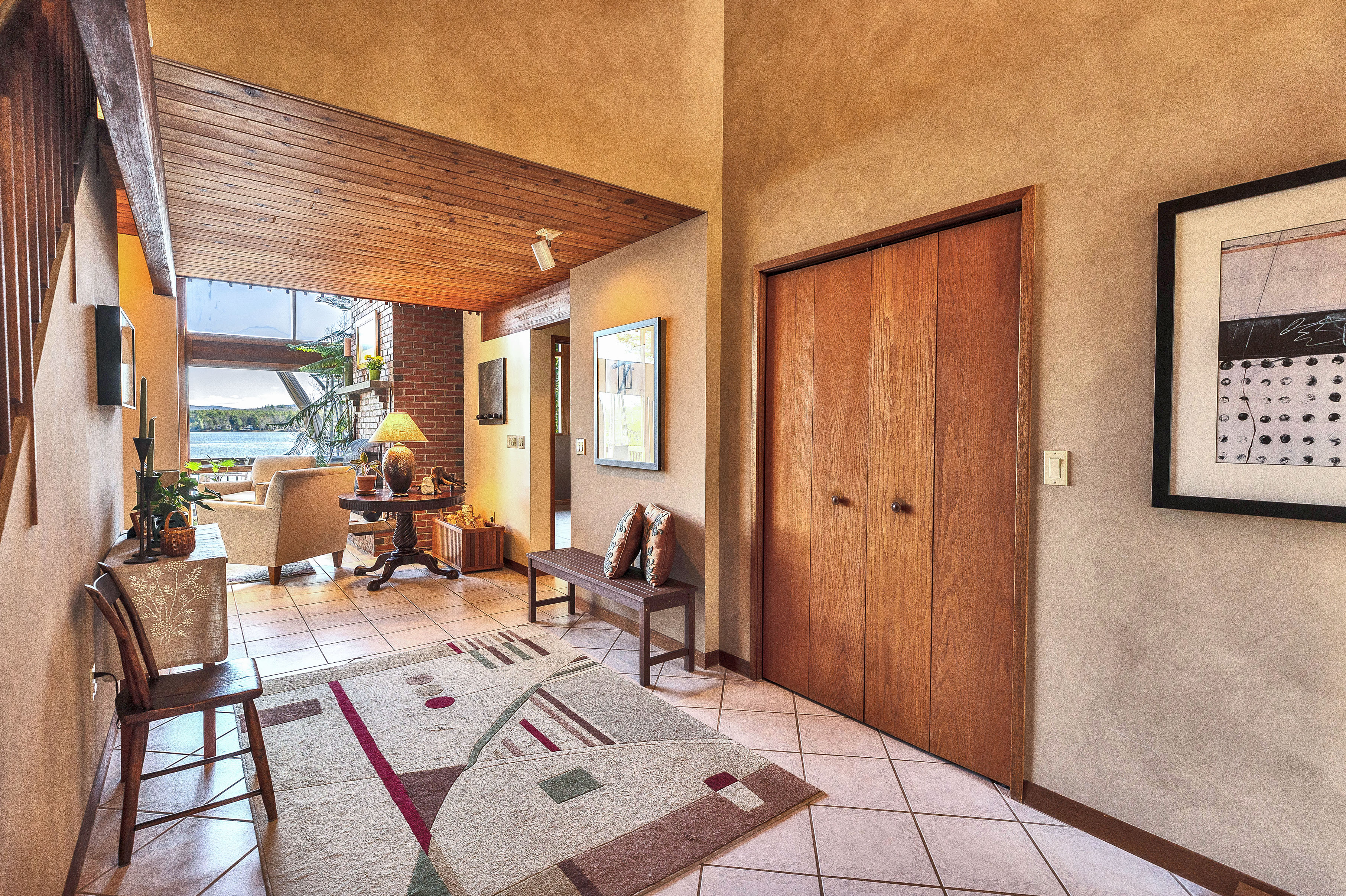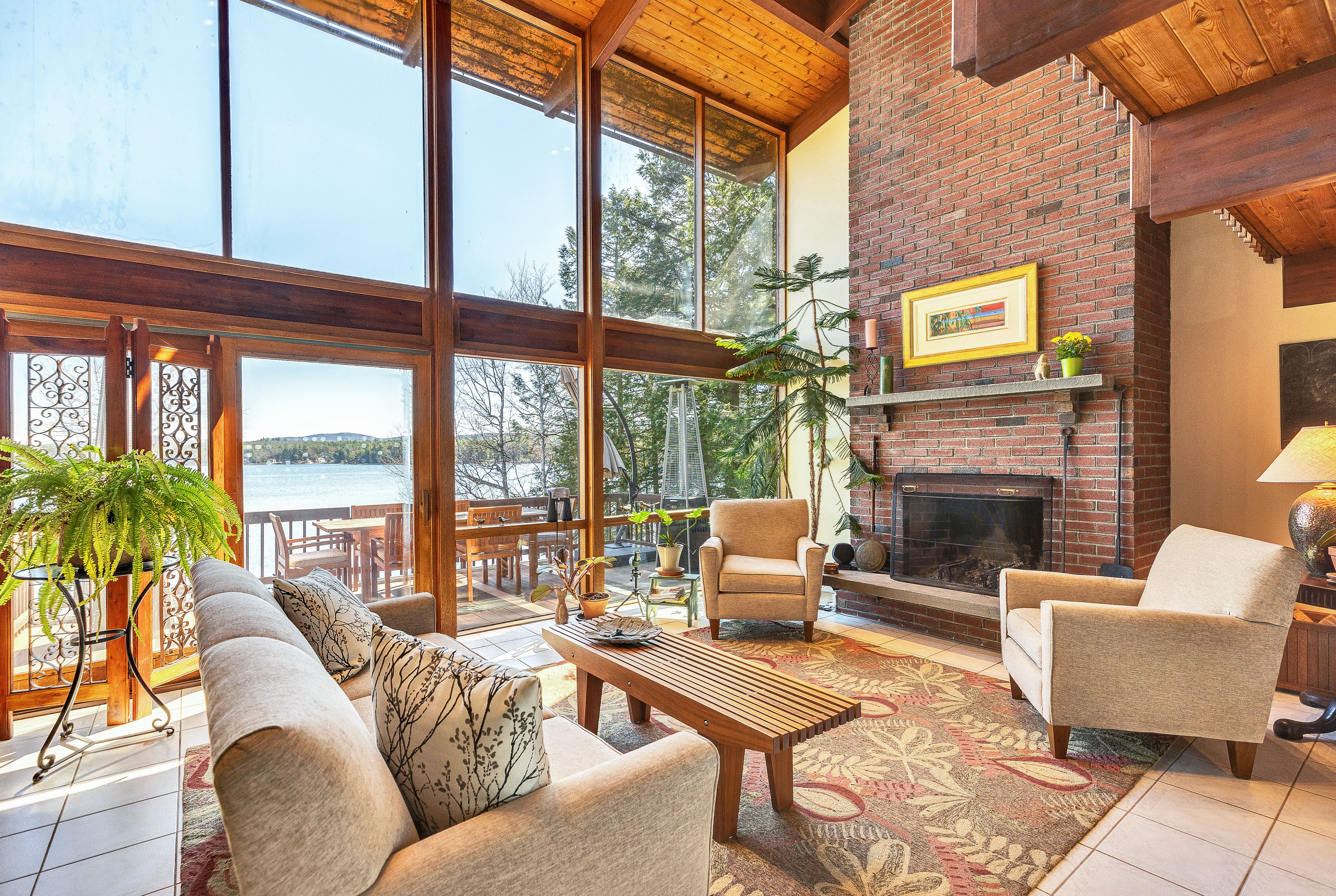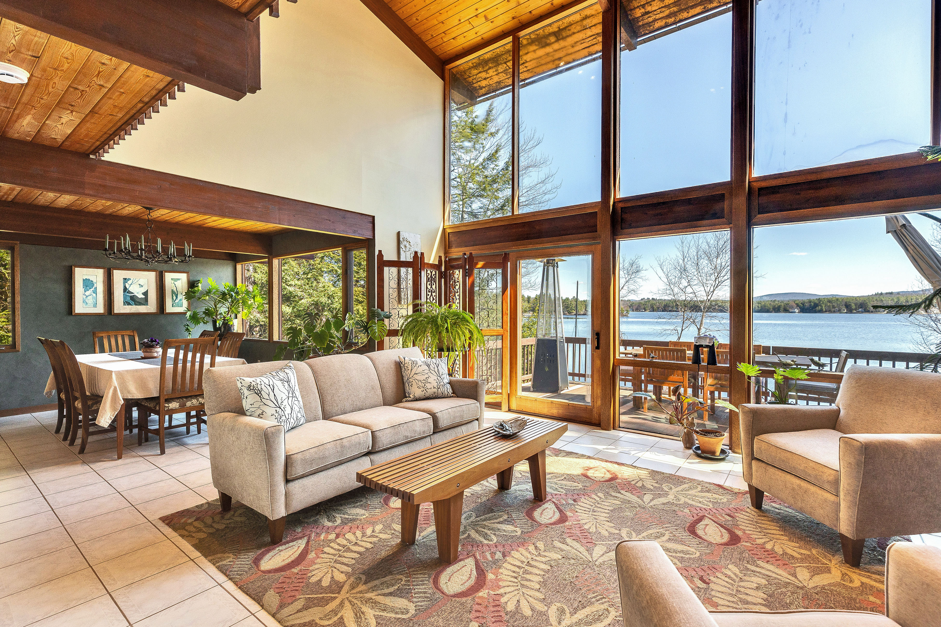 Road's End.. set at the end of a gravel drive on the most sought after section of clear 594 acre Lake Monomonac, is this distinguished contemporary waterfront home, available for the first time in over 20 years. The dramatic contemporary interior offers unobstructed views of the lake and mountains beyond from its private open lawn setting with beautifuilly developed waterfront including sandy beaches, docks and picnic areas. The expansive interior (4 bedrooms, 3 and 1/2 baths and fireplace hearth) includes such exciting features as first level owners bedroom suite with spa bath, efficient geo-thermal heating and cooling, a large gourmet kitchen, vaulted ceiling family room and attached three car garage. The lower level offers walk out access to the rear lawn and waterfront and includes an additional bedroom and full bath, party kitchen, open concept recreation room/office with dining area and woodstove hearth and screened porch. Additional utility area and 4th garage bay complete the picture. A rare find indeed...in a prized location on a full recreational lake set just minutes from the Massachusetts border. So close...and yet a world away!