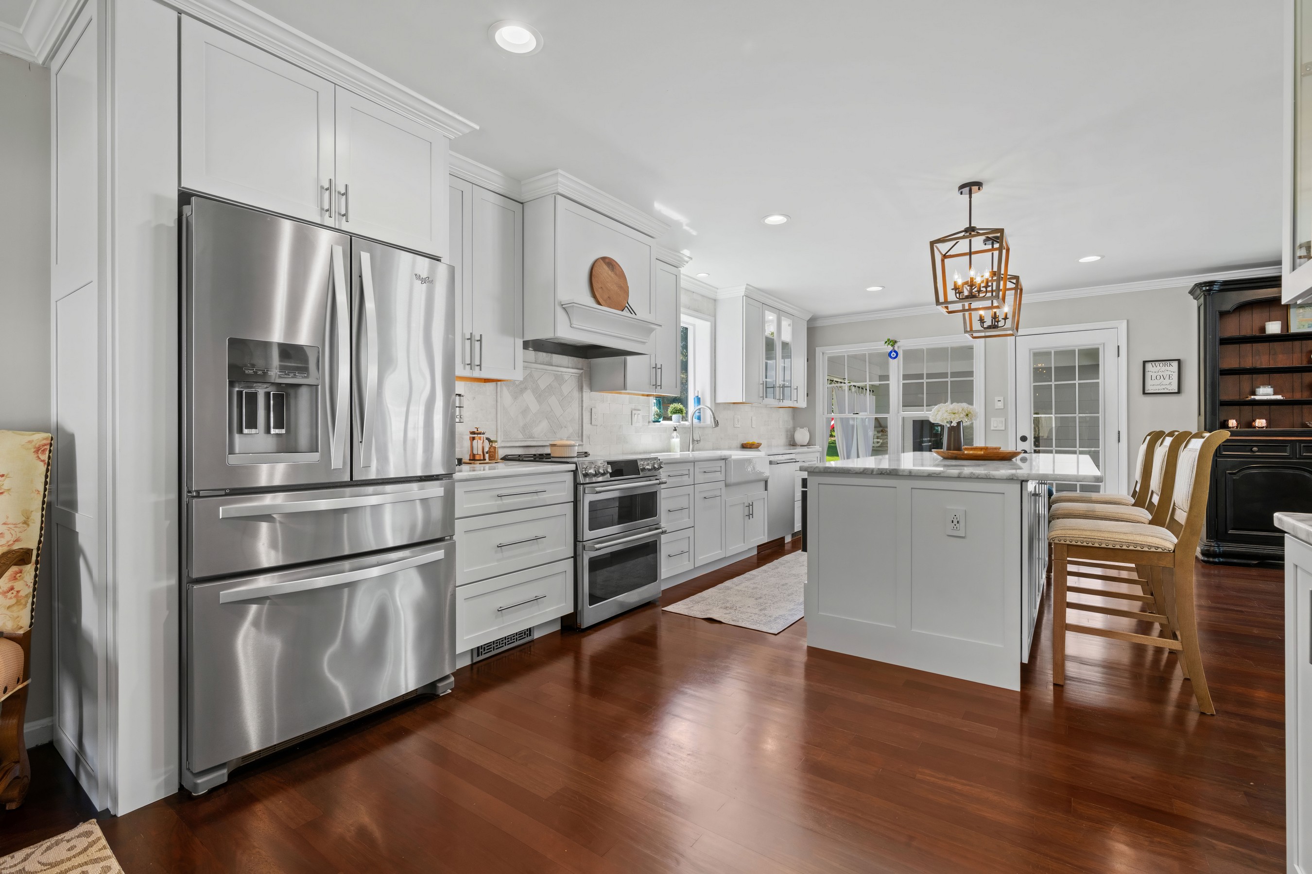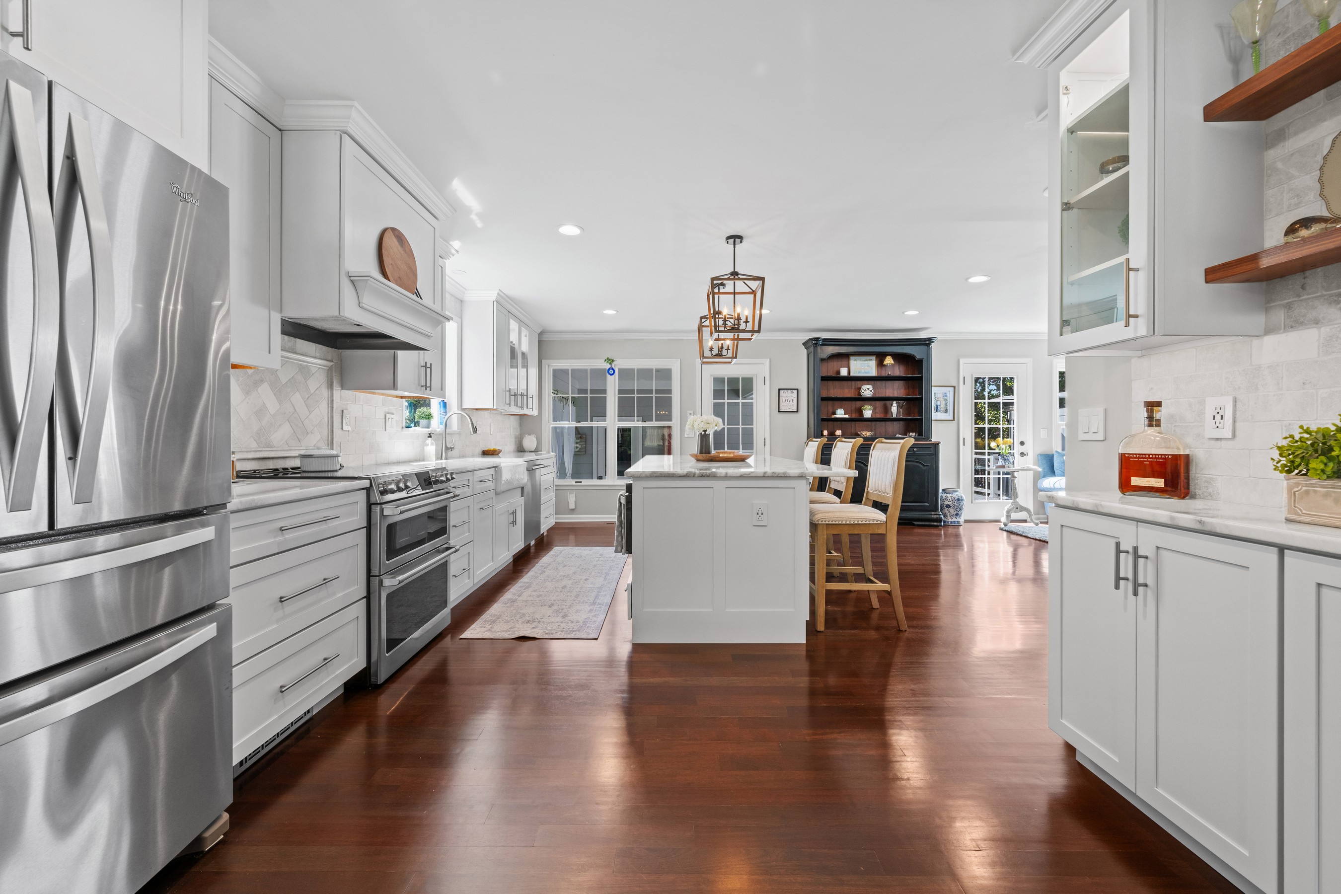 This meticulously maintained and thoughtfully upgraded single family home is positioned on a unique lot, backing up to the original undevelopable farmland, within the quiet, historic, highly-sought-after neighborhood of Ashland. Move right in and enjoy five bedrooms, four bathrooms, a two-car garage and the best of Baltimore County. Abundant natural light streams through the new first floor windows onto upgraded hardwood floors. A newly redesigned open concept kitchen overlooks the new extensive Trex deck. This is an entertainers' dream layout with a beautiful island over 8.5 feet in length! Stainless steel appliances, Italian marble backsplash, and quartzite (natural stone) countertops grace the custom kitchen with soft-close drawers equipped with custom organizational inserts. Upgraded appliances include a double oven, microwave oven drawer, wine fridge, and designer hood cabinet. Flanking the entry foyer on the front of the home, are the open living room and dining room each with light filled bay windows. The spacious dining area flows directly into the kitchen which overlooks the family room anchored by a new gas fireplace and built-ins. Gas is available for use with other appliances if desired. A half bath and polished laundry space with custom cabinetry are located in the center of the main floor. Freshly carpeted stairs ascend to four bedrooms with plenty of room to relax. The primary suite includes two walk-in closets designed with organization systems to ease everyday living. The primary bath was just completely redone and upgraded with high-end fixtures, separate shower and elegant freestanding soaking tub, creating a spa experience within your own home. Another full bath is shared by the three adjacent bedrooms. The lower level boasts high ceilings and new carpet with an open floorplan, a bedroom with a connected full bath suite, and storage areas. Outside, the large rear Trex deck extends from the house, wrapping around and connected with a covered porch space to the two-car garage, which includes a level 2 electric vehicle charger. The wide driveway at the back has room for two additional vehicles and is at the end of a shared drive, abutting an extensive open field with pine trees, creating a feeling of privacy and connection with the natural surroundings, with plenty of space for outdoor play. A new roof was installed in 2023. Enjoy year round “low maintenance” living as the Ashland HOA monthly fee of $130 includes lawn treatment and mowing, semi-annual clean up and trimming, mulching front beds, and snow removal to the front door and garage door. This home is surrounded by mature plantings and steps from the entrance to the NCR Trail, while still having the lifestyle amenities of Hunt Valley Towne Center just minutes away. You must see this home to fully appreciate the attention to detail.