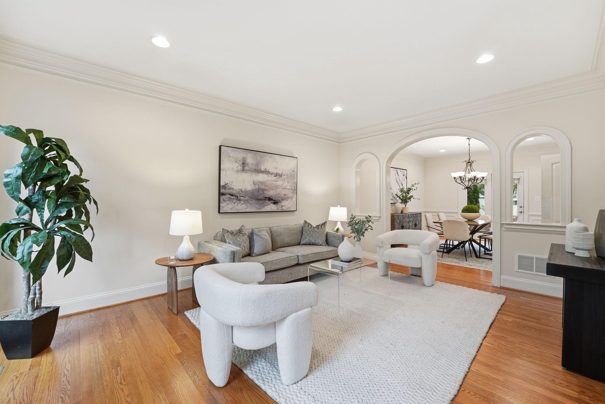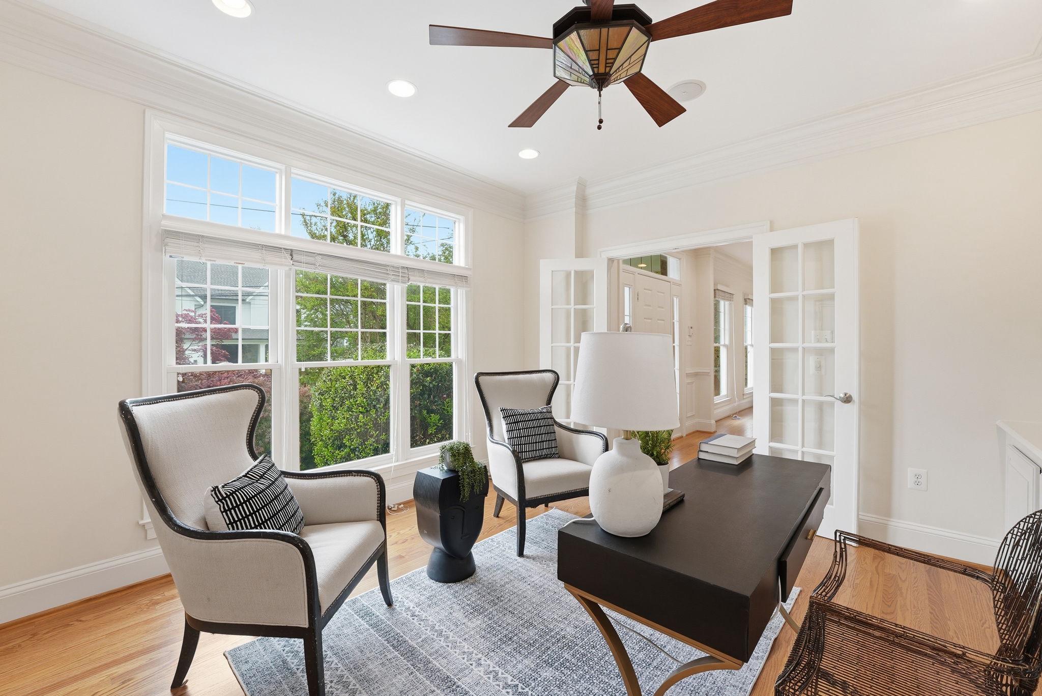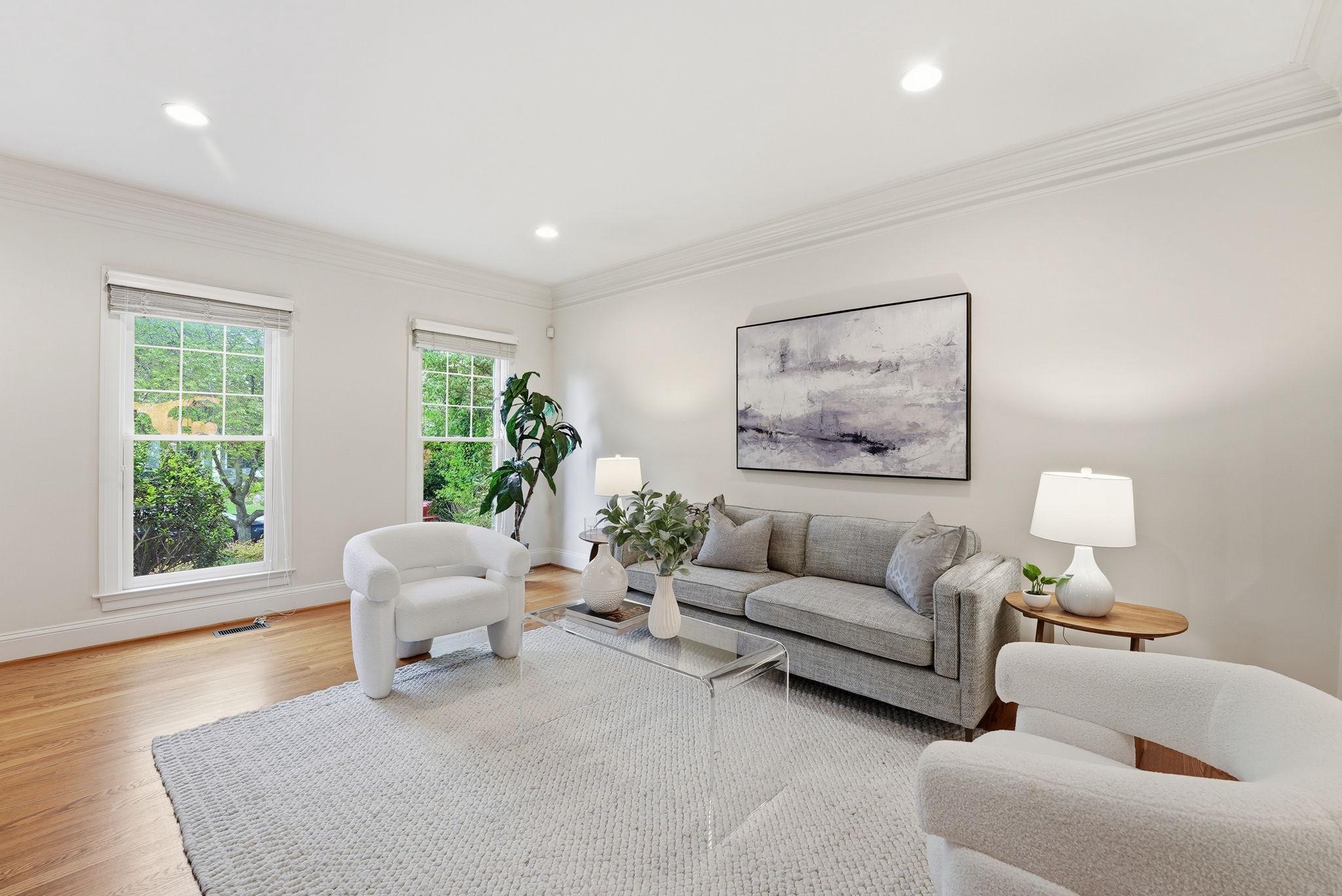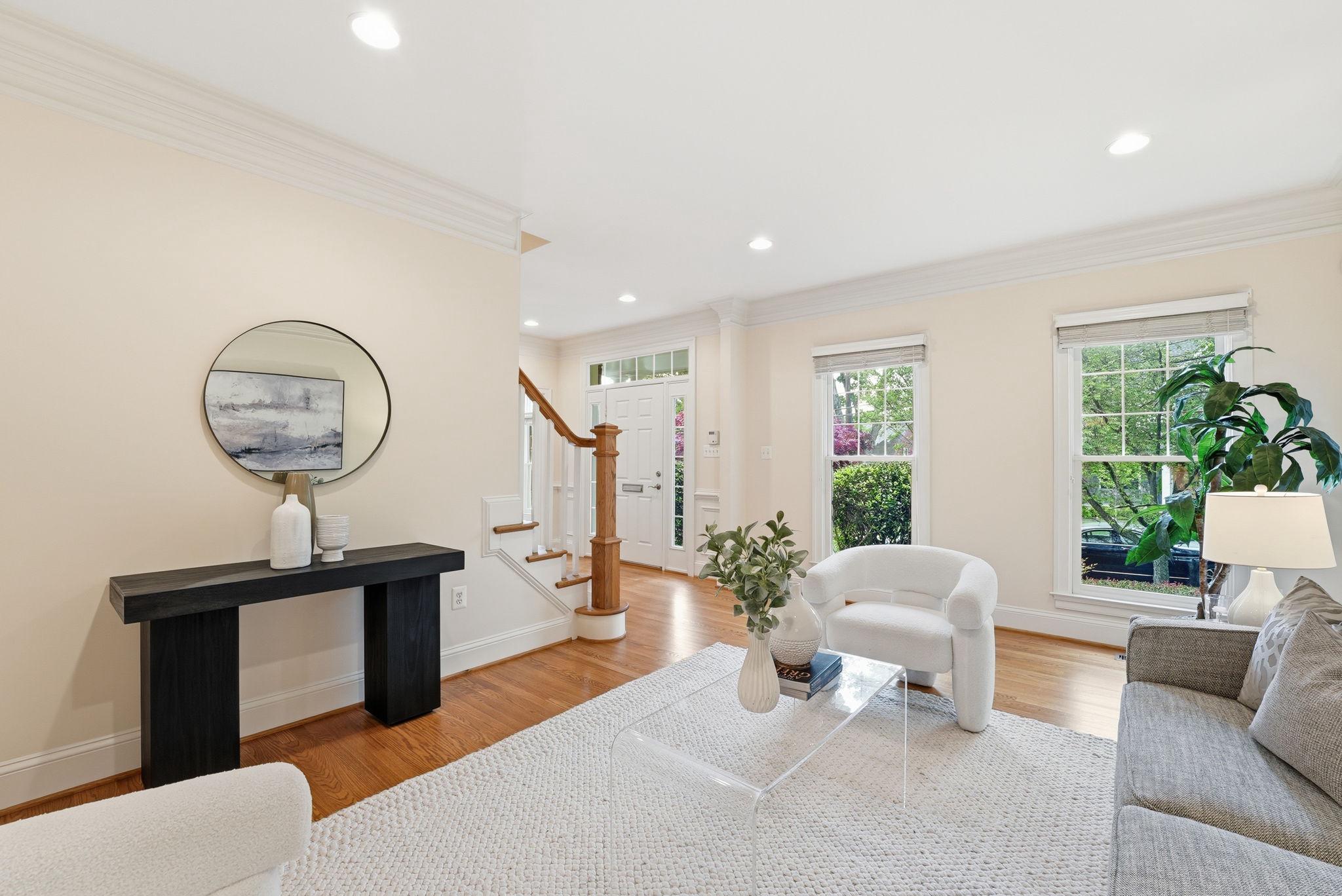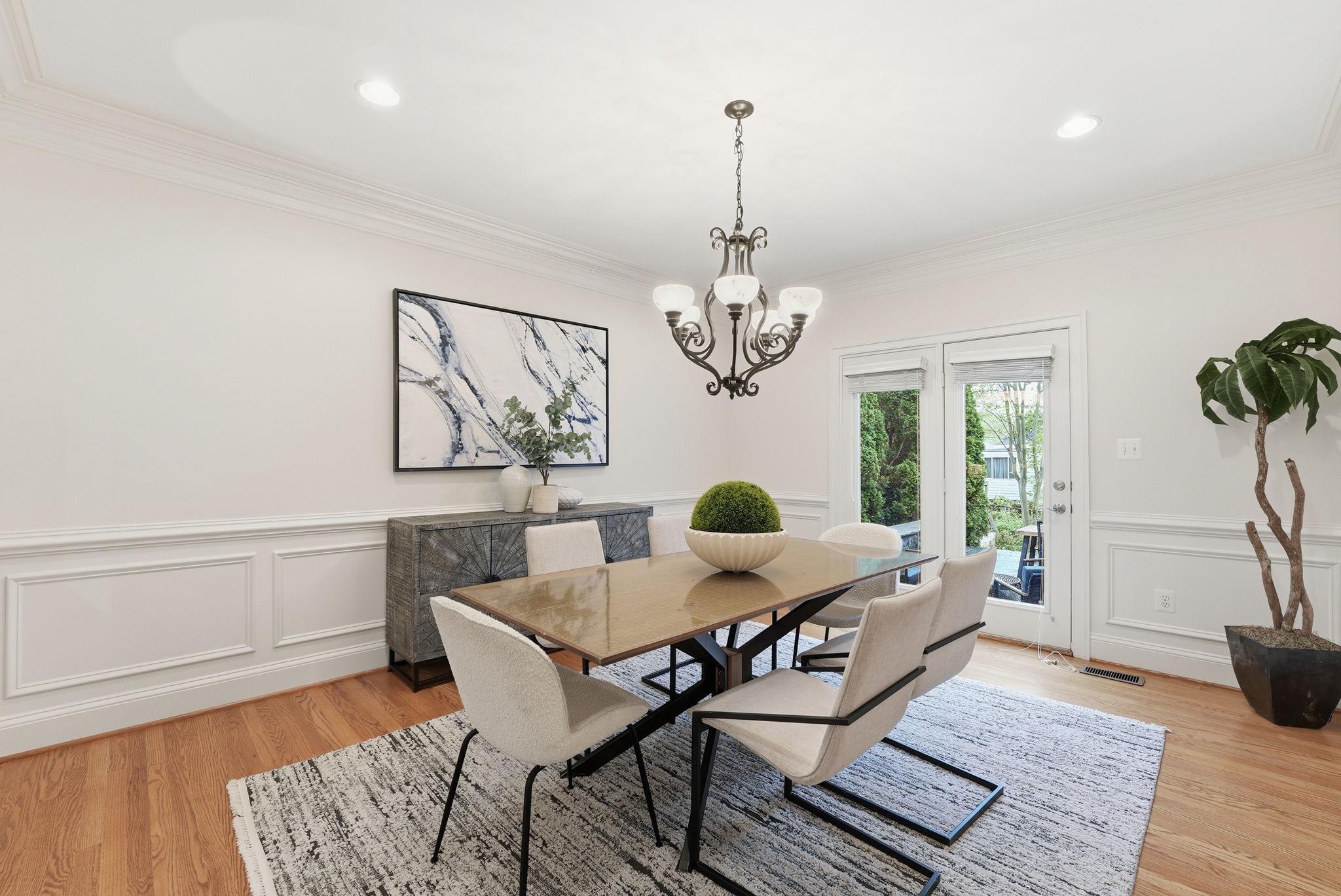 Welcome to this exquisite Craftsman-style residence, built in 2003, offering a harmonious blend of luxury and comfort, perfect for an elevated lifestyle. Spanning a total of more than 5100 square feet (per public record), this home features five spacious bedrooms and five and a half well appointed bathrooms, ensuring ample space for relaxation and privacy. Step inside to discover a warm and inviting interior adorned with rich hardwood floors, plush wall to wall carpet, 9' ceilings, elegant moldings, and practical and sophisticated custom built-ins. Off the gracious entry foyer, pass through elegant French doors to the dedicated executive home office perfectly outfitted with a wall of built-in bookshelves and flooded with light. The gourmet kitchen is a chef's delight, complete with a large island, breakfast bar, table space, stainless steel appliances, and a double oven. It seamlessly flows into the family room, ideal for entertaining with built-in bar, wrap around windows, one of three gas fireplaces and a distributed audio system. The expansive, elegant primary suite is a true retreat, boasting a tray ceiling with up lighting and a gas fireplace with built-in cabinet surround. En suite, enjoy a luxurious bath replete with dual vanities, soaking tub and separate shower. Two walk in closets complete this gorgeous bedroom. There are three additional generously sized bedrooms including a guest room with en suite bath and another hall bath on this floor. The convenience of a bedroom level laundry room cannot be overlooked. The bright fourth level is perfect for a nanny, teen, additional guests or a second home office. It includes a double wide closet and full bath. Thoughtful details like recessed lighting, ceiling fans, and wainscoting enhance the home's elegance. The day-lit lower level is ideal for a recreation area or home gym and features another gas fireplace. The huge storage area is a plus as well as a full bath, a second laundry room and two car garage. Outside, the meticulously landscaped lot features inviting front and rear yards complemented by stone retaining walls. Relax on the private flagstone terrace, perfect for outdoor dining, relaxing and entertaining. With proximity to NIH, two metro stations, bus transportation, the Ride-On bus, the Beltway, downtown Bethesda, abundant shopping and dining options, a neighborhood park, schools, and the YMCA, this location and home combine luxury living with ultimate convenience, making it a perfect sanctuary for those seeking an exclusive lifestyle. Experience the perfect blend of comfort and elegance in this stunning property. *Click video link for 3 D tour and click floor plan link for floor plans!