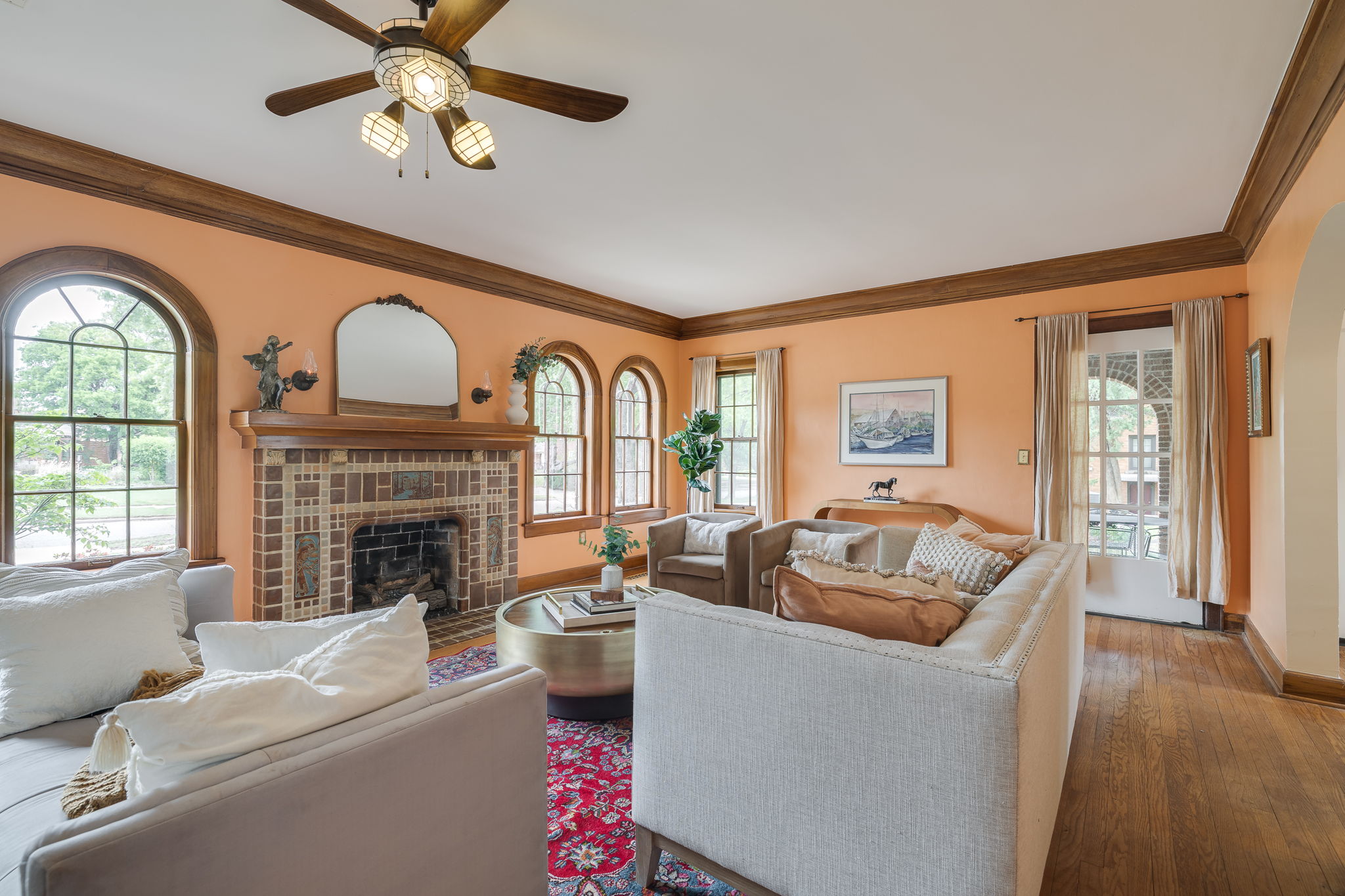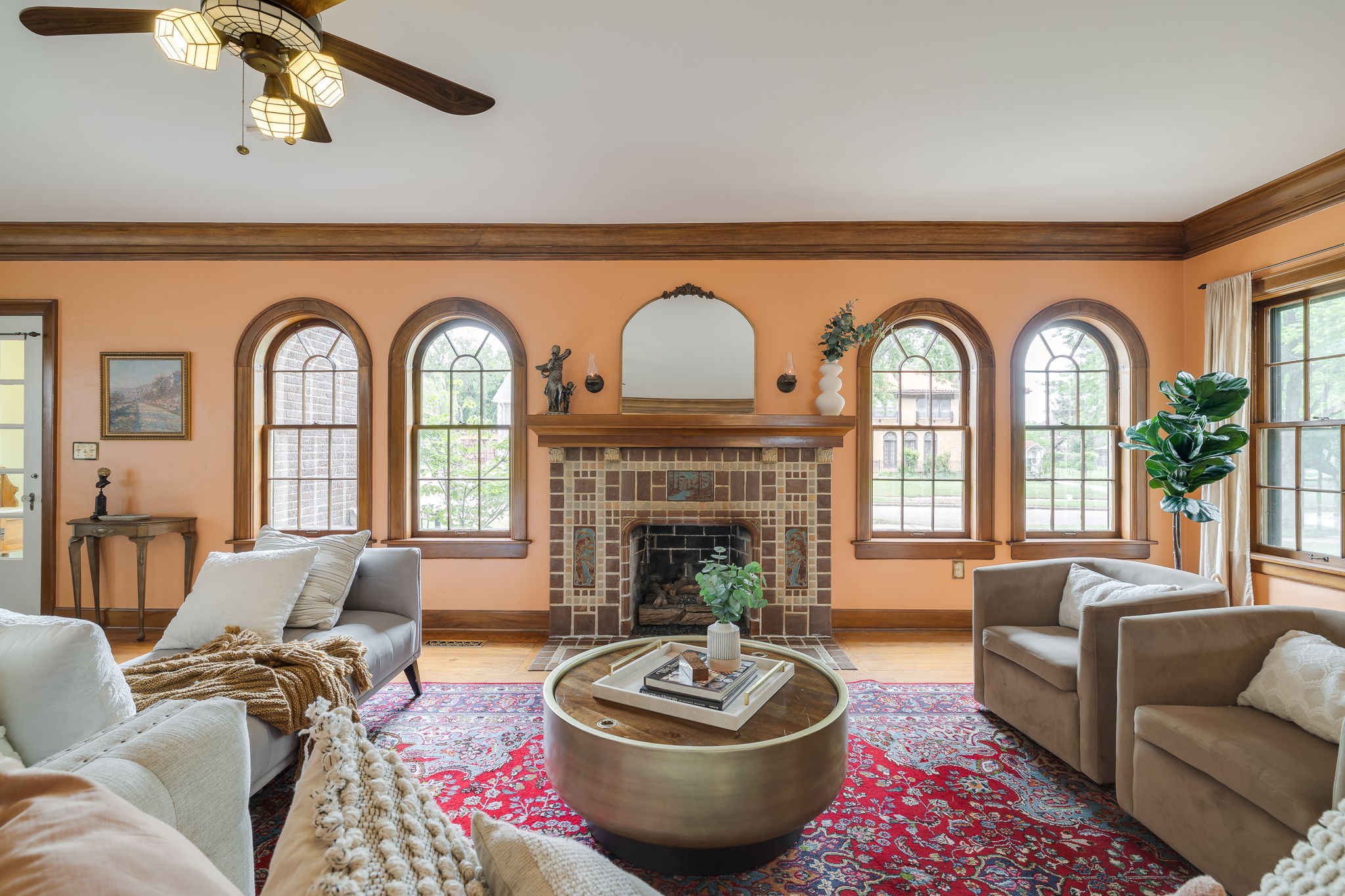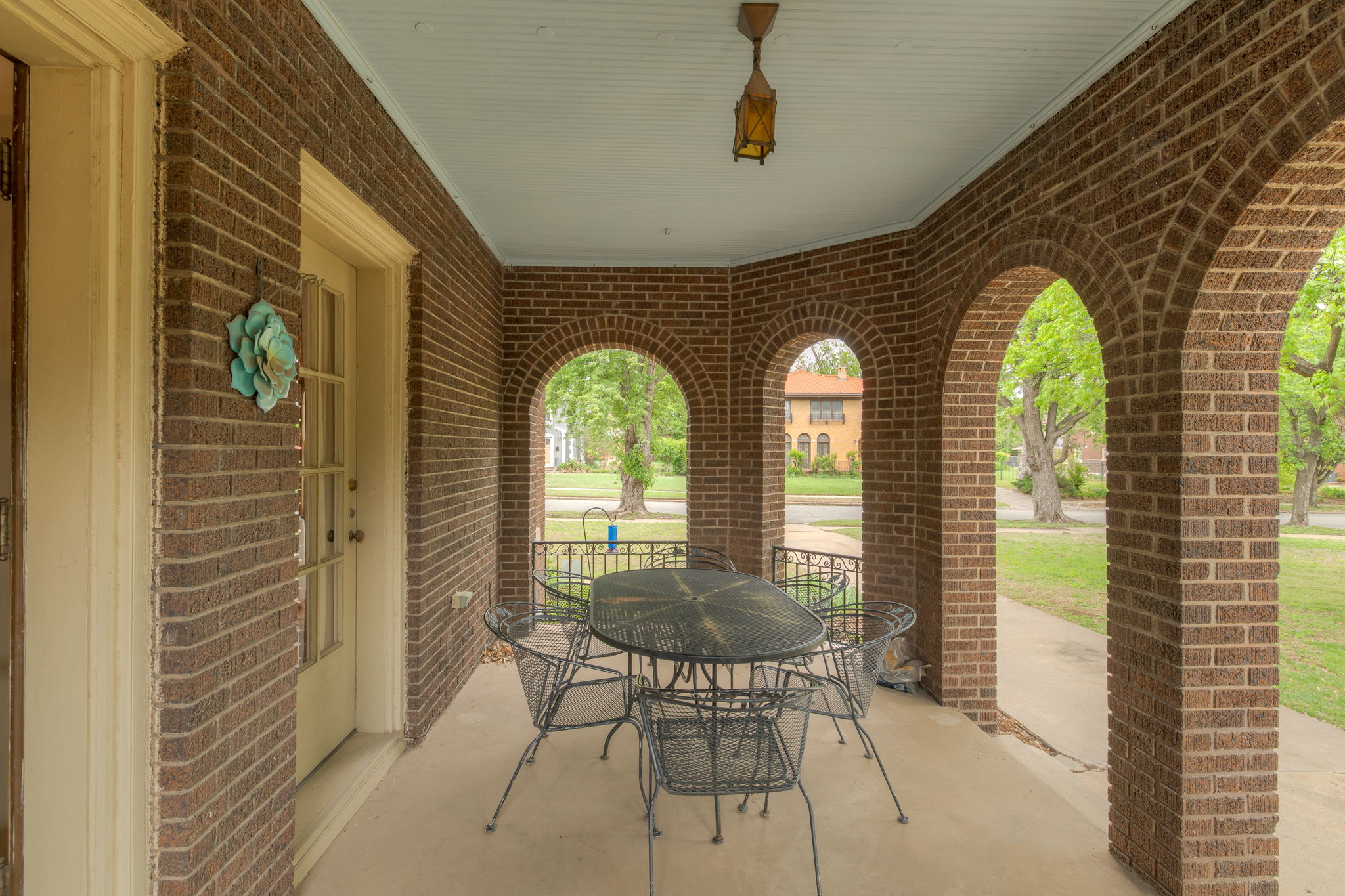 Lincoln Terrace jewel with incredible curb appeal and a true double lot! The home's striking grandeur is accentuated by magnificently detailed stone work and elegant archways. The sizable covered porch offers park-like views of the tree shaded yard located on one of the neighborhoods most idyllic streets! Sprawling, sunlit rooms evoke visions of the past, maintaining original stained woodwork, intricate entryway tile, art deco light fixtures, built in cabinetry, and a saddleback staircase. Upstairs you'll find three generously sized bedrooms, each with ample closet space and an abundance of natural light. The primary suite is a retreat in itself, combining three spacious rooms and a beautifully renovated bathroom. The impressive backyard is fully fenced and offers endless possibilities for outdoor living! A small, nicely finished garage quarters supplies an added bonus space ideal for a home office or guest room. Don't miss this incredible opportunity in one of Oklahoma City's most desirable historic neighborhoods!