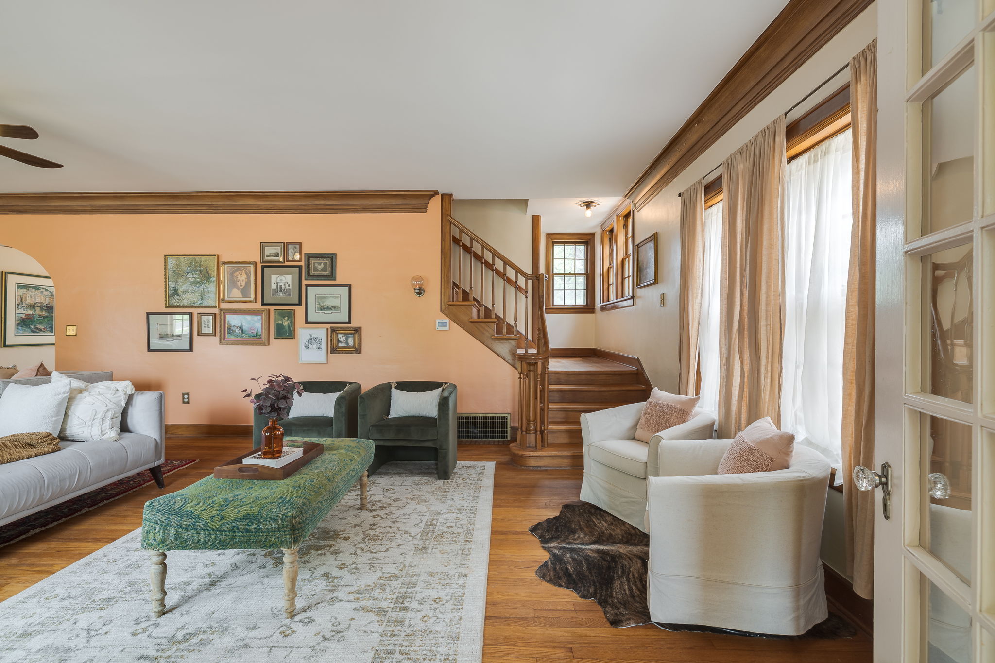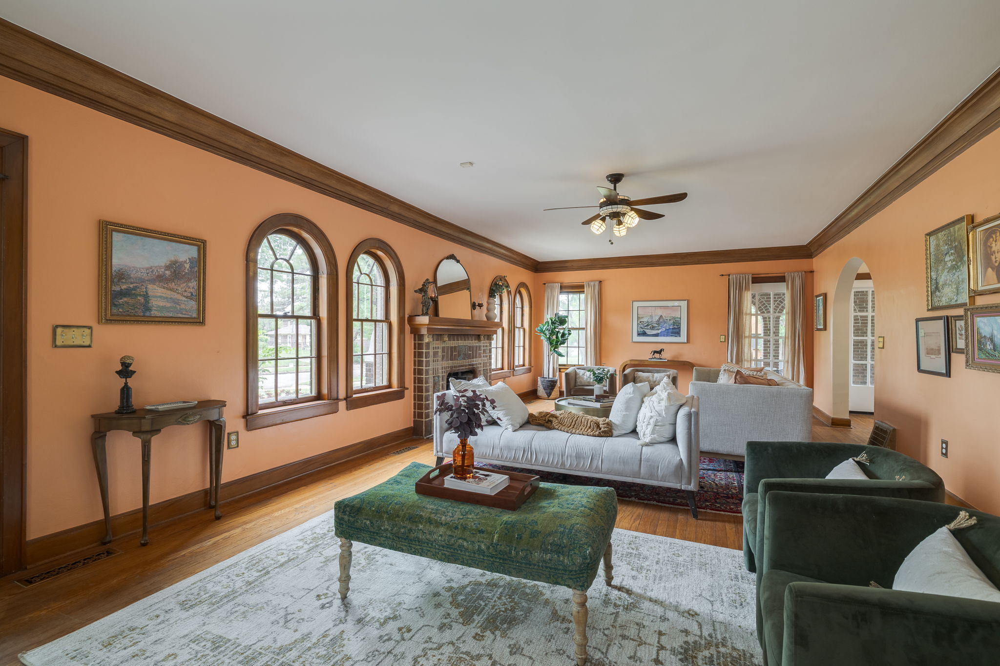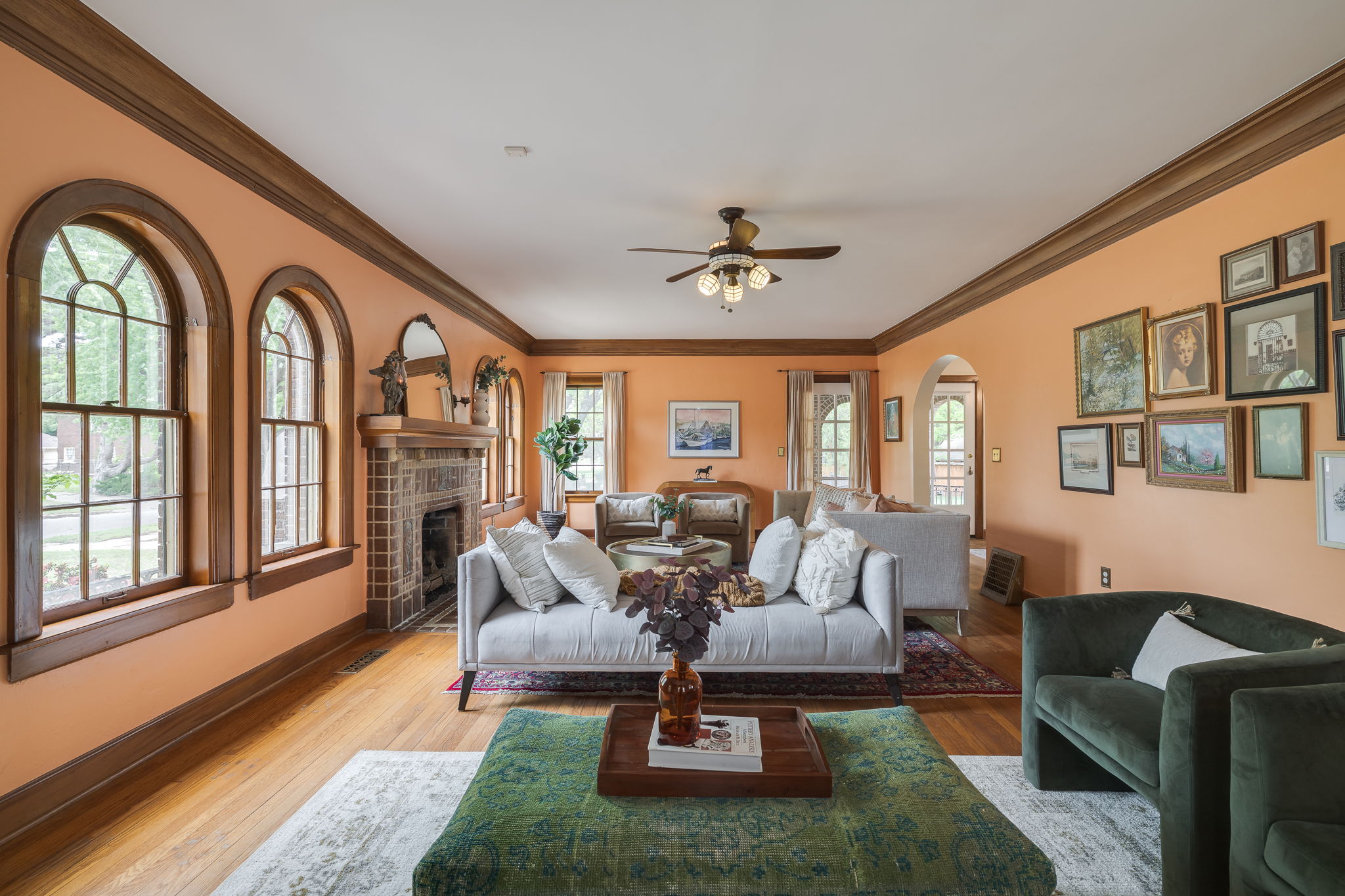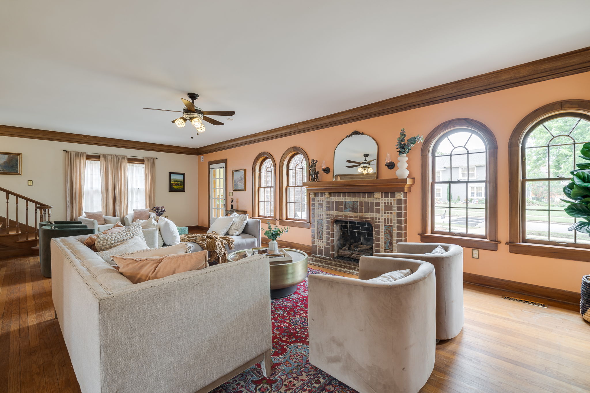 Lincoln Terrace jewel with incredible curb appeal and a true double lot! The home's striking grandeur is accentuated by magnificently detailed stone work and elegant archways. The sizable covered porch offers park-like views of the tree shaded yard located on one of the neighborhoods most idyllic streets! Sprawling, sunlit rooms evoke visions of the past, maintaining original stained woodwork, intricate entryway tile, art deco light fixtures, built in cabinetry, and a saddleback staircase. Upstairs you'll find three generously sized bedrooms, each with ample closet space and an abundance of natural light. The primary suite is a retreat in itself, combining three spacious rooms and a beautifully renovated bathroom. The impressive backyard is fully fenced and offers endless possibilities for outdoor living! A small, nicely finished garage quarters supplies an added bonus space ideal for a home office or guest room. Don't miss this incredible opportunity in one of Oklahoma City's most desirable historic neighborhoods!
