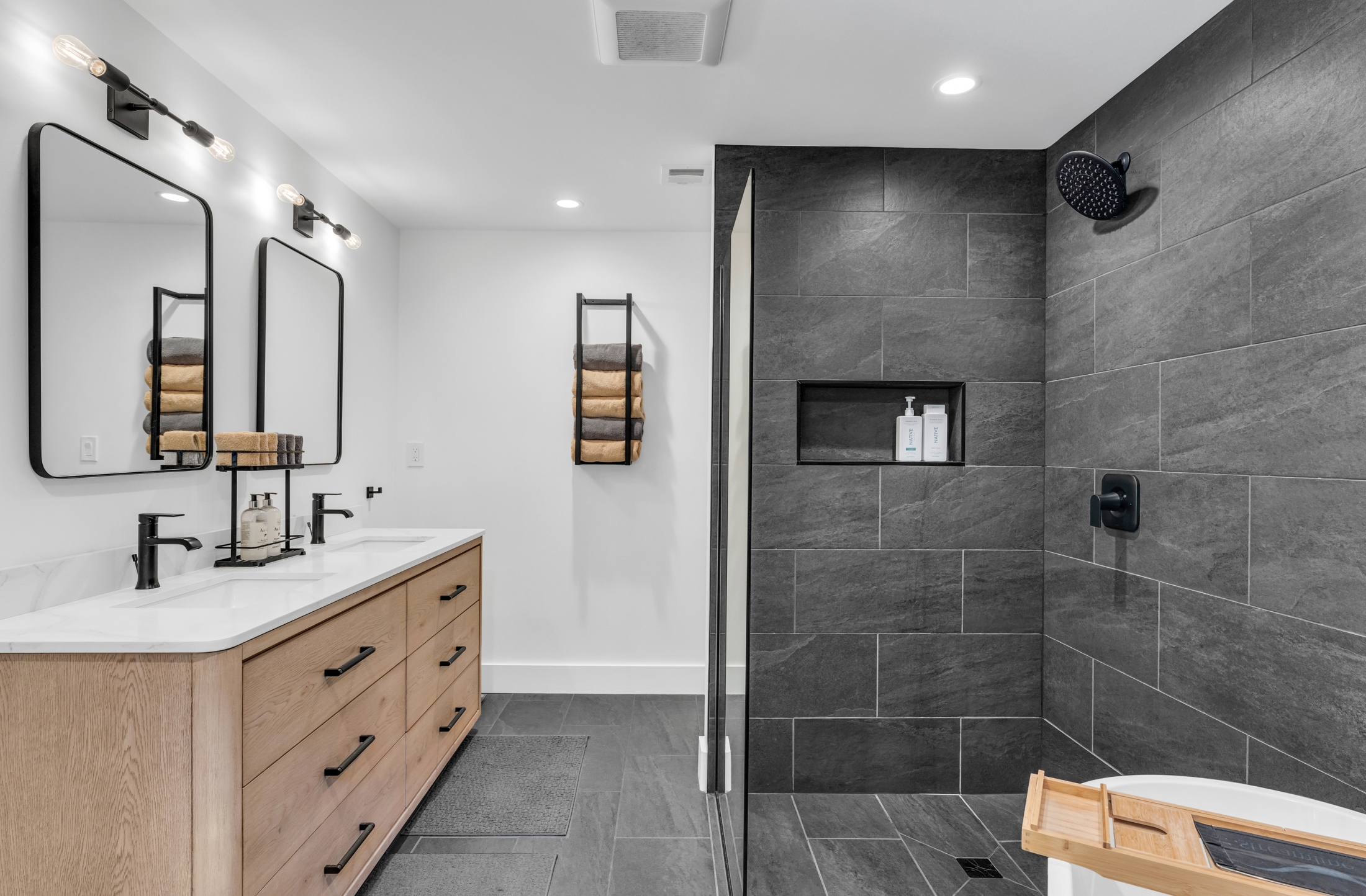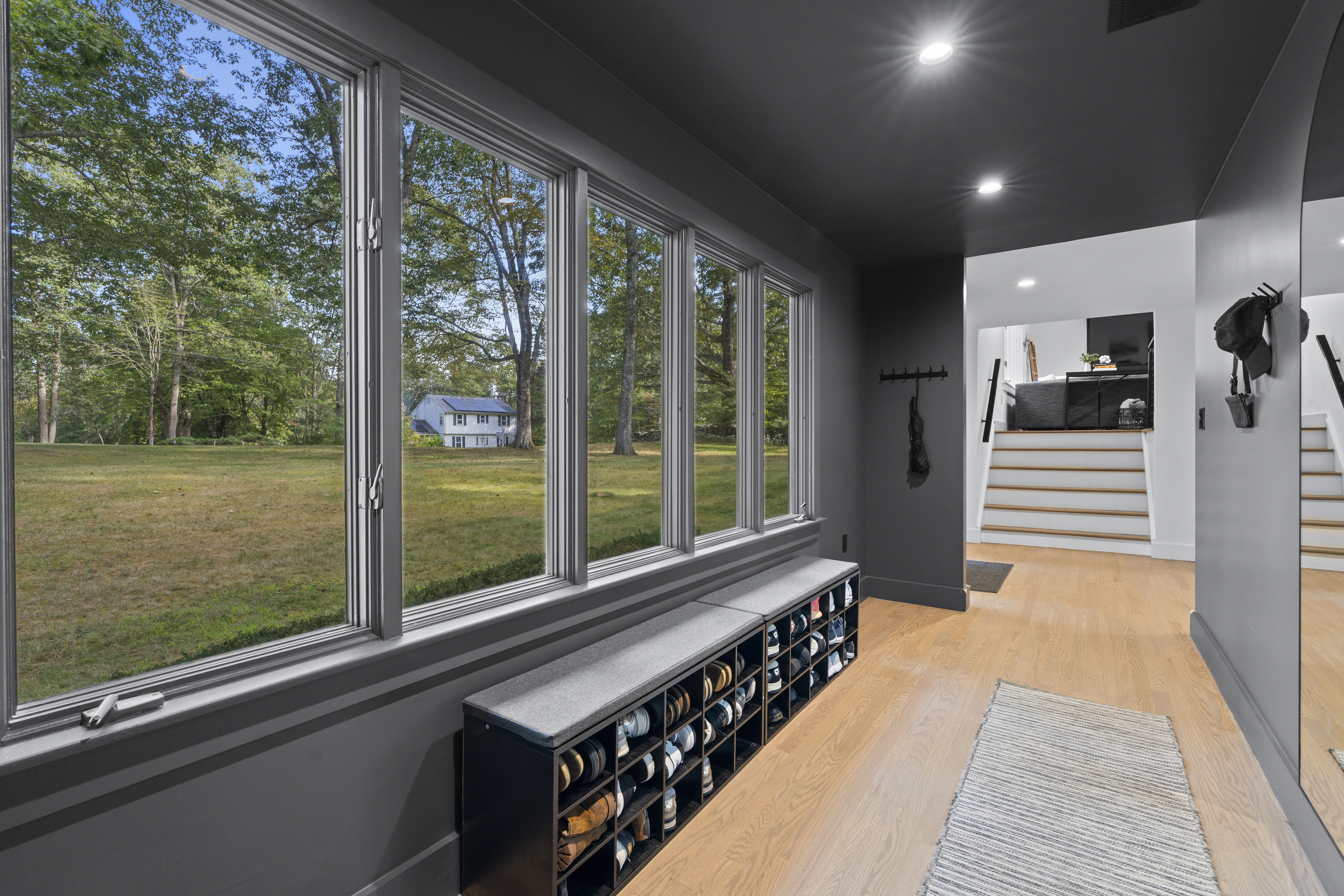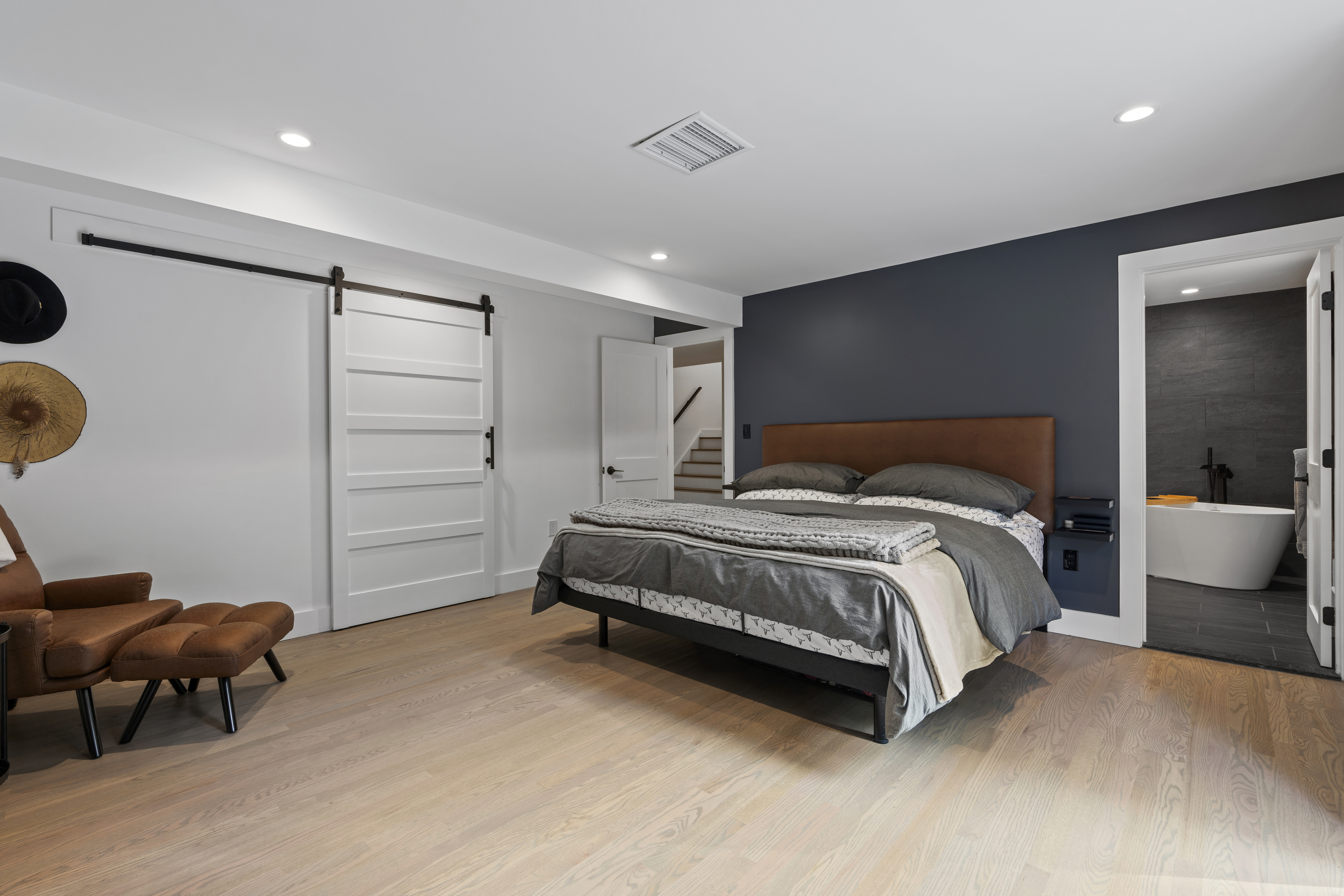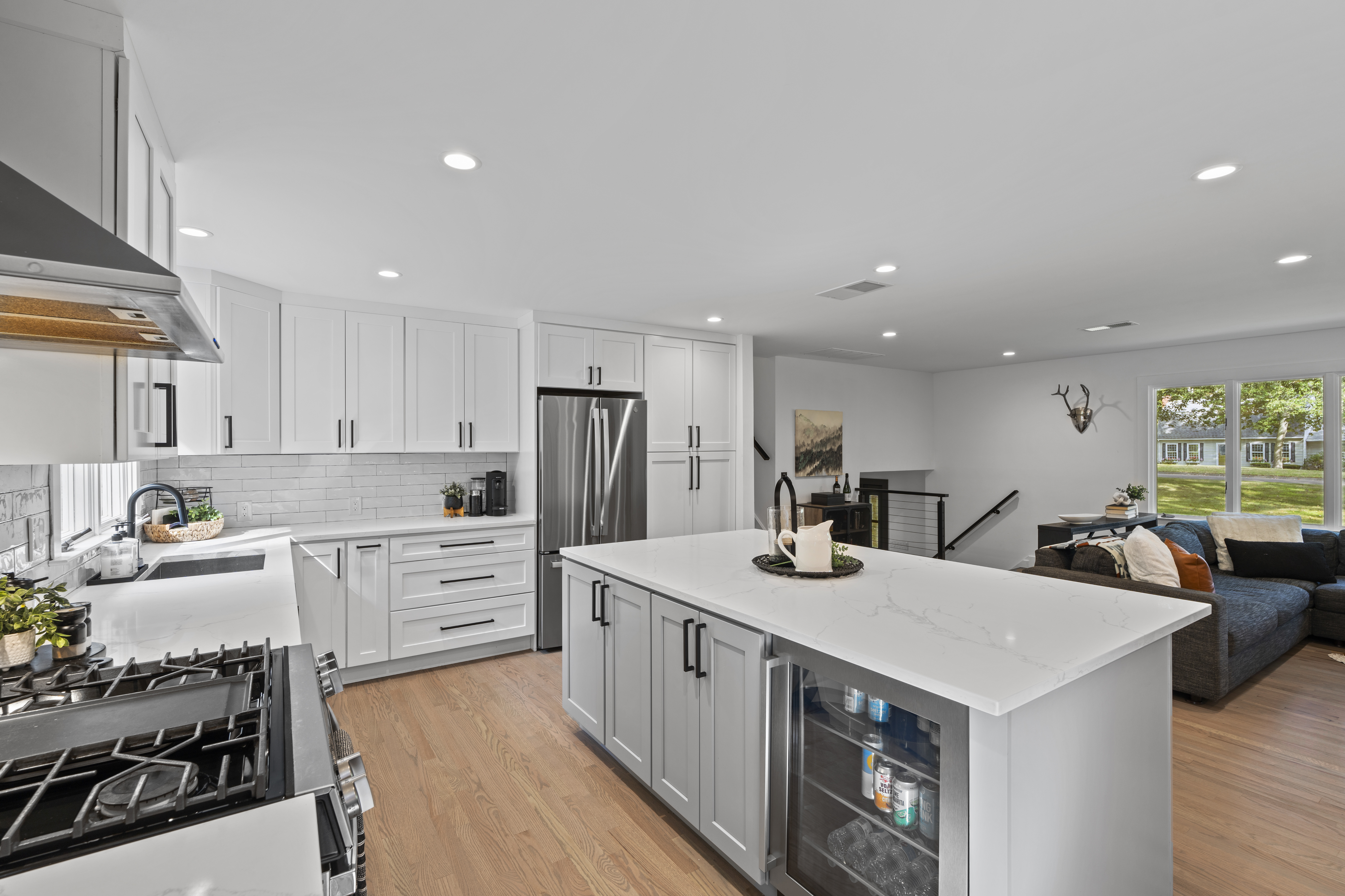 Meticulously reimagined from top to bottom, this stunning contemporary home delivers 2,025 sq ft of turnkey luxury on over an acre of level land. Tucked on a peaceful street, the residence boasts 3 bedrooms and 3 full baths, highlighted by a main-level primary suite with its own fireplace, patio access, and spa-inspired bath. There is a versatile 2nd-floor suite with full bath: perfect for an office, den, or guest room. Light-filled and inviting, the open layout showcases gleaming hardwood floors, designer recessed lighting, and crisp new trim, railings, doors, and hardware throughout. The chef-inspired kitchen is a true centerpiece-outfitted with custom cabinetry, striking quartzite countertops, an expansive island, and premium GE appliances including a beverage fridge. It flows effortlessly into the dining and living spaces. All three baths have been transformed with modern tile, sleek vanities, and Moen fixtures. Thoughtful details include two cozy fireplaces, new windows in every bathroom, smooth ceilings, and fresh neutral paint. Behind the walls, everything is new: 200-amp electrical, complete plumbing overhaul, tankless water heater, high-efficiency heat pump, and central air. Step outside to a low-maintenance Trex deck, fire pit area, and landscaped grounds-ideal for entertaining or quiet evenings. Situated in a sought-after neighborhood, this exceptional home offers the perfect blend of modern elegance and effortless, worry-free living.H&B due 4/25 @6PM