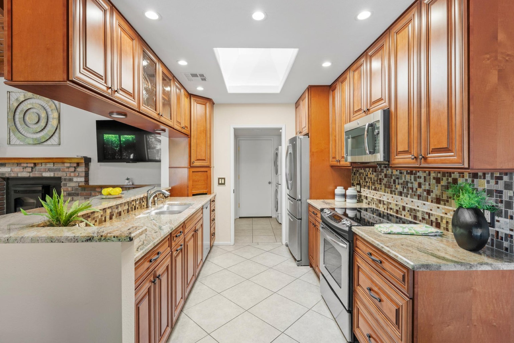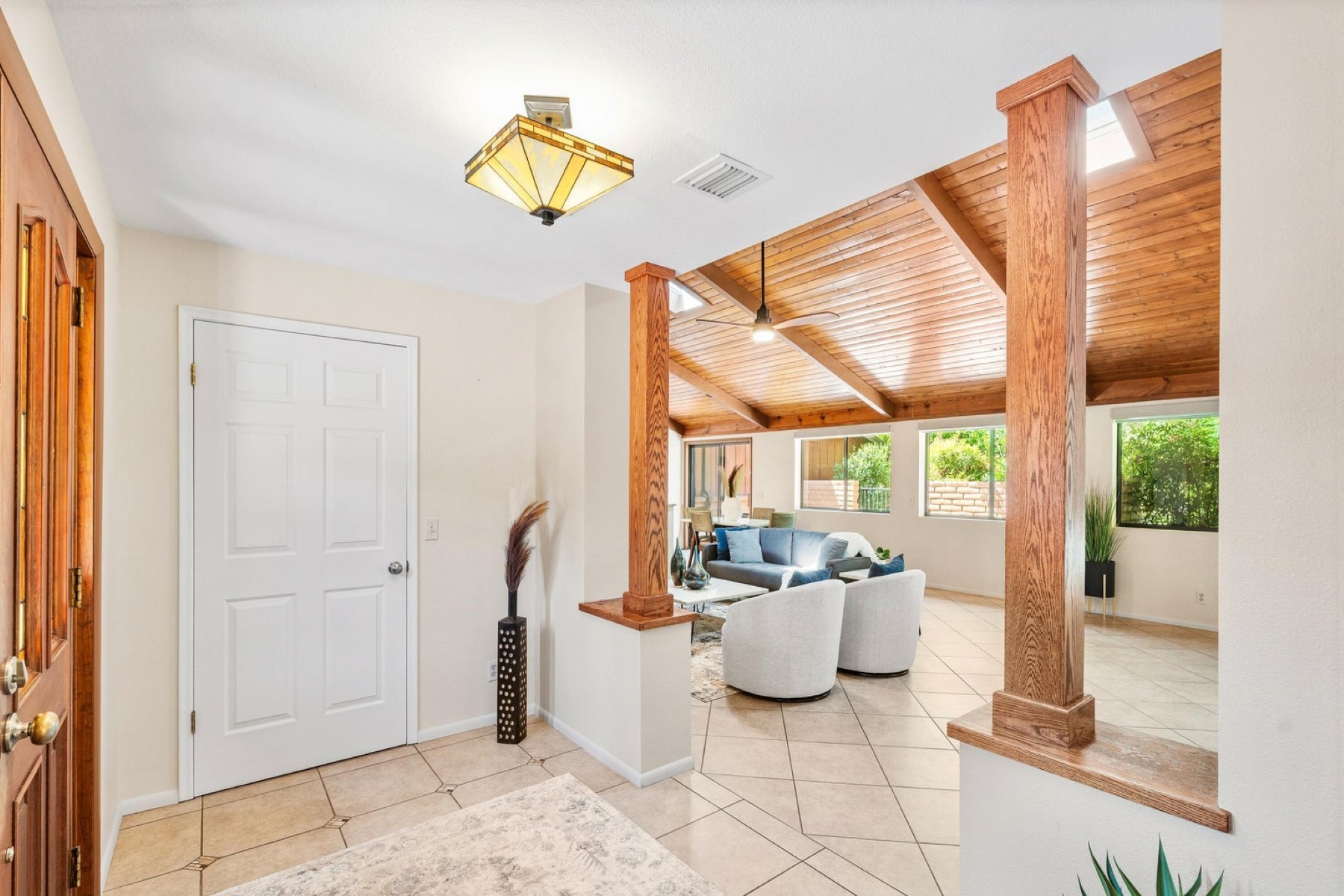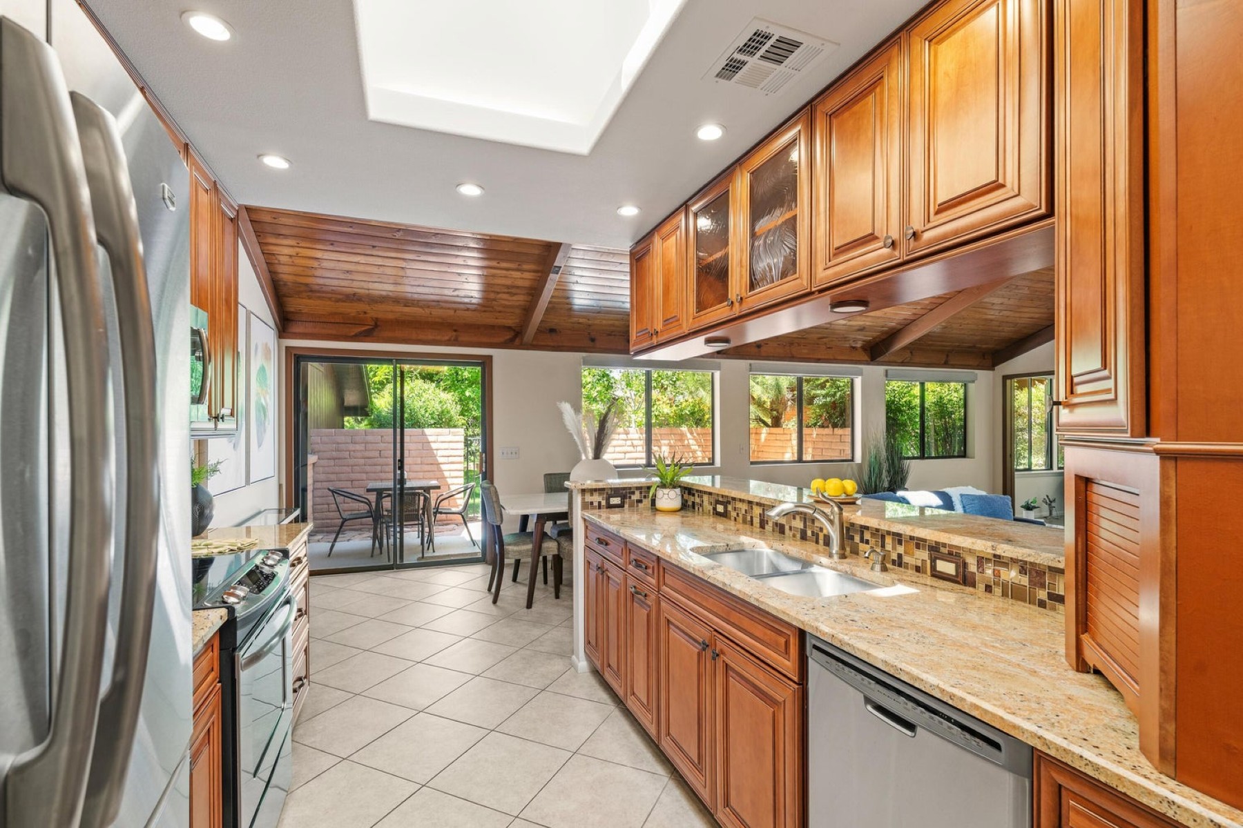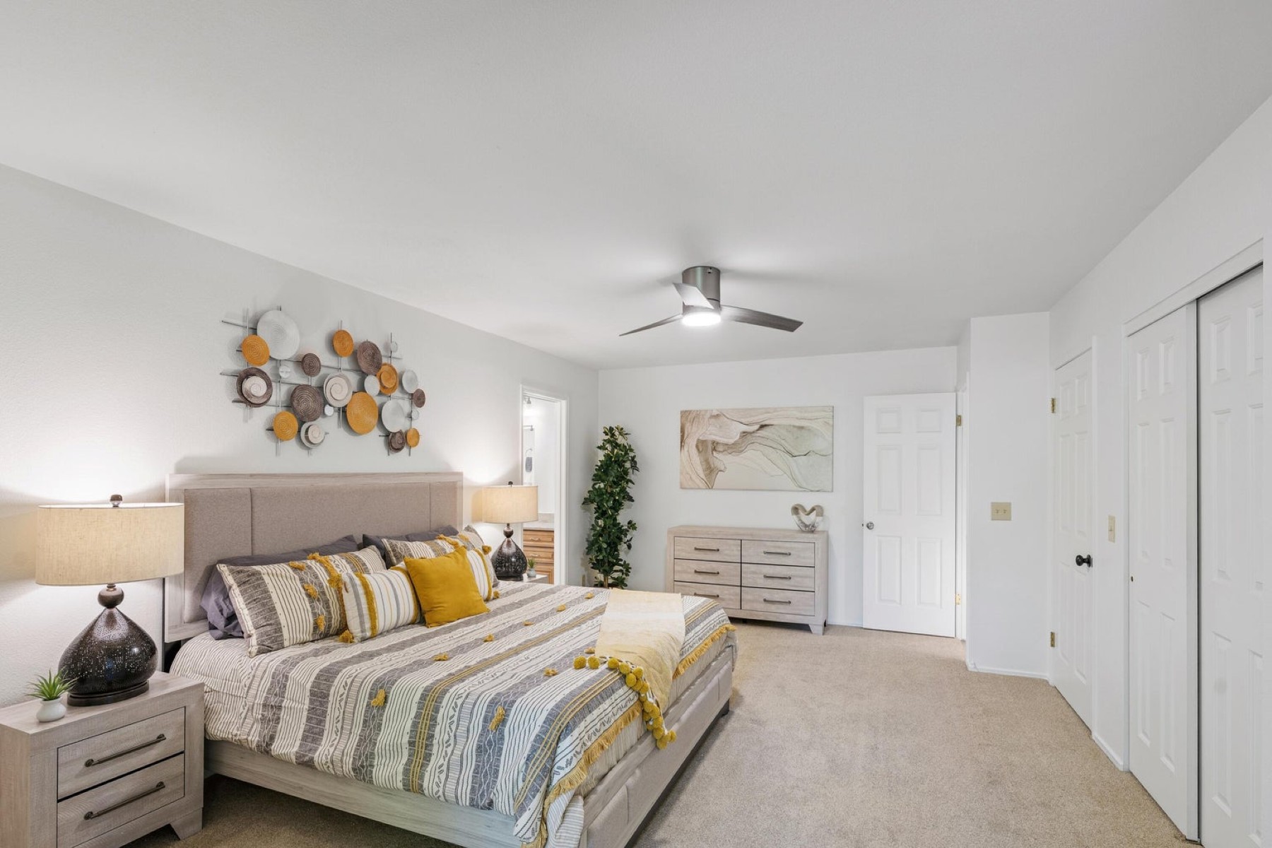 Set within the lush, tree-filled grounds of Sundance Townhomes, this single-level residence feels more like a private nature park than a townhome community--surrounded by greenery and bordering the manicured fairways of Oak Creek Country Club. It's a setting that offers a welcome reprieve in the warmer months, where shade + serenity take center stage. Spanning 1,761 SF, the 2 BD, 2 BA layout is open, comfortable and filled with character. A great room is anchored by soaring tongue-and-groove ceilings and a pellet stove, blending warmth with a subtle retro-modern edge. The primary suite offers generous proportions, including a walk-in closet, a sitting area, and peaceful greenbelt views. A charming back patio with peek-a-boo Castle Rock views extends the living experience outdoors. See it