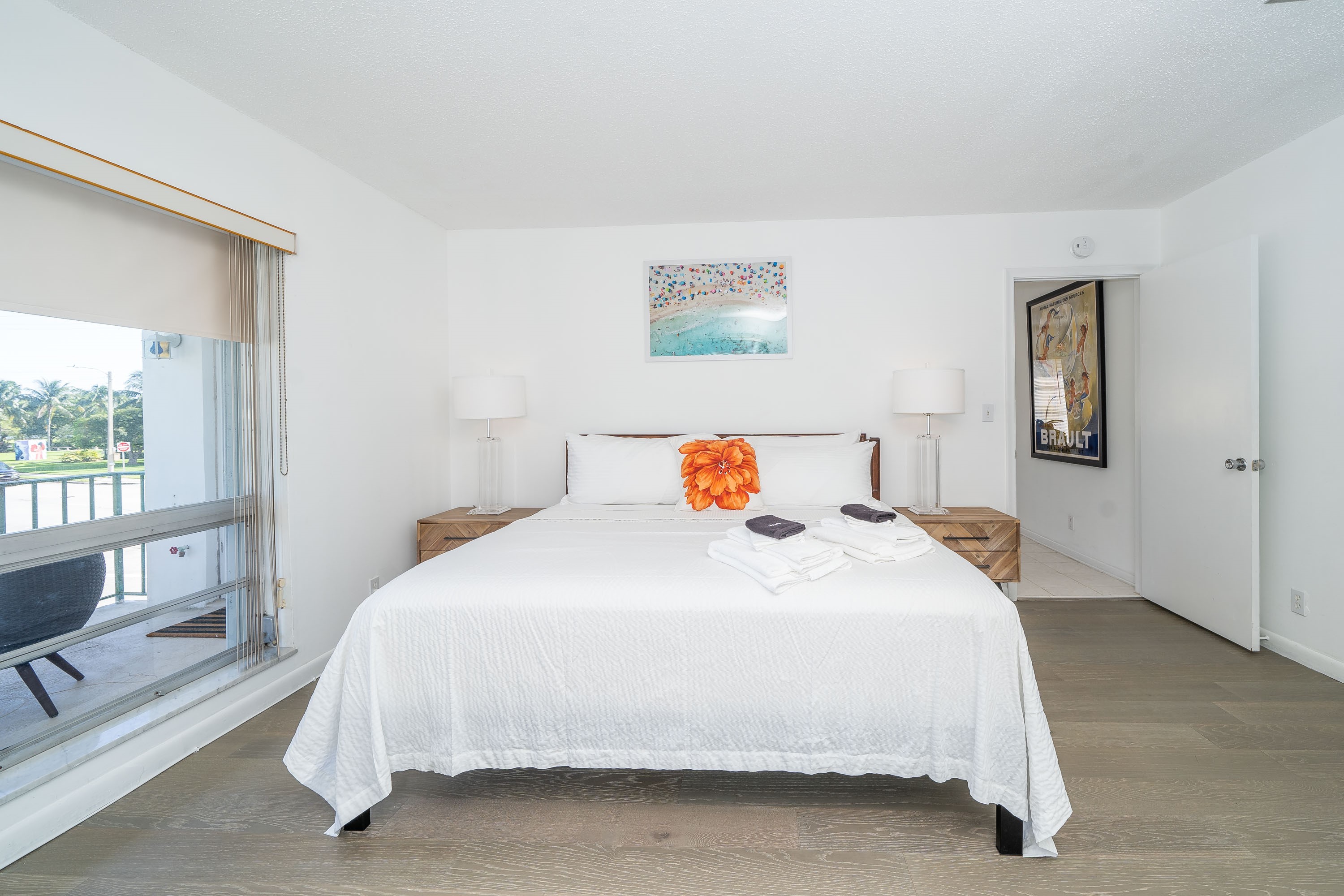 This unit sits directly across from the Lake Worth Municipal Golf Course, offering unobstructed views of the greens. Ideally located in the heart of Lake Worth Beach, it's just a short walk to nearby restaurants, shops, and the beach. The property is one block north of Lake Avenue, and it's the first building on your right after crossing the bridge from the beach. Recently renovated, the unit features brand-new impact windows and provides a peaceful, quiet setting--perfect for a relaxing South Florida stay. This 2-bedroom, 2-bath apartment includes two king-sized beds and is located within a charming four-unit building in downtown. Available for monthly rental.