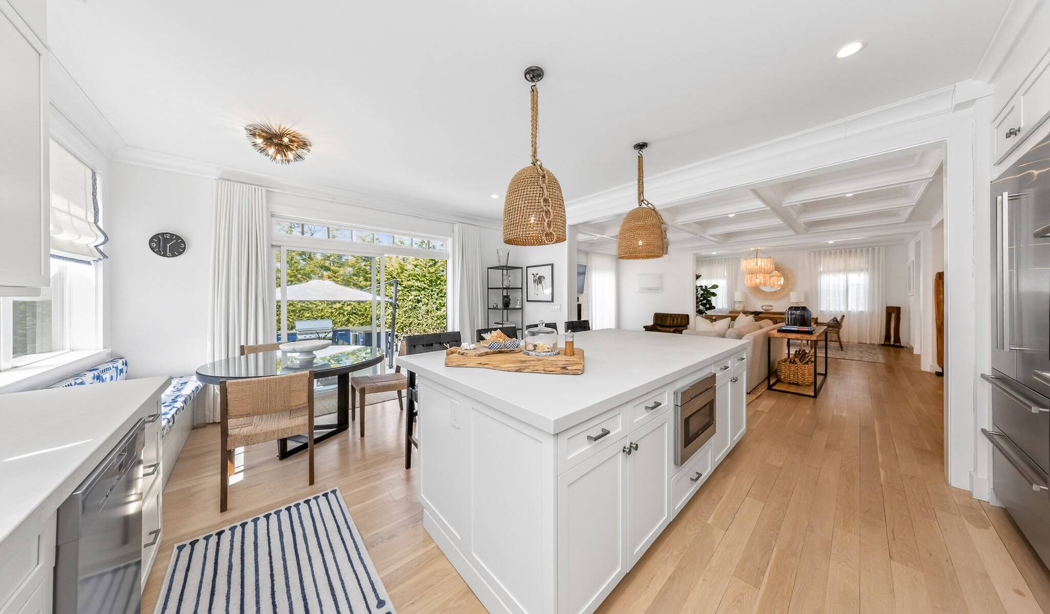 This Southampton beach house blends playful coastal personality with relaxed Hamptons living. Located in Bay View Oaks, a waterfront community with private beach access, deeded rights to Peconic Bay, and a boat launch, the home sits in a quiet setting within Bay View Oaks, just 10 minutes from both Sag Harbor and Southampton Villages. Inside, the home features high ceilings, light-filled rooms, and professionally designed interiors with a cool design sensibility that incorporates open-plan living, retro pop-culture touches, and colorful accents. The layout includes four bedrooms plus a bonus bunk room, 3.5 bathrooms including a primary ensuite, and multiple indoor-outdoor gathering zones that flow naturally for lounging, dining, and entertaining. A gourmet kitchen inside and out, multiple dining areas, and a layout arranged for smooth day-to-day living make the home easy to enjoy. The outdoor spaces offer a range of playful amenities. After the beach, rinse off sandy toes in the outdoor shower, step into the heated pool, basketball hoop, trampoline, fire pit, and several lounge areas suited for relaxing or gathering. A two-car garage and the overall setting bring everything together for a relaxed Hamptons stay. Offered for the early summer, August, extended season, and winter rental periods. [[Rental Registration # RP241487]] EH RR #: RP241487