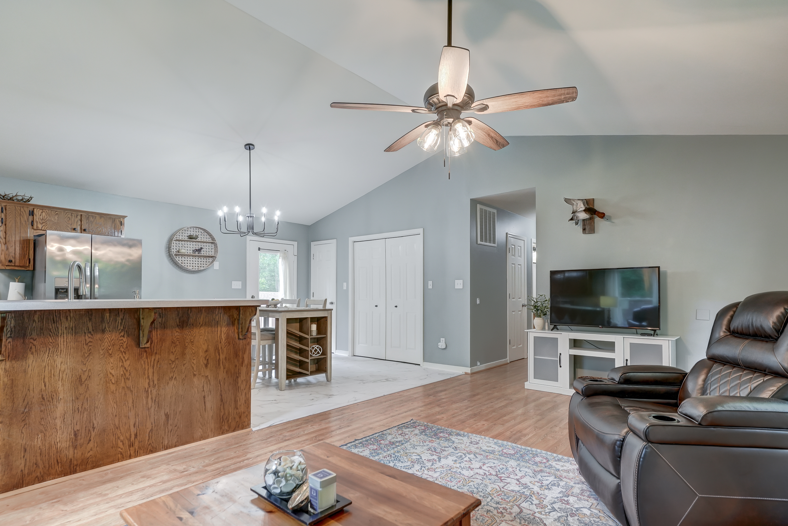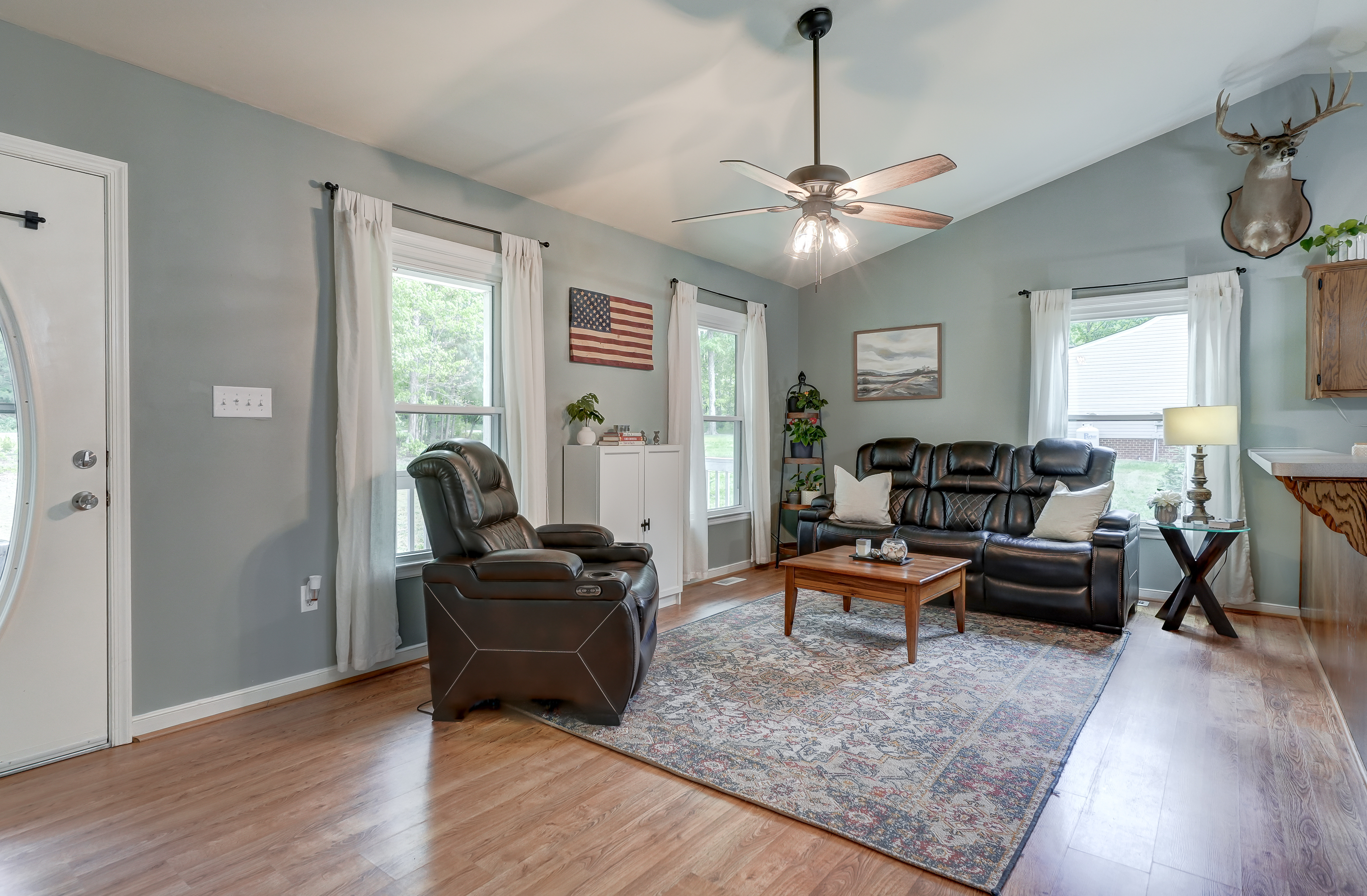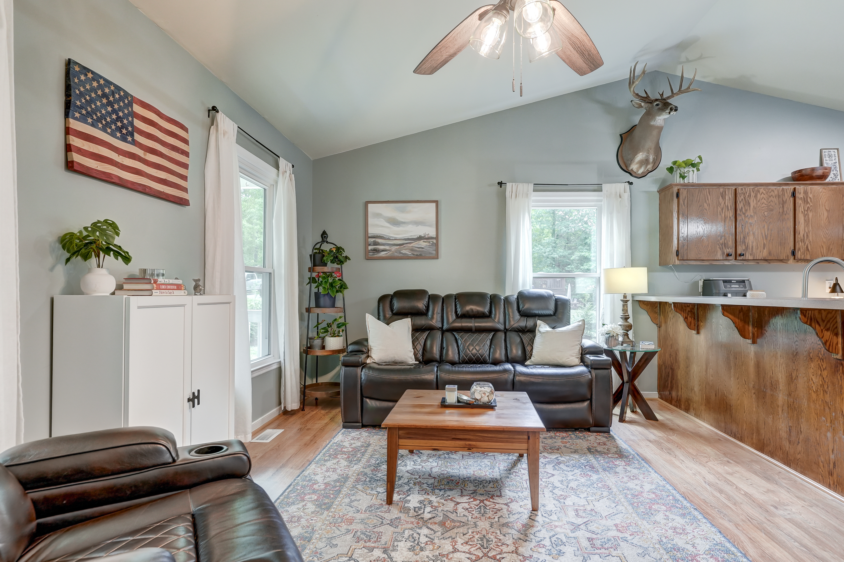 Tucked away on 1.33 private acres, this beautifully maintained property offers a rare blend of tranquility surrounded by woods both front and back for a truly peaceful setting. Step inside to an inviting open-concept of living, kitchen, and dining area, where a vaulted ceiling enhances the sense of space and light, creating an airy, comfortable environment for both everyday living and entertaining. The kitchen is thoughtfully designed with ample cabinet and counter space, ideal for multiple cooks or chefs who need room to create culinary master pieces and features a convenient breakfast bar for casual dining. The home offers three bedrooms and two full baths, including an updated hall bath and a primary suite with an upgraded bath, providing a functional layout with comfortable, well-appointed spaces throughout. Additional interior updates include new kitchen flooring, fresh paint, and more. Beyond the interior, the sellers have made significant investments to ensure peace of mind and long-term value, including new windows (2023), a new roof (2024), and a new pressure tank. Other exterior enhancements such as expanded parking, a retaining wall, and freshly stained decks further elevate the property. Perched on a generous lot with room to roam, the outdoor space offers both privacy and possibility—complete with a 9x11 shed with electricity for storage, hobbies, or workspace. This is a property that delivers more than just a home, it offers space, privacy, thoughtful updates, and a setting that’s increasingly hard to find. Xfinity is one of the available internet providers.