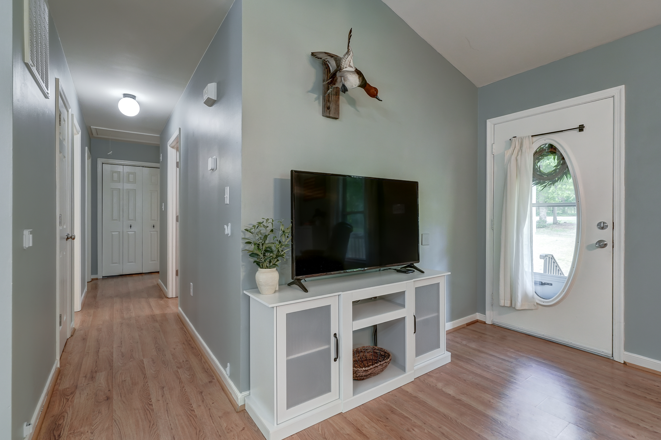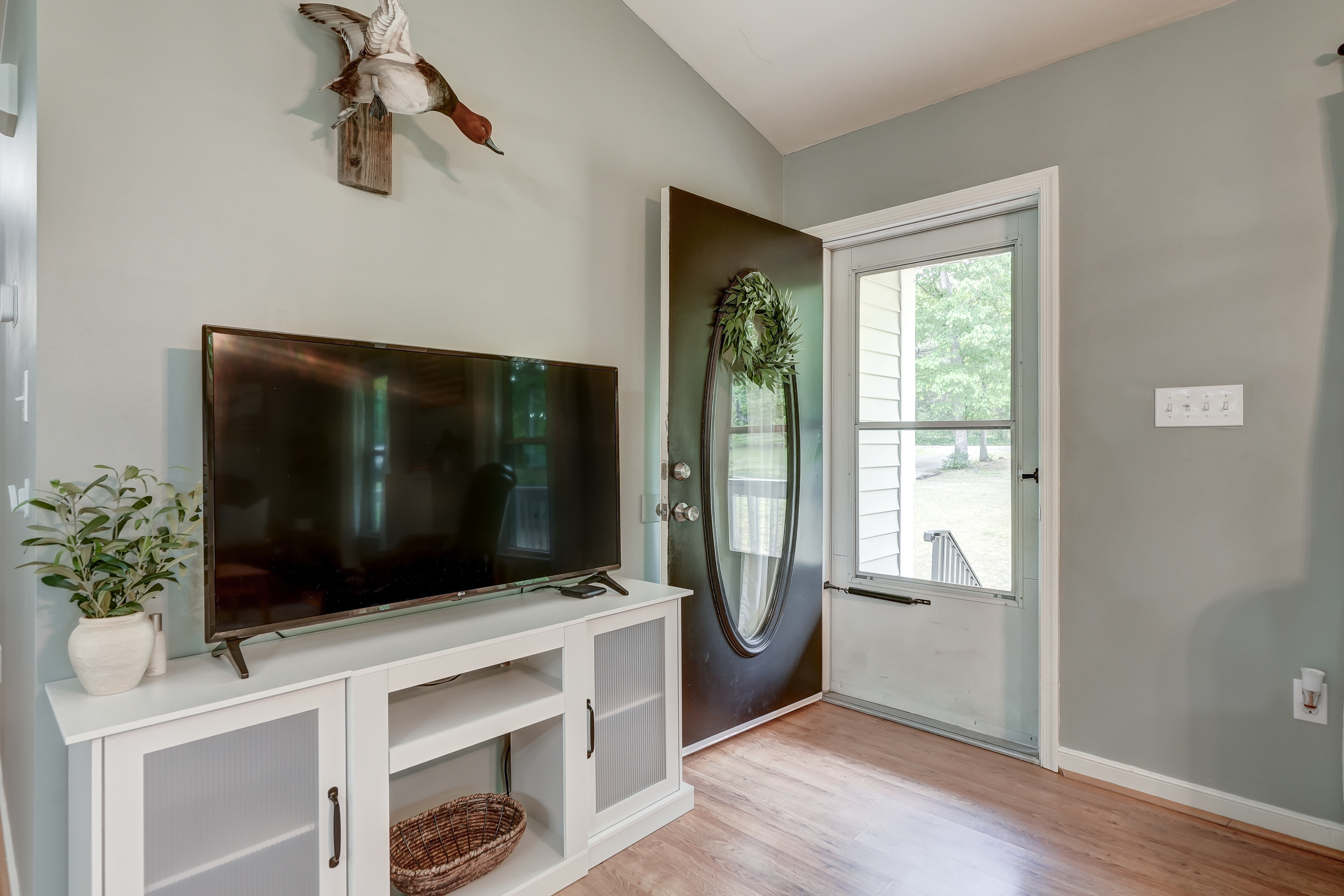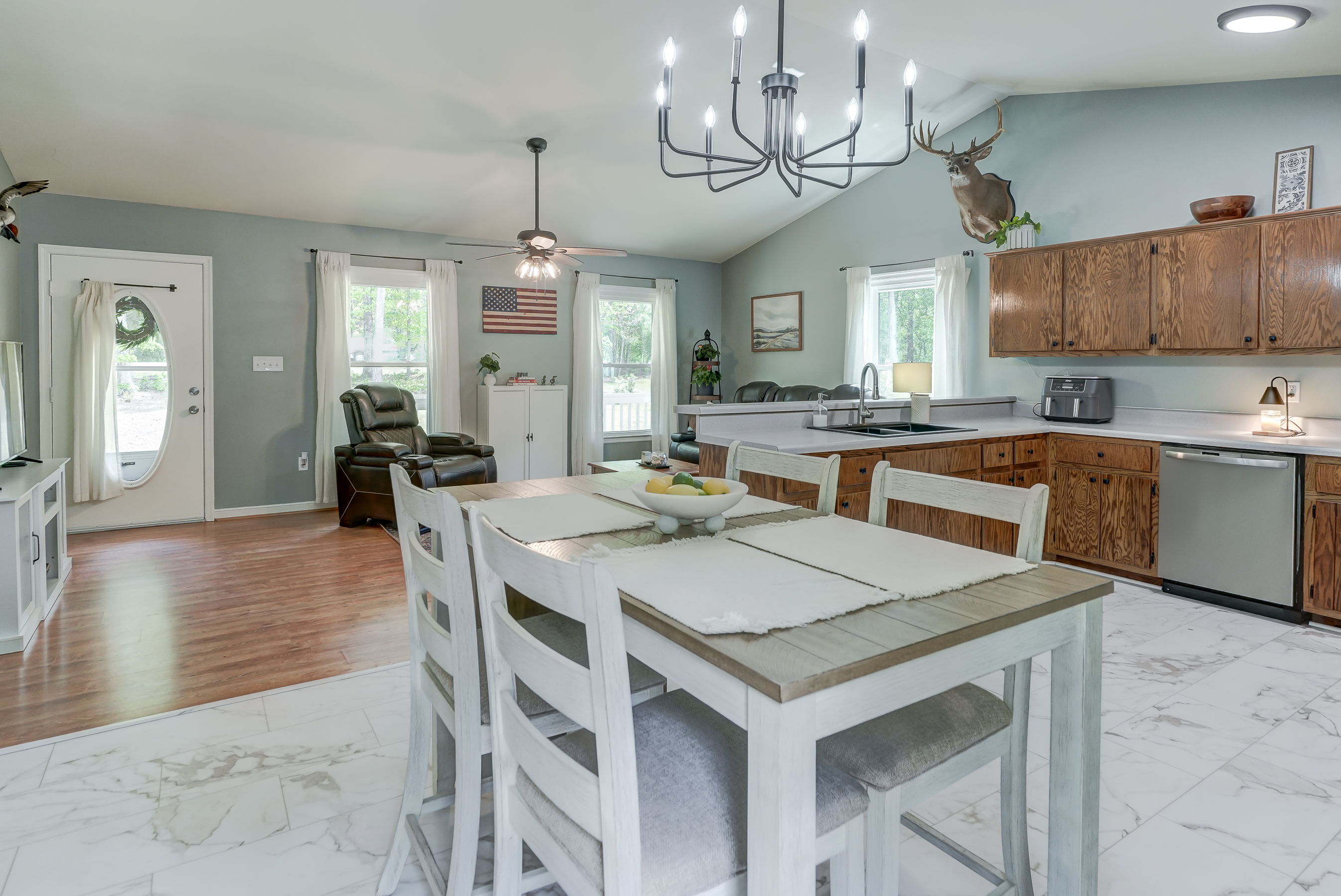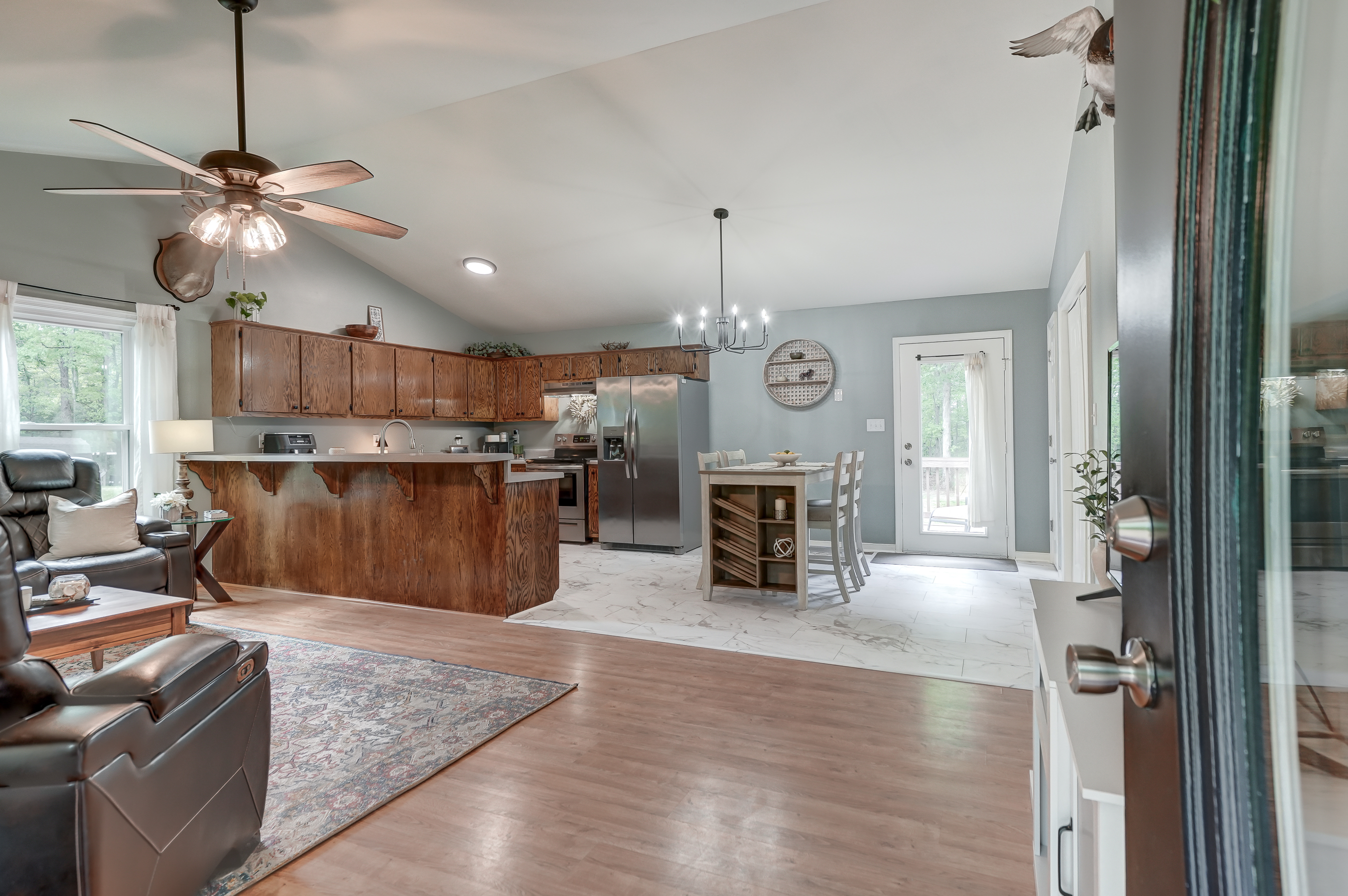 Tucked away on 1.33 private acres, this beautifully maintained property offers a rare blend of tranquility surrounded by woods both front and back for a truly peaceful setting. Step inside to an inviting open-concept of living, kitchen, and dining area, where a vaulted ceiling enhances the sense of space and light, creating an airy, comfortable environment for both everyday living and entertaining. The kitchen is thoughtfully designed with ample cabinet and counter space, ideal for multiple cooks or chefs who need room to create culinary master pieces and features a convenient breakfast bar for casual dining. The home offers three bedrooms and two full baths, including an updated hall bath and a primary suite with an upgraded bath, providing a functional layout with comfortable, well-appointed spaces throughout. Additional interior updates include new kitchen flooring, fresh paint, and more. Beyond the interior, the sellers have made significant investments to ensure peace of mind and long-term value, including new windows (2023), a new roof (2024), and a new pressure tank. Other exterior enhancements such as expanded parking, a retaining wall, and freshly stained decks further elevate the property. Perched on a generous lot with room to roam, the outdoor space offers both privacy and possibility—complete with a 9x11 shed with electricity for storage, hobbies, or workspace. This is a property that delivers more than just a home, it offers space, privacy, thoughtful updates, and a setting that’s increasingly hard to find. Xfinity is one of the available internet providers.