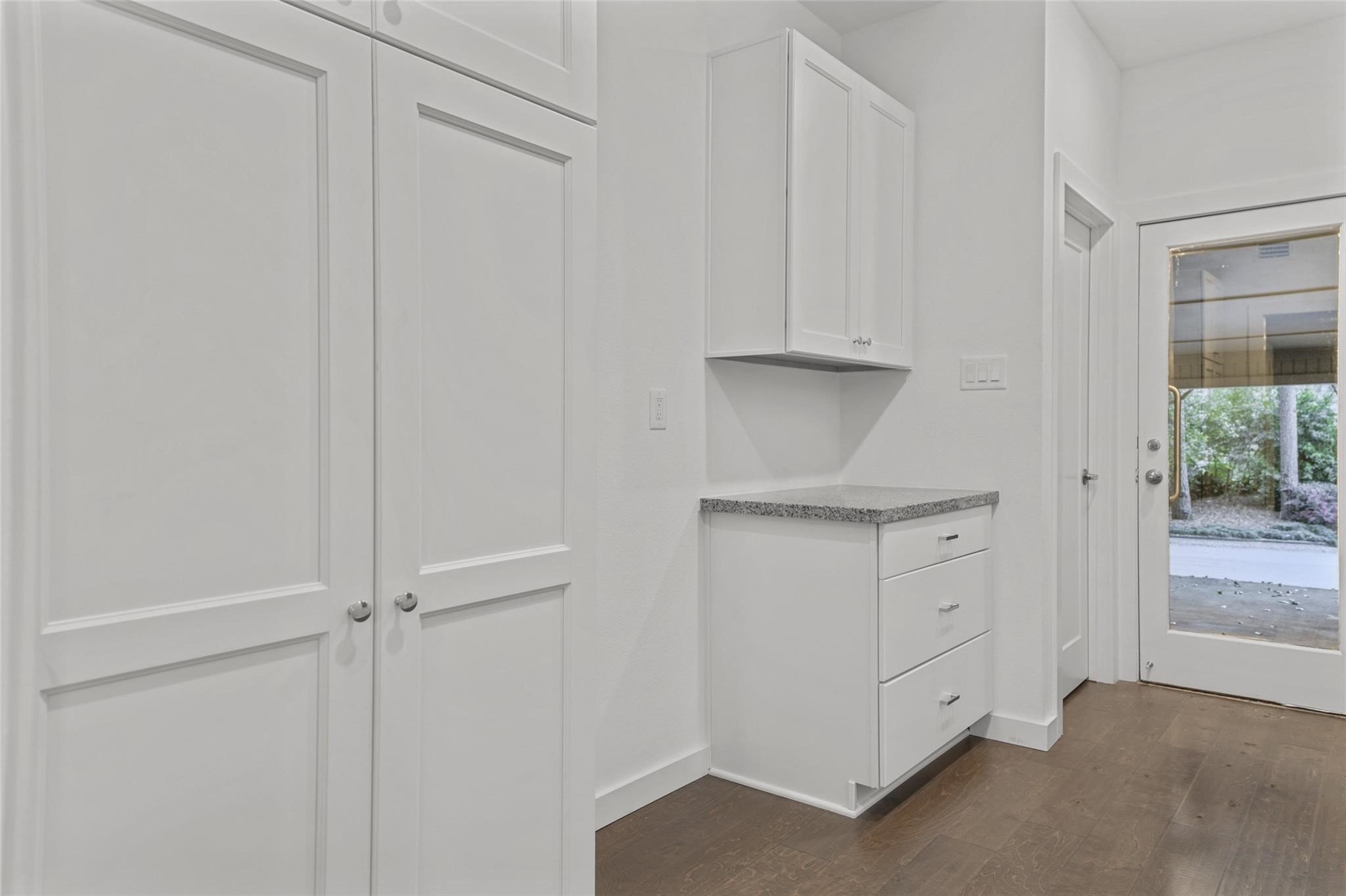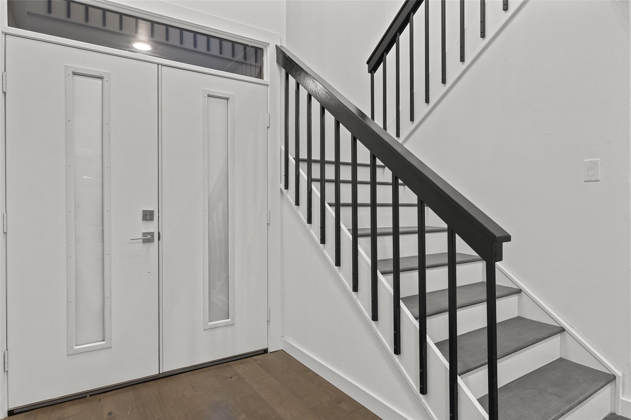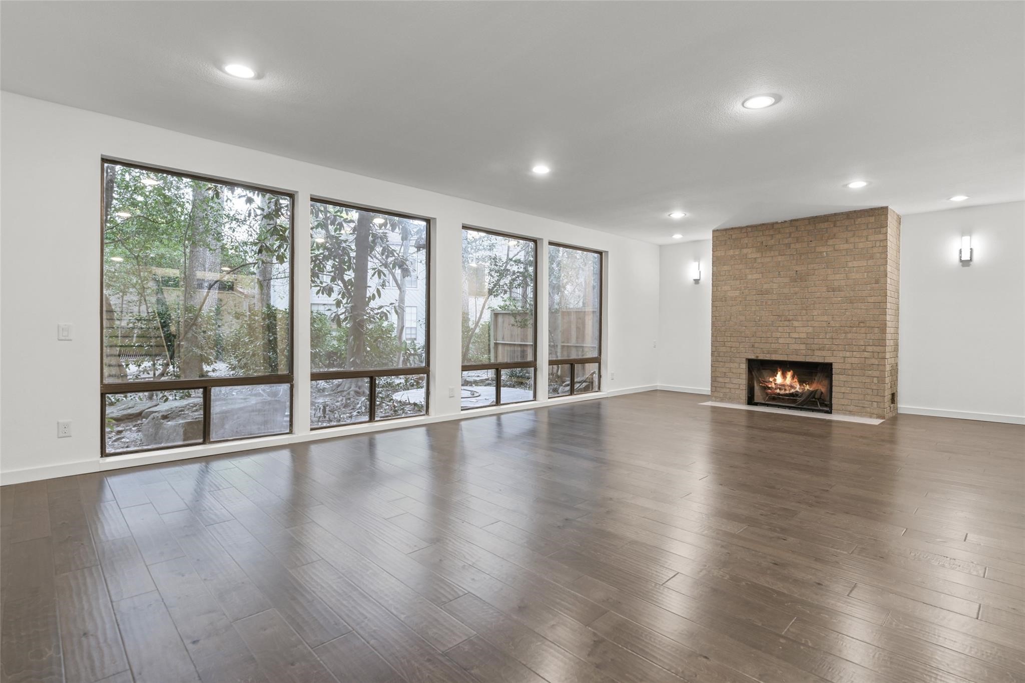Incredible Location! Modern 4 bedroom home in the prestigious guard gated community of Hudson Bayou/Hudson Forest in the heart of Memorial. Perfectly nestled in a serene, treehouse-like environment you'll find this Single Family detached home with a great open layout featuring floor to ceiling windows and beautiful engineered hardwood floors, 2 cozy fireplaces and one bedroom with private bath on the main level. you also have 3 additional bedrooms upstairs including a massive primary with a spa like ensuite bath, custom closet, vaulted ceiling and cozy fireplace. You have a bright and open kitchen with stainless appliances, built in oven and microwave, a gas cook top, large island overlooking the breakfast area with a pantry and mudroom just off the kitchen. Plenty of storage throughout.