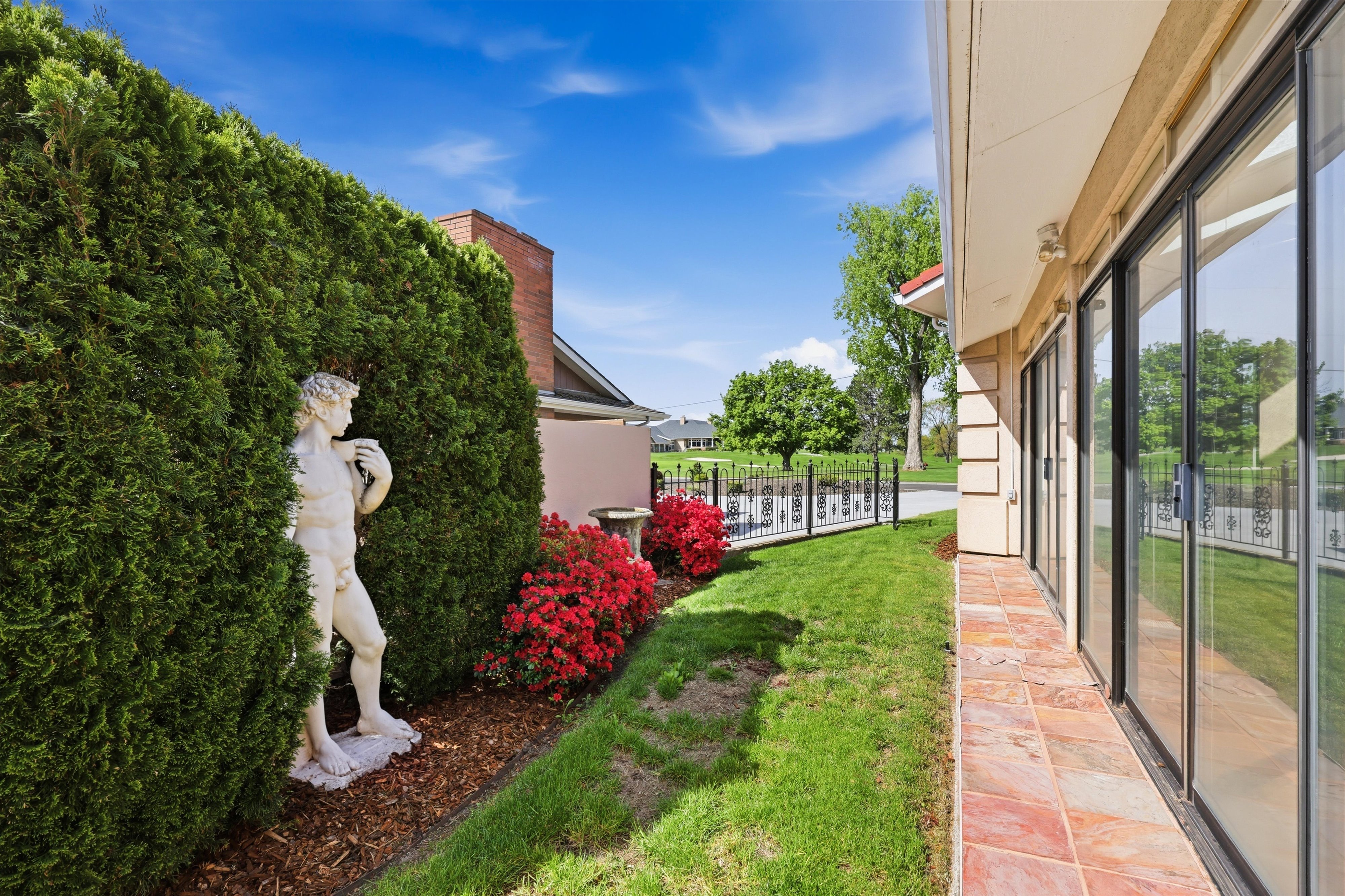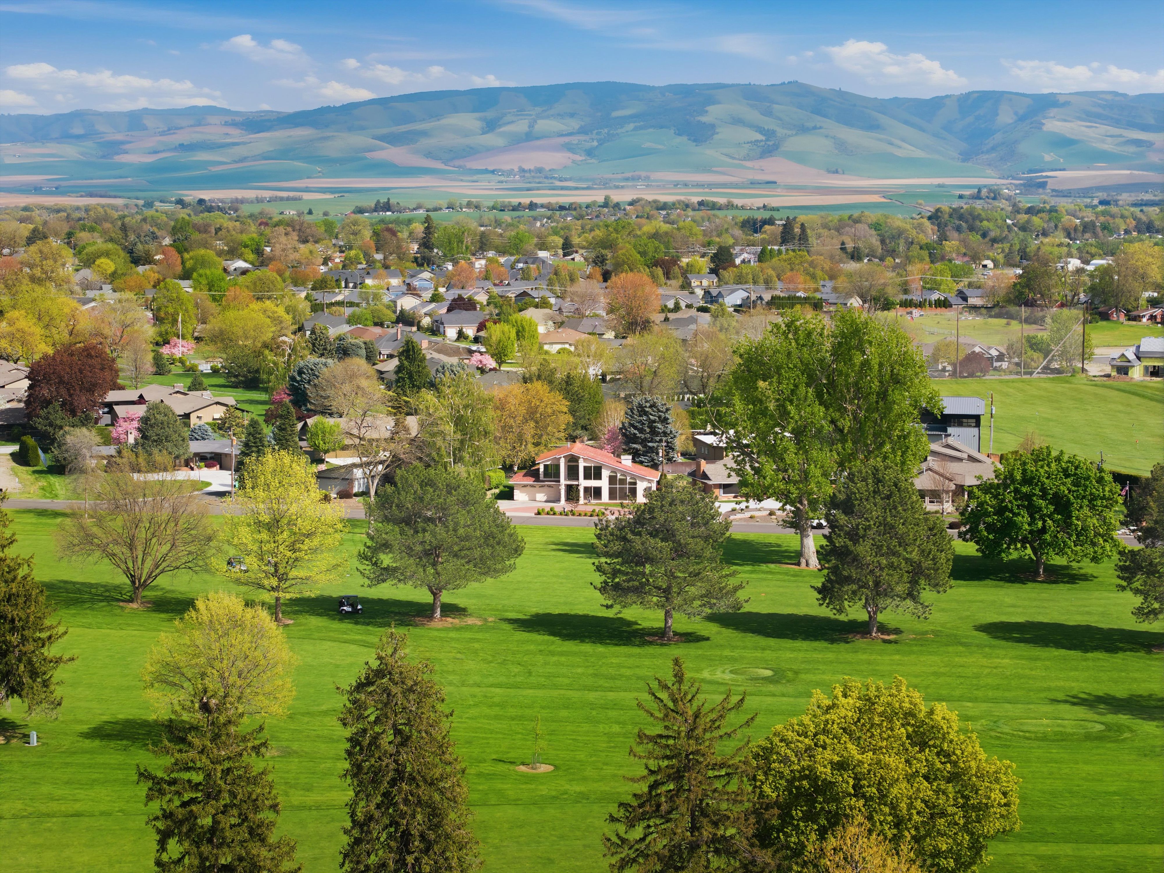 Roman Style Villa overlooking Walla Walla Country Club golf course…Walls of Glass…“If they could talk,” have witnessed some of the “Greats” in Walla Walla history walking past with their golf clubs talking about that “one memorable shot!” A home so beautifully designed and built that it has been purposefully preserved and enjoyed. Welcoming circle driveway, Gracious tiled entry opens to stunning architecturally detailed sweeping staircase leading to upper-level home office, bedroom/bath, gathering room and wet bar. Main floor living with vaulted ceilings, spacious rooms. Sunshine or stormy day, sun coming up bringing the course to “life” to the last golden rays of sunset the light in this home is Spectacular! Just imagine fireplace (gas), baby grand piano, jazz playing, oversized sofas, casual conversation over dinner…Comfortable for a few to relax or spacious enough to host a larger gathering. Kitchen is centrally located with adjacent tiled garden room. Enjoy breakfast with filtered morning light. Additional bedroom w sliding doors to back patio and yard, den or movie room with wet bar. Customize to fit your needs. Primary suite with all the amenities one expects to find in a home of distinction. Gas fireplace sets the mood, jetted tub, separate shower, closet large enough to house both seasons of clothing! King size bed plus comfortable chairs for relaxing. This suite was designed with oversized doors for a lifetime of enjoyment. Garage with additional pedestrian door.