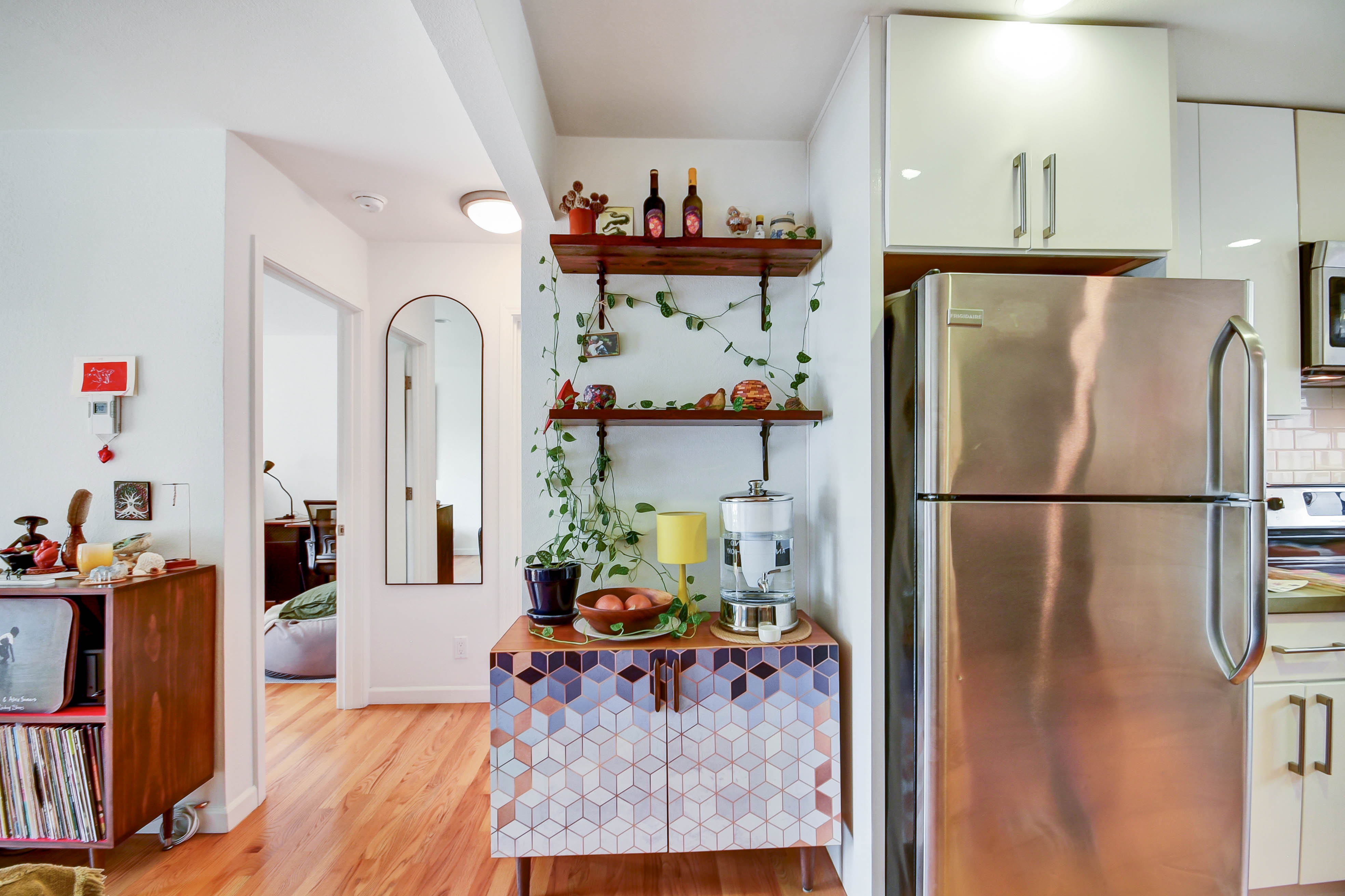 Located in sunny Potrero Hill, this recently updated TIC offers all conveniences! Arrive home to a cobblestone San Francisco classic, sloping street with sweeping city views. Park in one of two (yes, two) dedicated parking spaces or enter through the lobby of this well-maintained building. Open concept living with beautiful light, a designer bathroom and modern kitchen. Upcycled redwood bookshelves in the living room and a custom redwood armoire in the bathroom. In-unit washer/dryer, private storage locker in the dedicated storage room, bike storage and a charming common space area out back with a firepit, barbeque and gardens. Unbeatable location with easy access to I-280, US-101, and Caltrain. Just steps from Potrero Hill favorites like Chez Maman and Plow, the 24th Street corridor, the Mission, and Dogpatch. Ideal for people seeking a well-located San Francisco home, a pied-à-terre, or an investment property.
