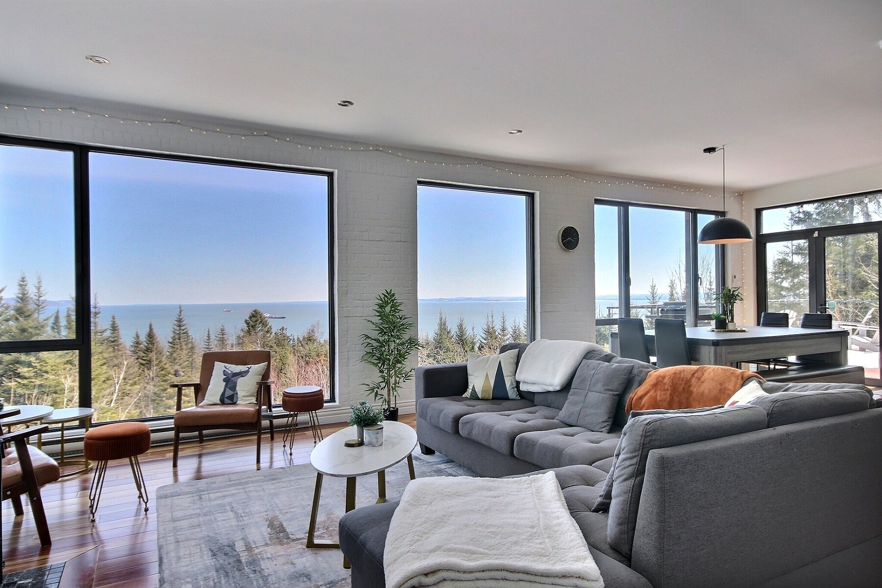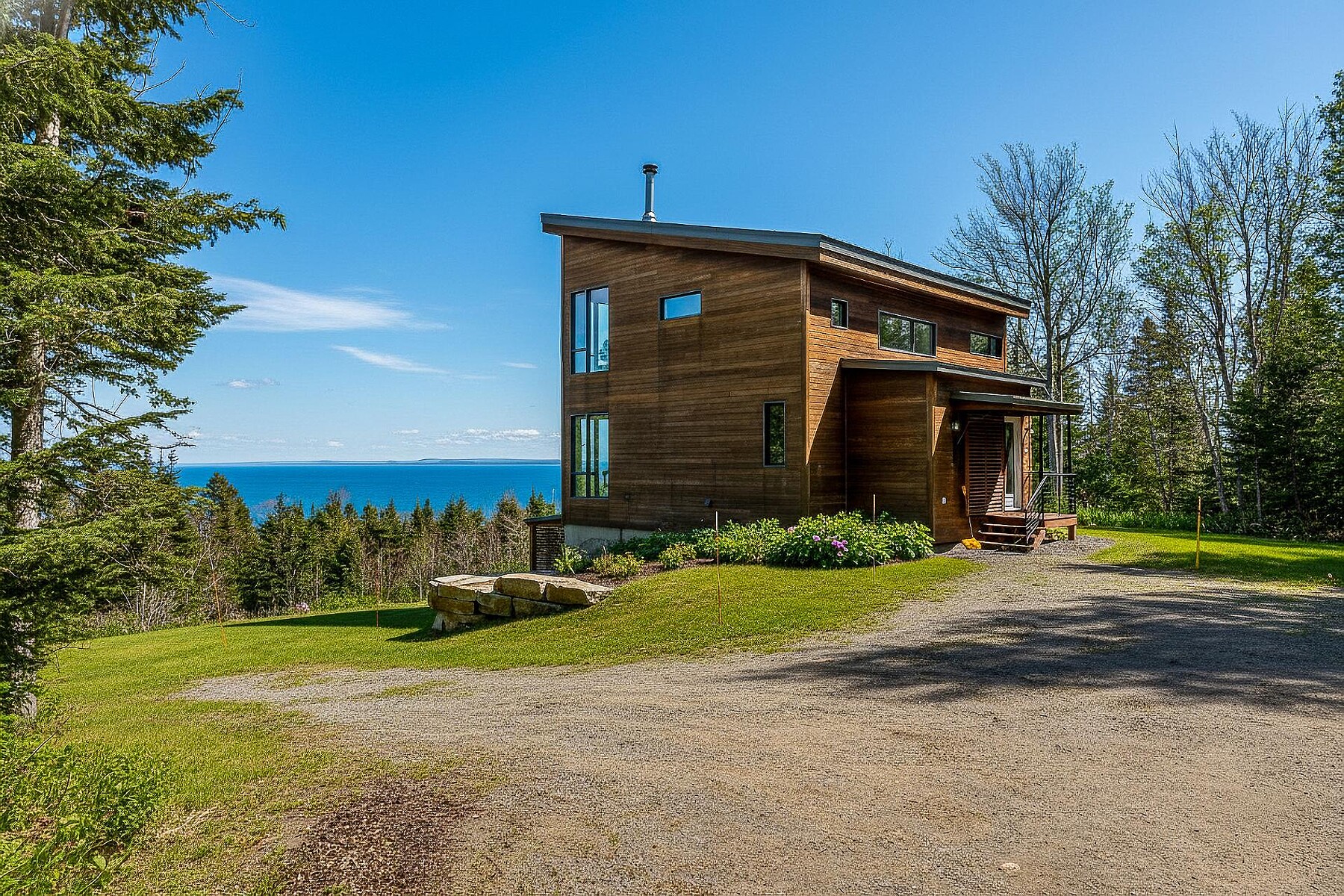 Facing the vastness of the St-Lawrence River, this exceptional property offers a breathtaking lifestyle where luxury and nature come together to create something truly magical. With its spectacular panoramic views, abundant windows, open-concept design, and high-quality materials, the residence stands in a class of its own. It features a dream kitchen, four comfortable bedrooms, two bathrooms, and a large terrace oriented toward the river. Enjoy an unparalleled way of life in a space dedicated to well-being, peace, and tranquility, set within a majestic landscape where the river and horizon stretch endlessly.