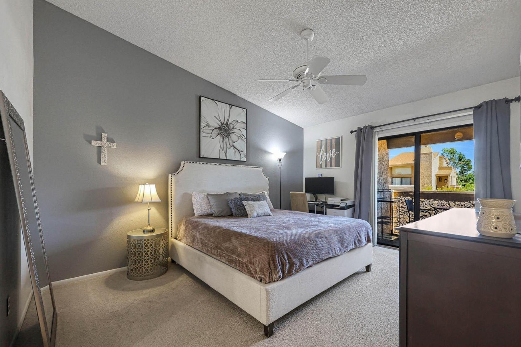 Beautiful 2 BD | 2 BA condo plus a LOFT in desirable Walden Court, ideally located near McCormick Ranch, Old Town Scottsdale, and Chaparral Park. This private second-floor unit features two patios for year-round enjoyment. The open floor plan offers a spacious living/dining area with vaulted ceilings, fireplace, and serene park views. The eat-in kitchen includes granite countertops, matching appliances, and a breakfast nook. The primary suite has a walk-in closet with built-in shelving. Washer and dryer in unit. Newer paint and carpet added after photos. Enjoy the community pool, plus nearby parks, golf, greenbelt, and walking trails. Experience the best of Scottsdale living!