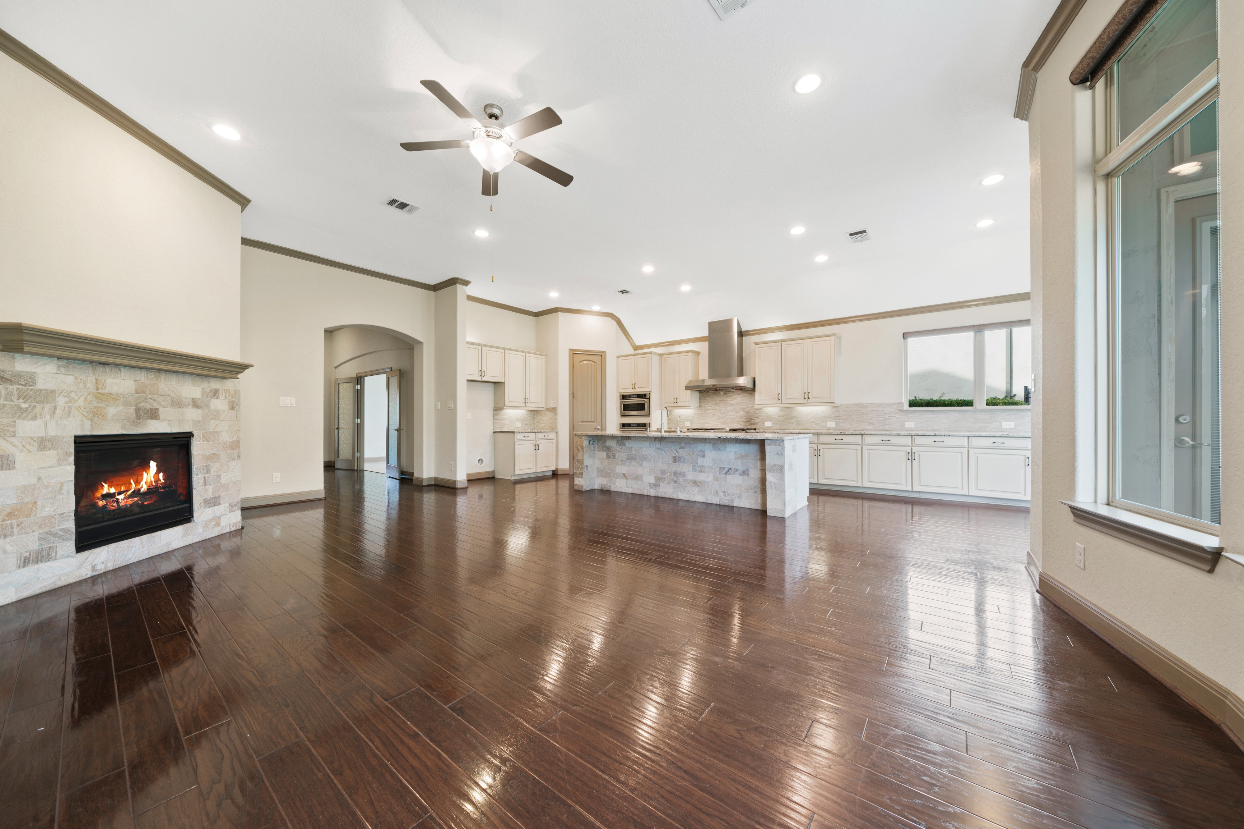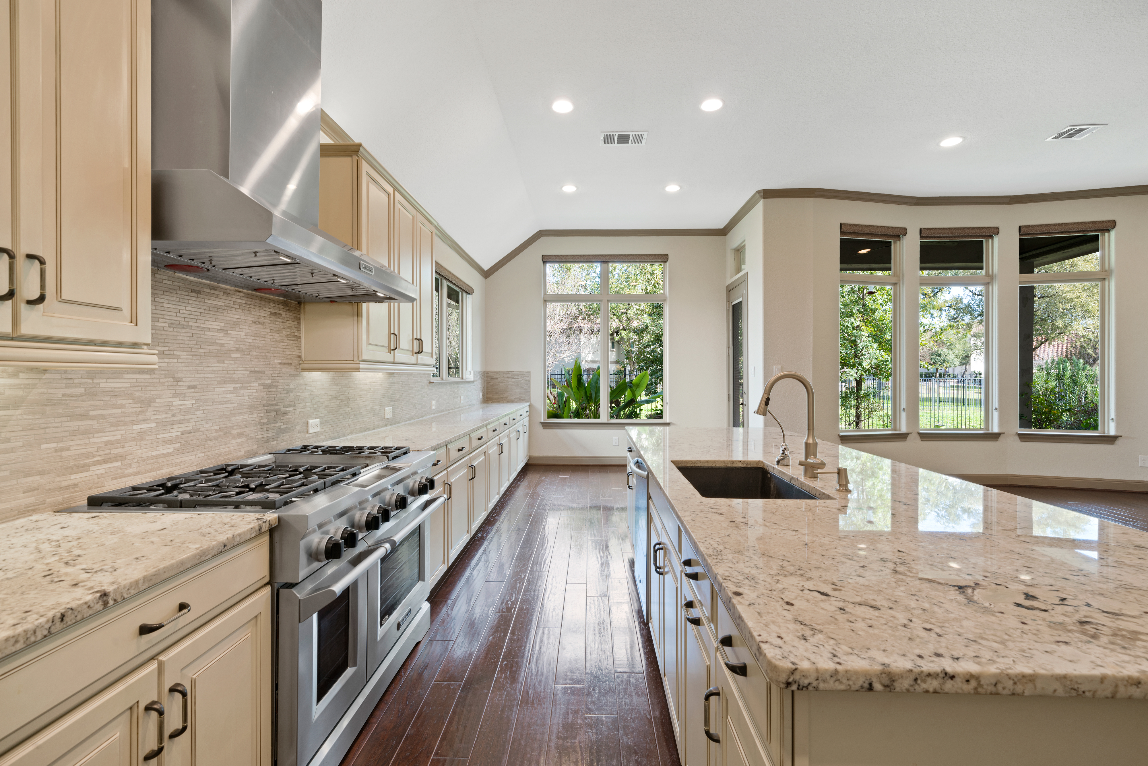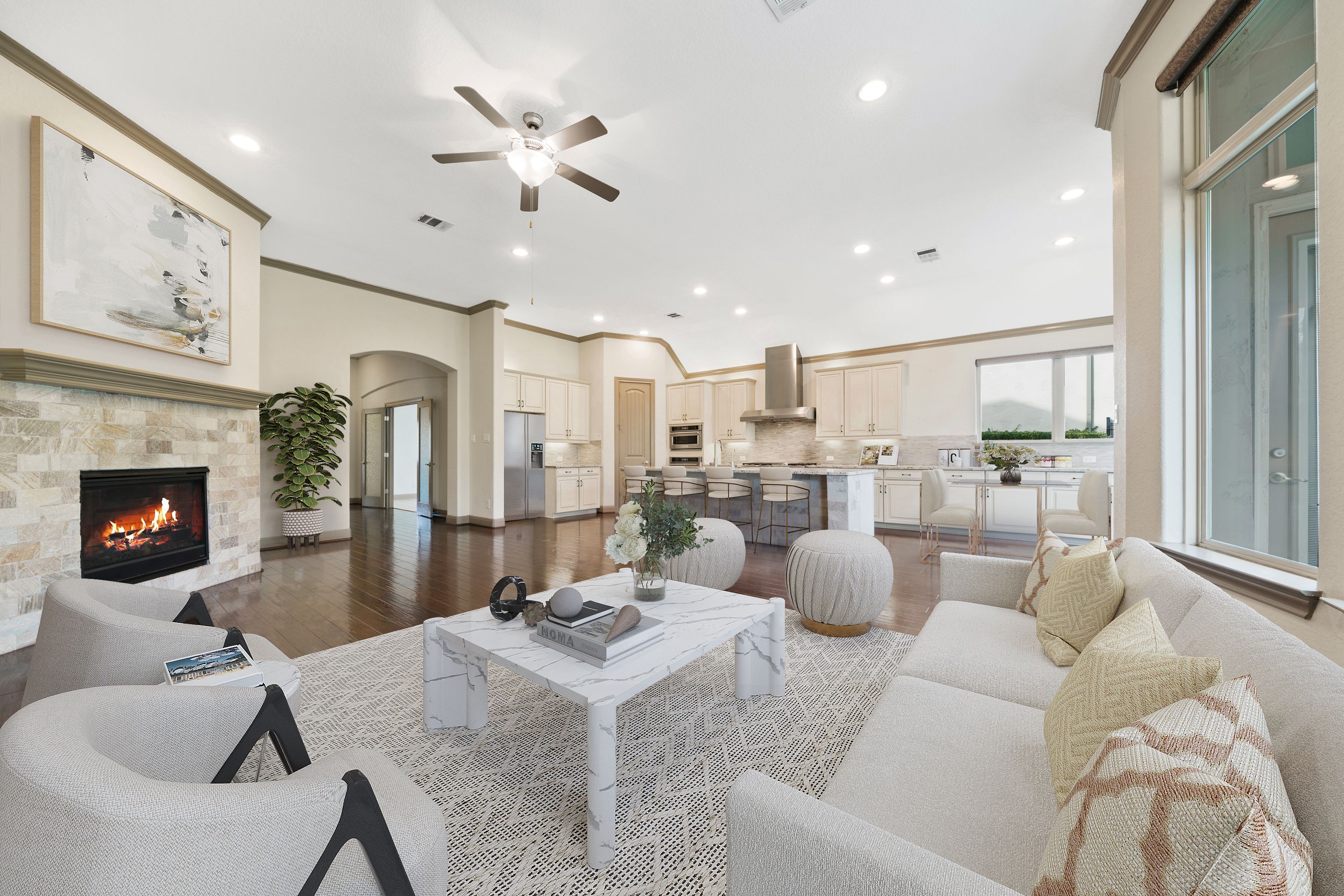 Set within The Dominion, this single story residence offers four bedrooms, three bathrooms, and a comfortable layout designed for everyday living and easy entertaining. The living and dining areas connect naturally to the kitchen, which features stainless steel appliances, gas cooking, double ovens, custom cabinetry, generous counter space, and barstool seating at the breakfast bar. Quality finishes are carried throughout the home, including wood flooring, tile details, custom ceiling treatments, upgraded lighting, carpet updates, and interior and exterior paint updates. The family room is anchored by a stacked stone fireplace and looks out toward the covered patio and backyard. The primary suite includes a well appointed bath with a spa inspired feel and a large walk in closet, while three additional bedrooms provide comfortable space for family, guests, or a home office. Outdoors, the covered patio overlooks a well maintained lawn and treed backyard. Positioned within one of San Antonio's most established gated communities, The Dominion offers 24 hour guarded entry and a convenient location near I 10, shopping, dining, and major business corridors. The community is also near The Dominion Country Club, offering golf, tennis, fitness, pool, dining, and social amenities through separate membership.