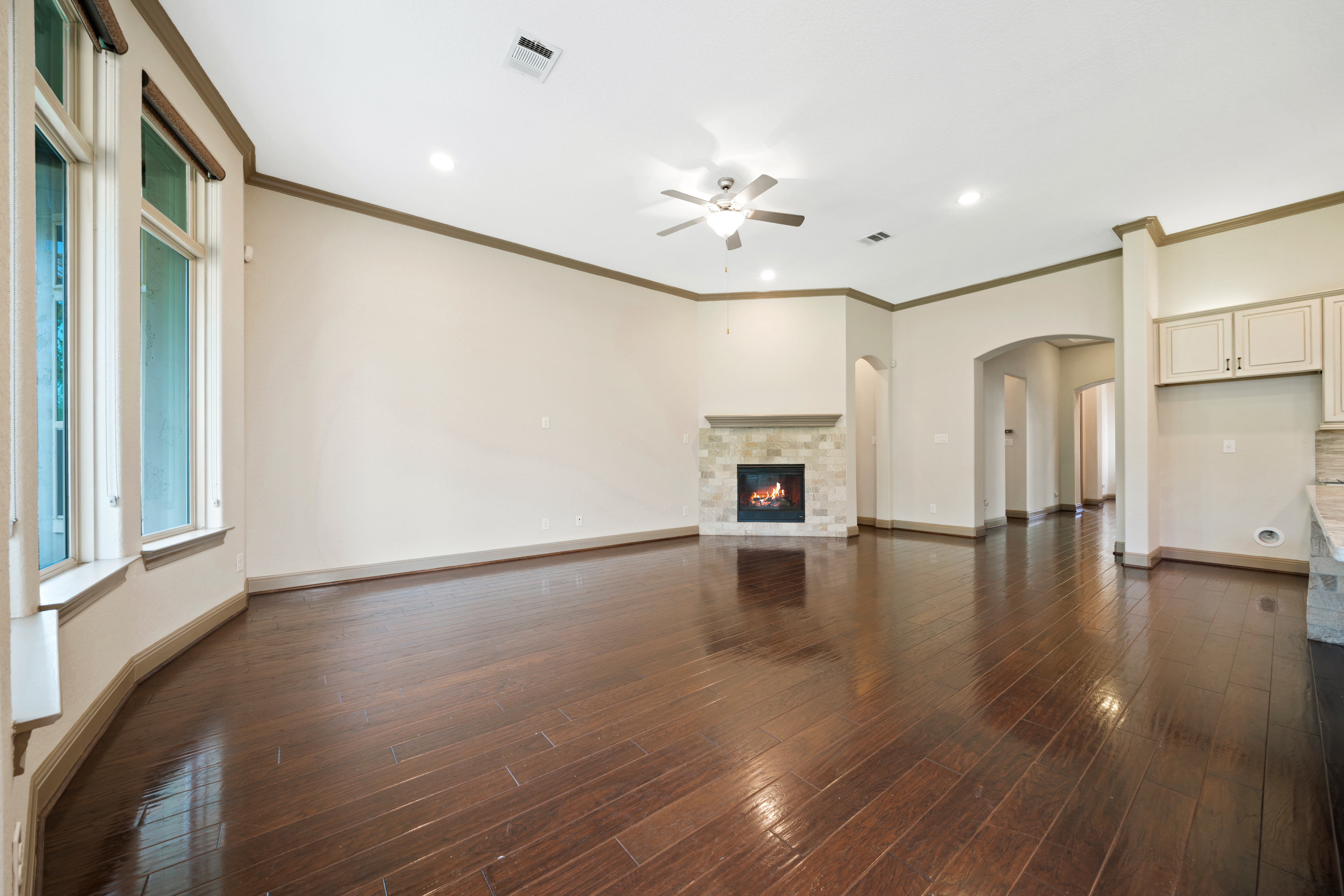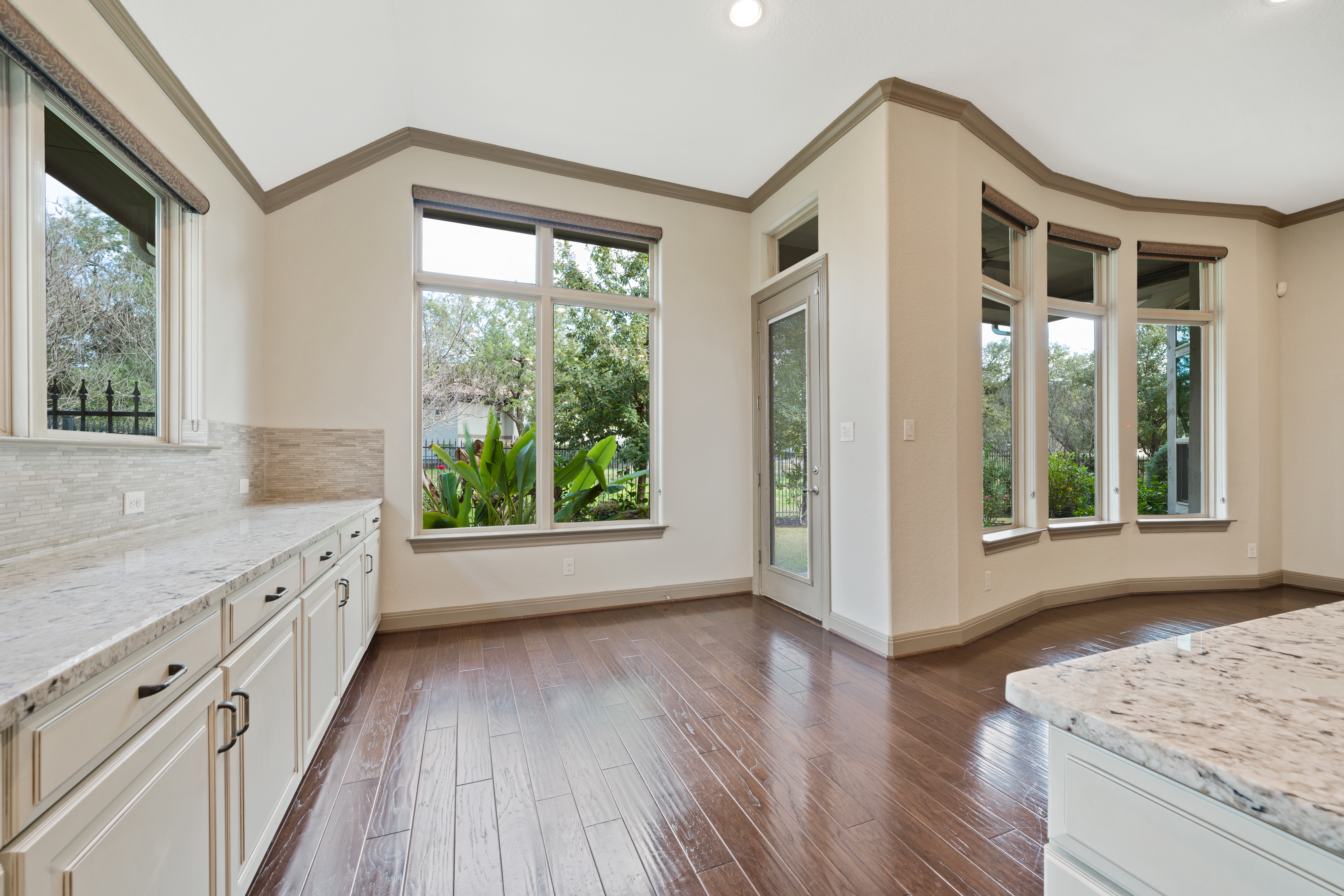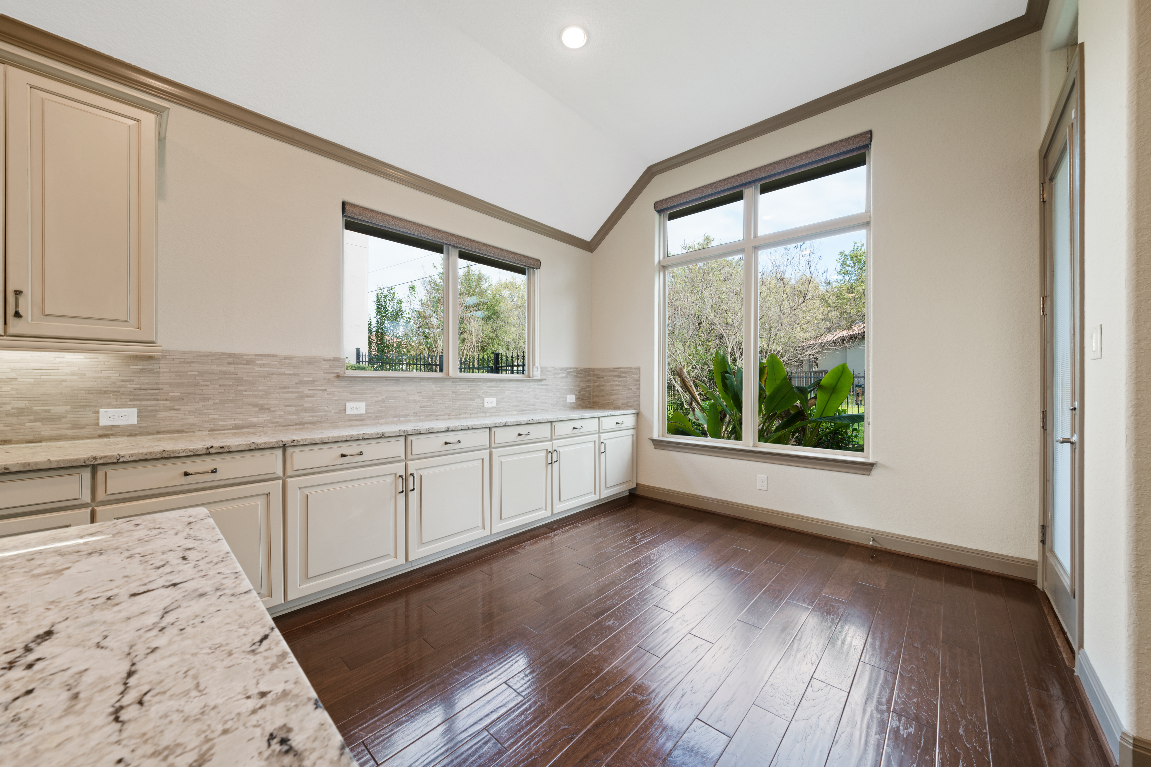 Set within The Dominion, this single story residence offers four bedrooms, three bathrooms, and a comfortable layout designed for everyday living and easy entertaining. The living and dining areas connect naturally to the kitchen, which features stainless steel appliances, gas cooking, double ovens, custom cabinetry, generous counter space, and barstool seating at the breakfast bar. Quality finishes are carried throughout the home, including wood flooring, tile details, custom ceiling treatments, upgraded lighting, carpet updates, and interior and exterior paint updates. The family room is anchored by a stacked stone fireplace and looks out toward the covered patio and backyard. The primary suite includes a well appointed bath with a spa inspired feel and a large walk in closet, while three additional bedrooms provide comfortable space for family, guests, or a home office. Outdoors, the covered patio overlooks a well maintained lawn and treed backyard. Positioned within one of San Antonio's most established gated communities, The Dominion offers 24 hour guarded entry and a convenient location near I 10, shopping, dining, and major business corridors. The community is also near The Dominion Country Club, offering golf, tennis, fitness, pool, dining, and social amenities through separate membership.