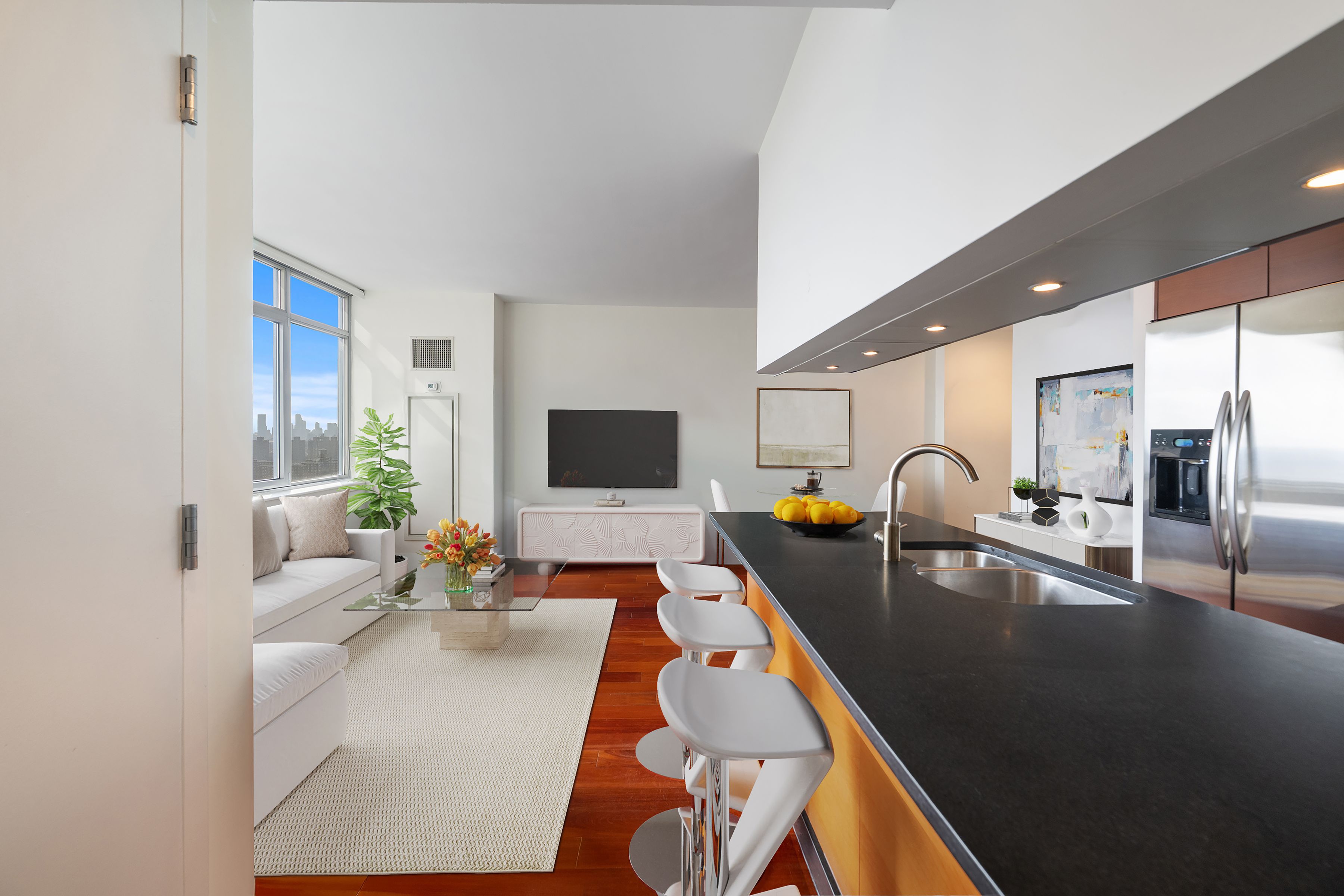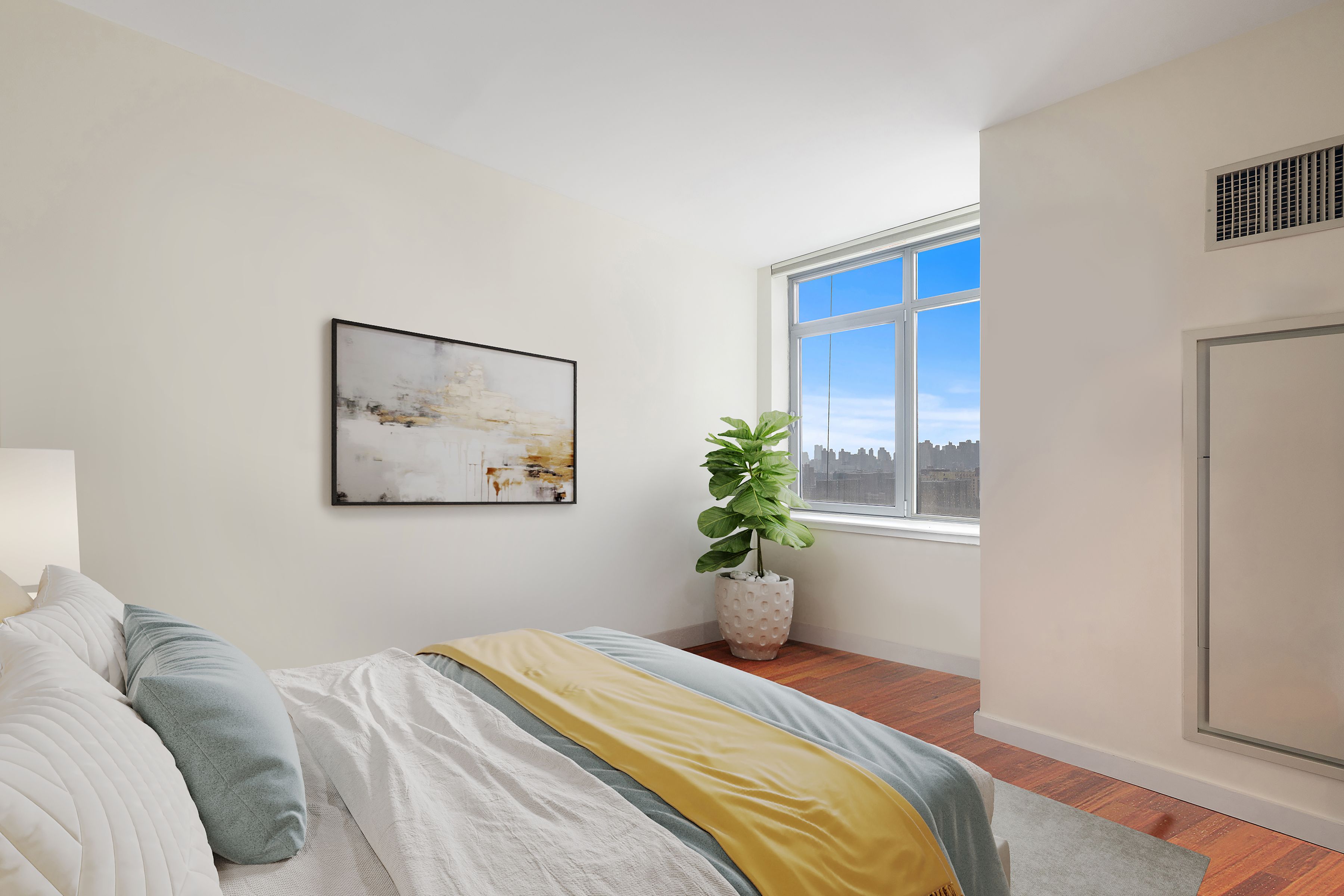 Welcome to Residence 22C at 1485 Fifth Avenue — a sun-drenched one-bedroom, one-bath home soaring high above East Harlem in a full-service luxury building. Perched on the 22nd floor of a 28-story tower, this home offers sweeping city views and abundant natural light throughout the day. The open kitchen features sleek stainless-steel appliances, generous cabinetry, and a spacious breakfast bar ideal for both everyday living and entertaining. Hardwood floors run throughout the residence, and the convenience of an in-unit washer/dryer is thoughtfully tucked away in the foyer. Residents of Fifth on Park enjoy an exceptional amenity package, including a 24-hour attended lobby with doorman and concierge, valet parking garage, indoor swimming pool, fully equipped fitness center, residents’ lounge with catering kitchen, children’s playroom, and a beautifully furnished rooftop with panoramic views. Ideally located just moments from Mount Morris Park, the building is super close to Metro-North and offers easy access to multiple subway lines (2/3/4/5/6). The neighborhood is surrounded by Harlem’s vibrant mix of acclaimed restaurants, cafés, boutiques, and cultural destinations. Luxury, light, and location—this is elevated city living at its finest. Some photos of the residence are virtually staged. Currently monthly assessment of $568.43