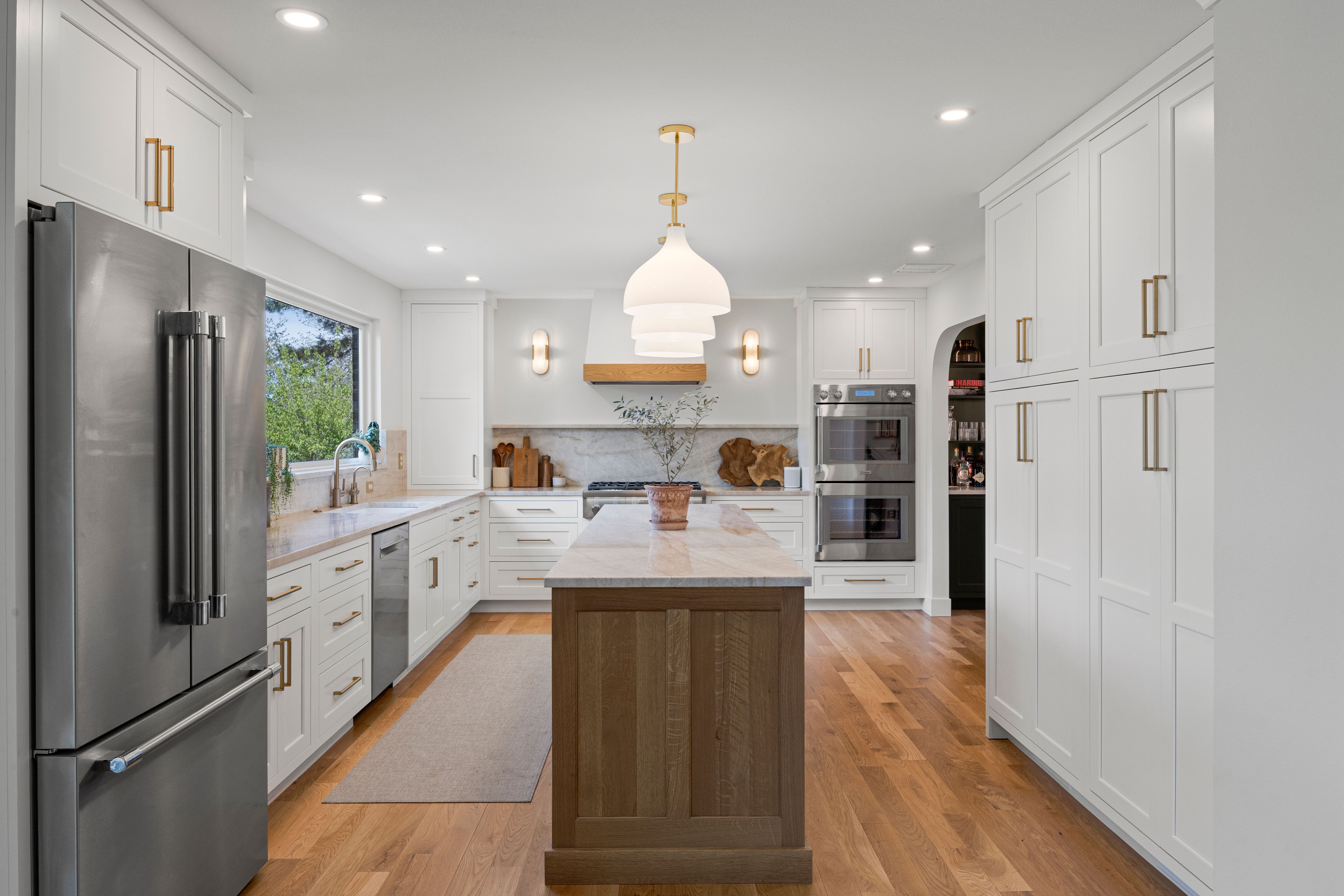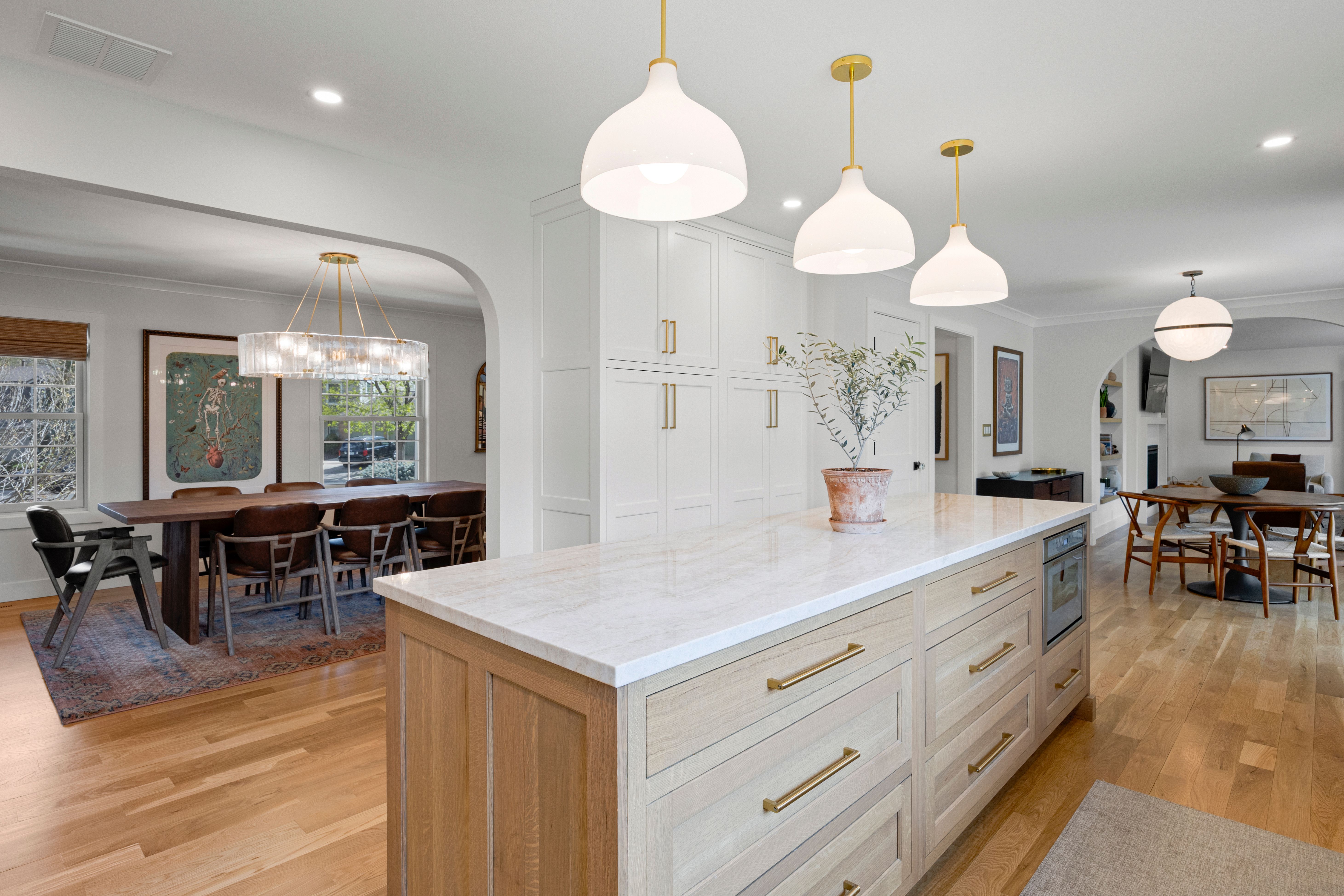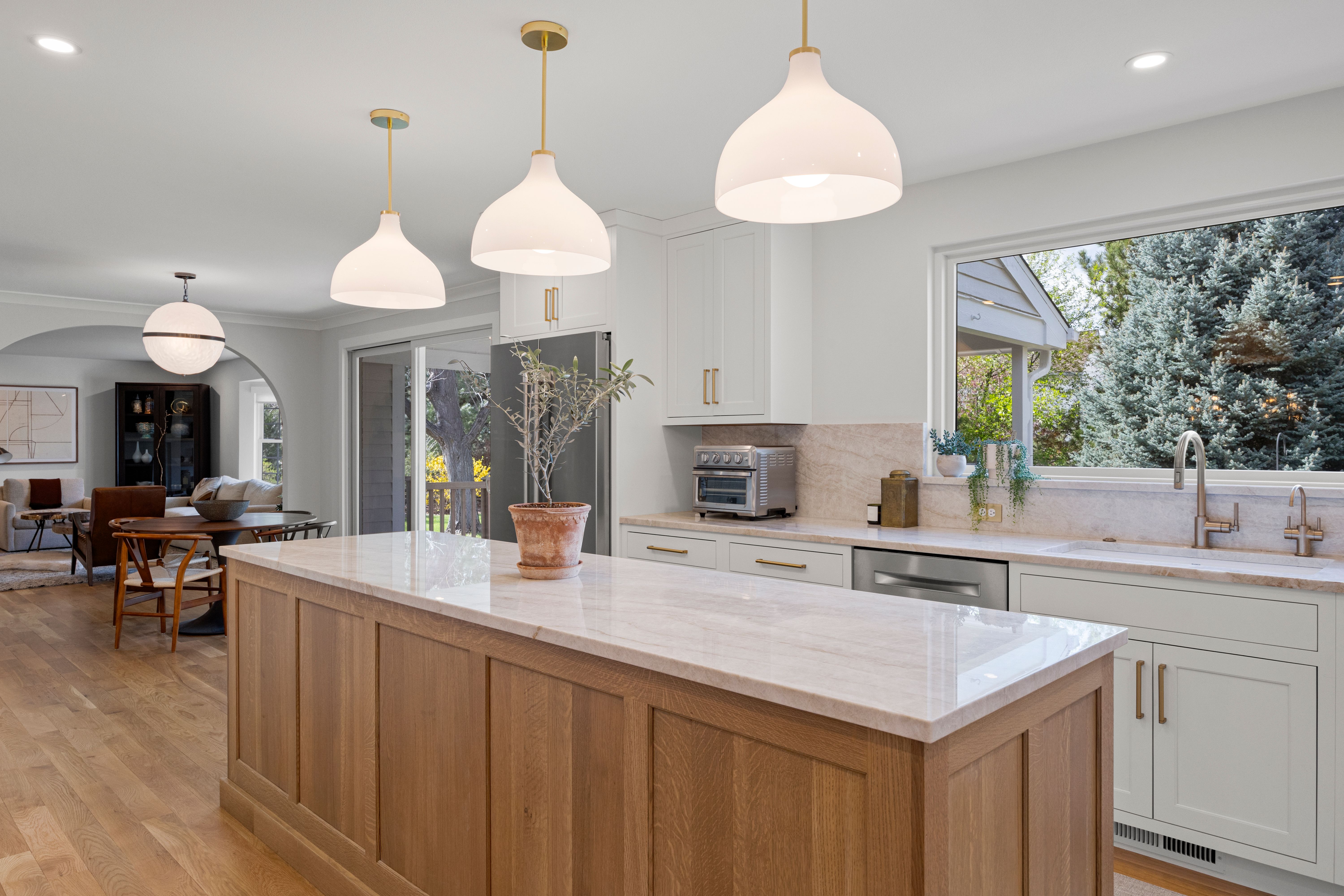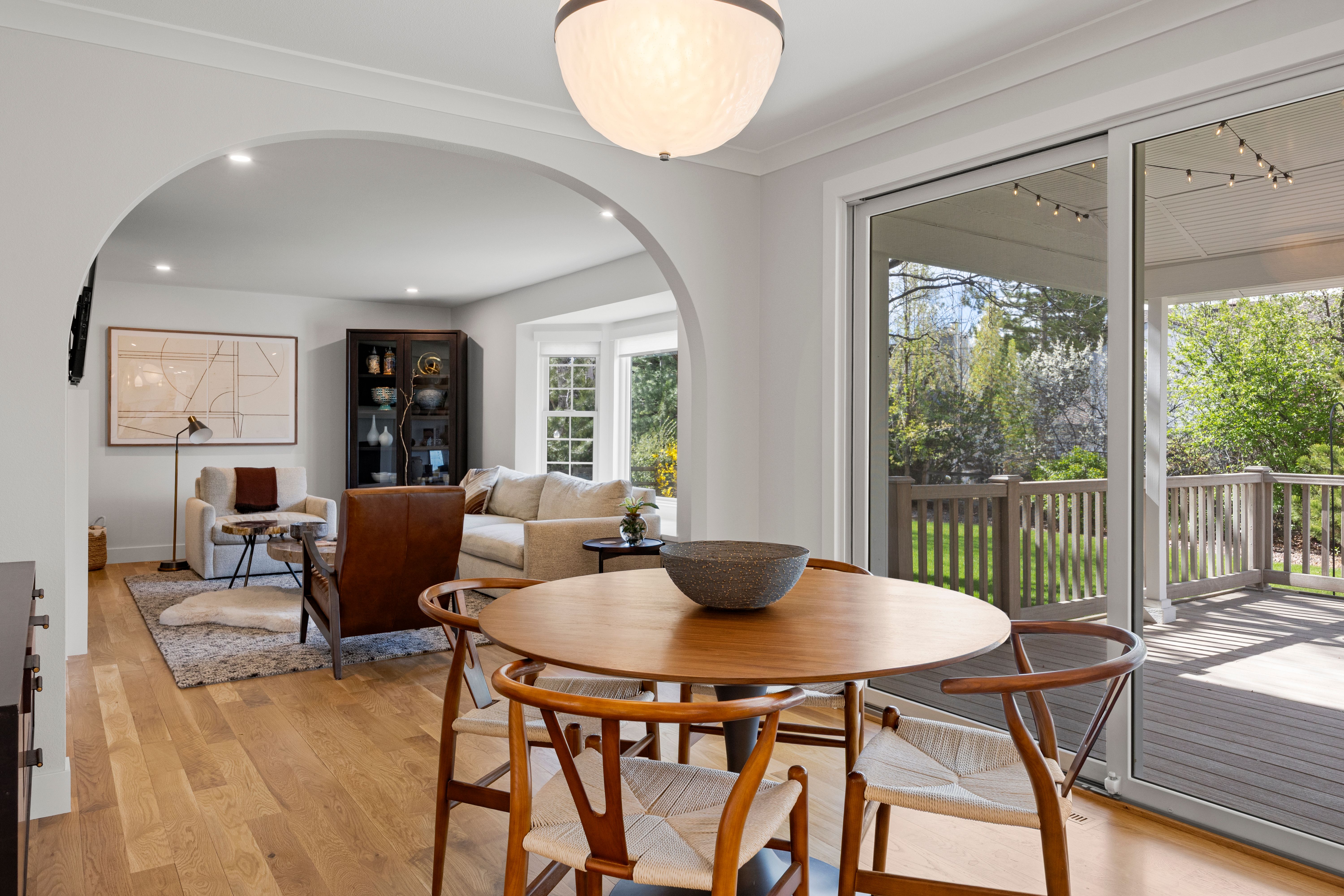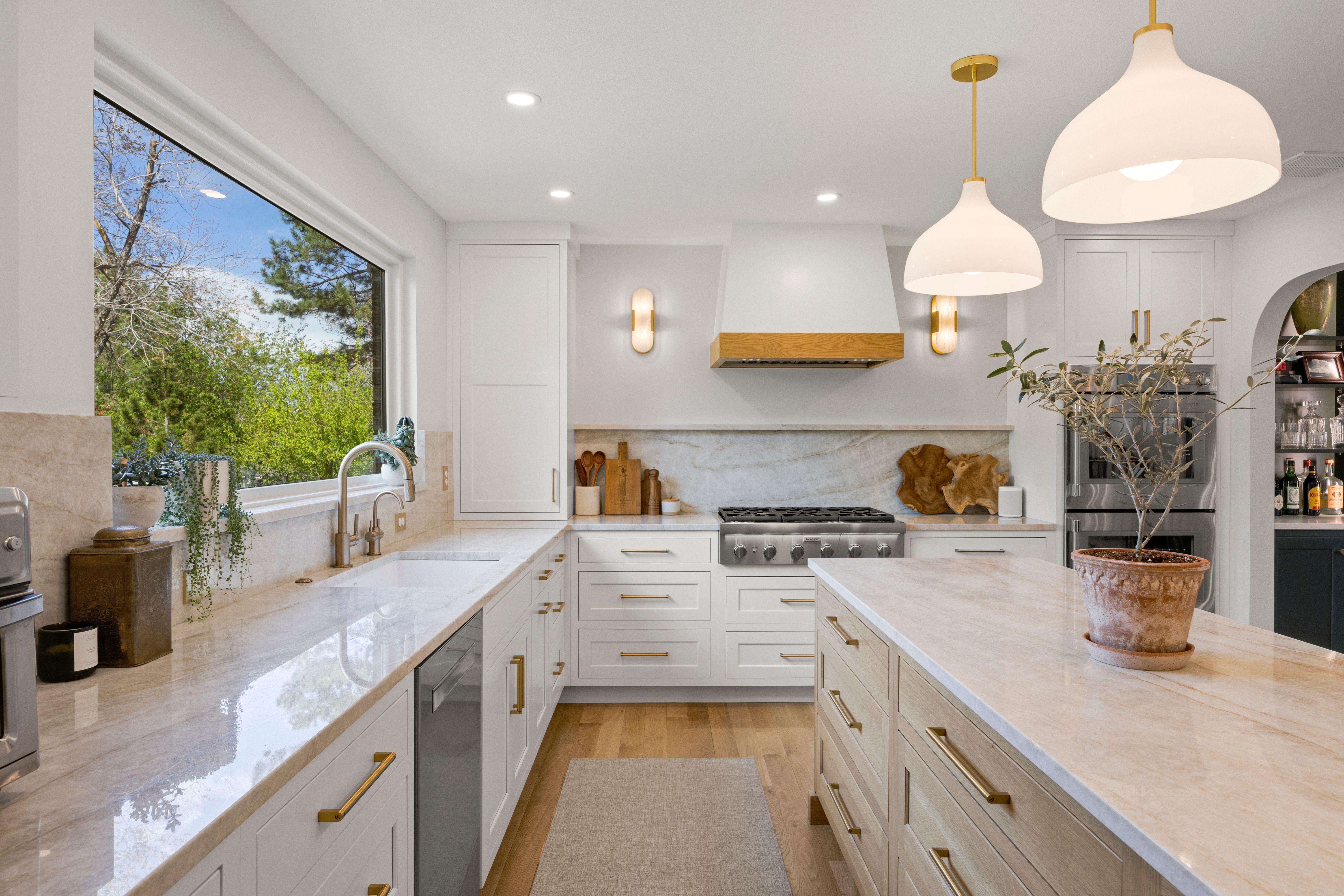 Rarely does a home of this caliber come to market—completely reimagined down to the studs with a sophisticated redesign tailored for today’s lifestyle. Every inch of this residence reflects exceptional craftsmanship, intentional design, and over $350K in high-end improvements. At the heart of the home is a showstopping chef’s kitchen, thoughtfully expanded to create an open, functional gathering space. Outfitted with top-of-the-line Thermador appliances, a dramatic Taj Mahal quartzite island as well as counters and backsplash, and custom inset soft-close cabinetry, this kitchen is as stunning as it is practical. A new oversized sliding door and panoramic window flood the space with natural light while creating effortless indoor-outdoor flow. Designed for both everyday living and elegant entertaining, the spacious dining and family rooms feature custom built-ins and a striking new gas fireplace. A newly added mudroom and laundry room just off the garage provide great functionality. No detail has been overlooked: wide-plank white oak flooring throughout, all-new doors and hardware, new baseboards and crown molding, a beautifully redesigned staircase with new balusters, designer lighting and hardware from Rejuvenation, new premium carpeting with plush padding upstairs and fully remodeled bathrooms including the main floor powder room and a new primary bathroom. Smart home features and high-quality window coverings complete the elevated experience. Situated on one of the largest and most private interior lots at the end of a quiet cul-de-sac, this 4-bedroom, 3-bath home offers a rare sense of space and serenity. The beautifully landscaped backyard is a true retreat, highlighted by an expansive covered, all-weather Trex deck—perfect for year-round enjoyment. A short walk to the greenbelt, pool, and tennis courts, this location seamlessly blends privacy with community amenities. This is more than a remodel—it’s a complete transformation, executed to perfection.
