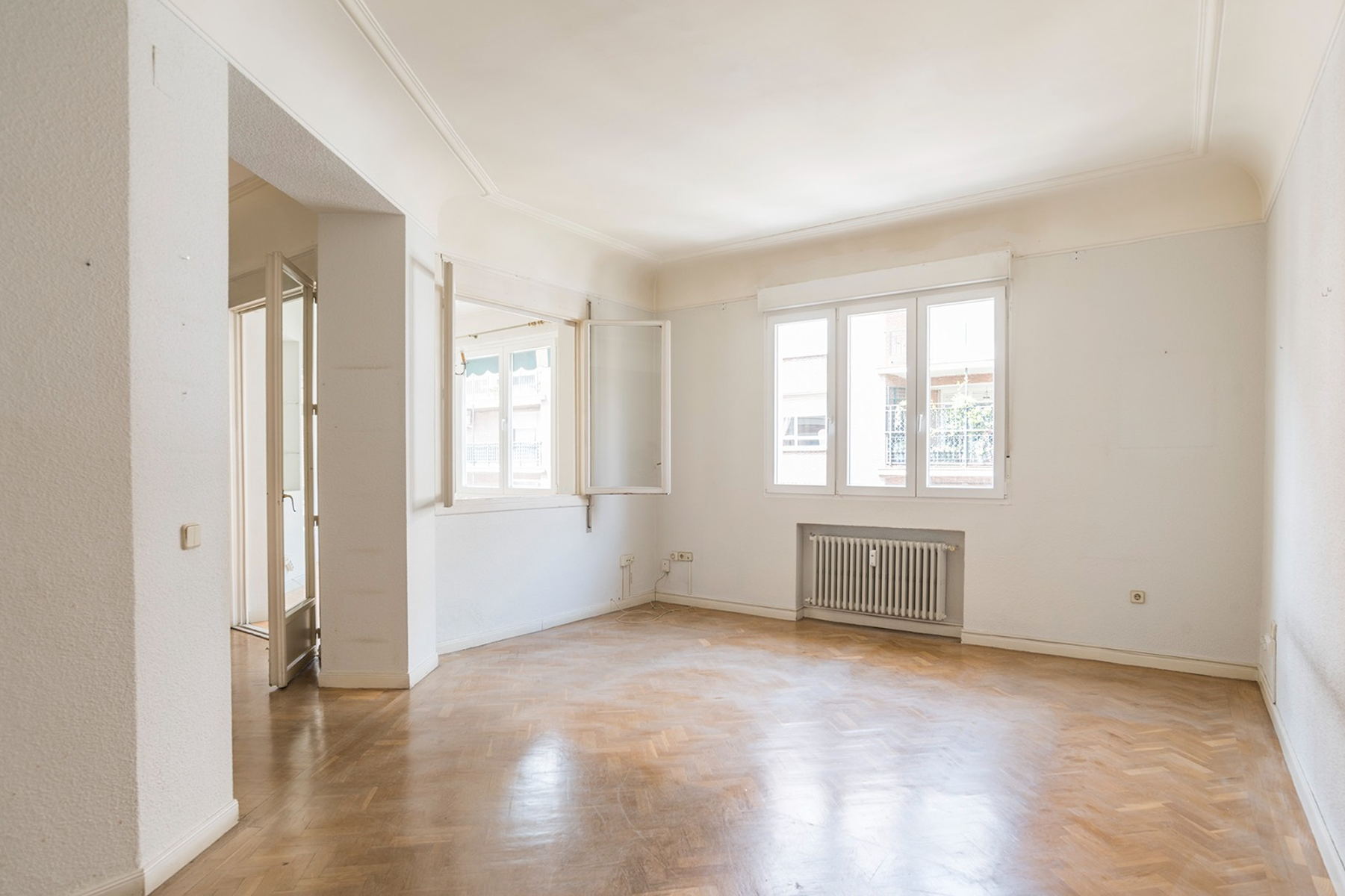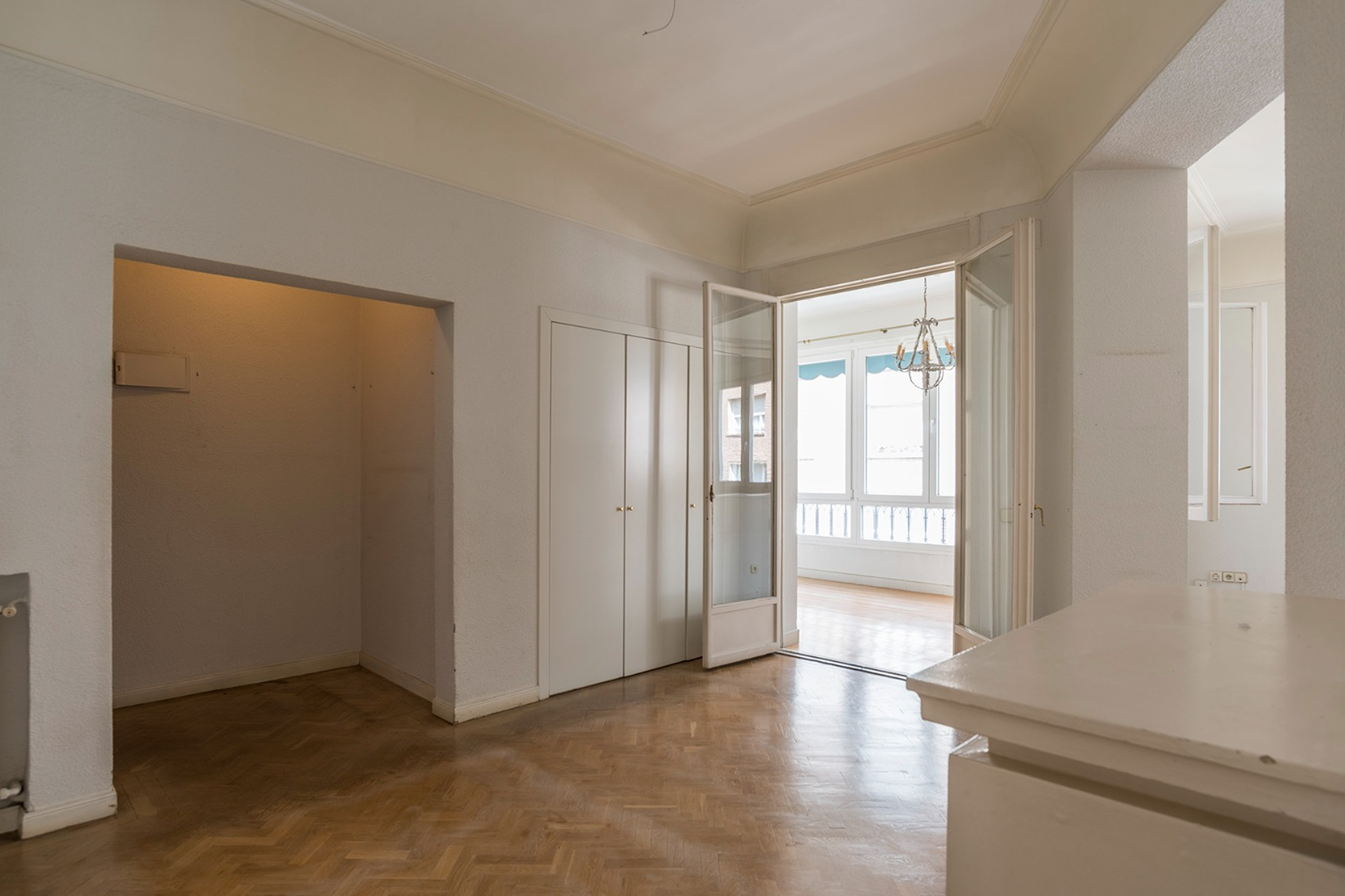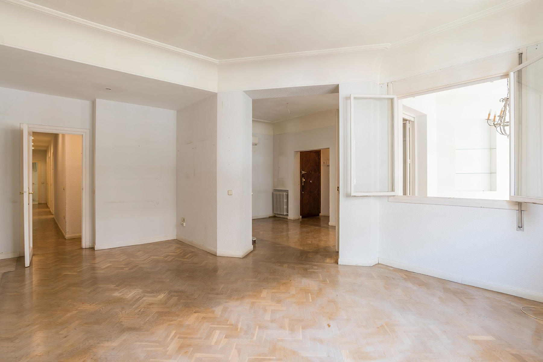 Located in the most prestigious quadrant of the Barrio de Salamanca, this property represents an exceptional opportunity for those looking to design a customized home in Madrid's most distinguished setting. Situated on the fourth floor of an imposing 1946 stately building, the residence embodies the architectural character that defines Recoletos: representative facades, high ceilings, and unparalleled institutional presence.This 220 m² property stands out for its extraordinary renovation potential, allowing for the reconfiguration of its spaces to elevate them to the highest standard of sophistication. The social area consists of an entrance hall leading to a large living-dining room flooded with natural light. From here, one can access a 15 m² terrace, a rare asset in the area that, once restored, will become a private oasis with views of the neighborhood's urban landscape.The private area is currently structured into four spacious bedrooms and three full bathrooms. The service area, independent and generously sized, includes a large kitchen and laundry area, offering the necessary flexibility to reconfigure spaces according to contemporary living needs.Maintaining the standard of the capital's grand buildings, the building has a concierge service, central heating, and integrated supplies. As a highly relevant added value in this district, the property includes a 20 m² storage room within the same building, ensuring optimal storage capacity.Living here means belonging to the epicenter of European sophistication. Just steps from the Golden Mile and Retiro Park, Recoletos offers a sublime combination of high culture, avant-garde gastronomy, and the world's most exclusive boutiques. It is, undoubtedly, the most desired address for those demanding discretion, prestige, and a secure investment value.