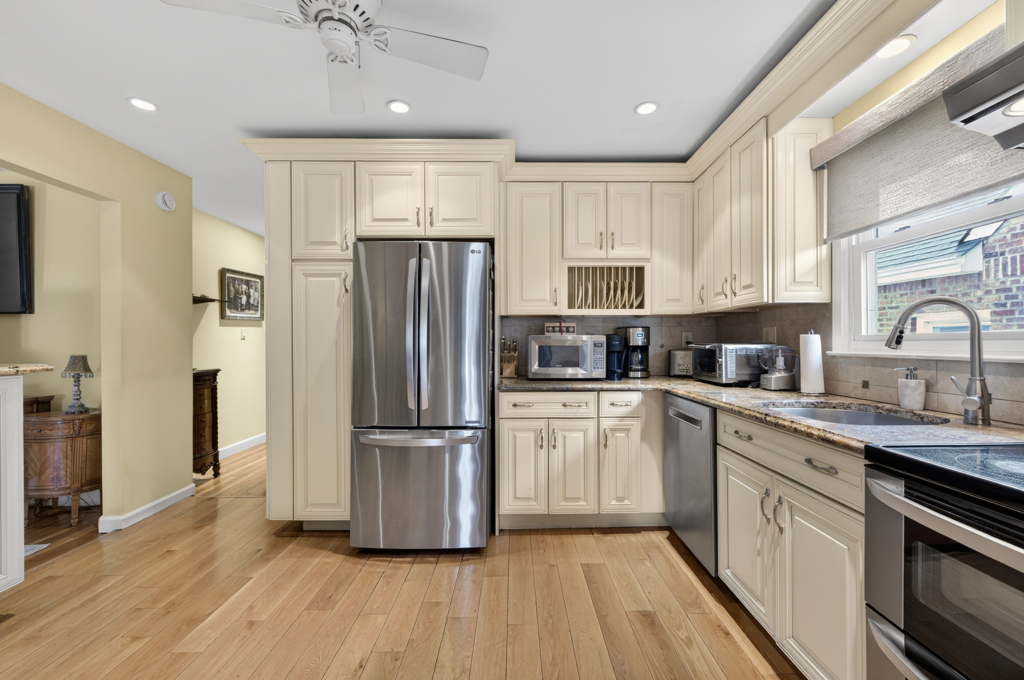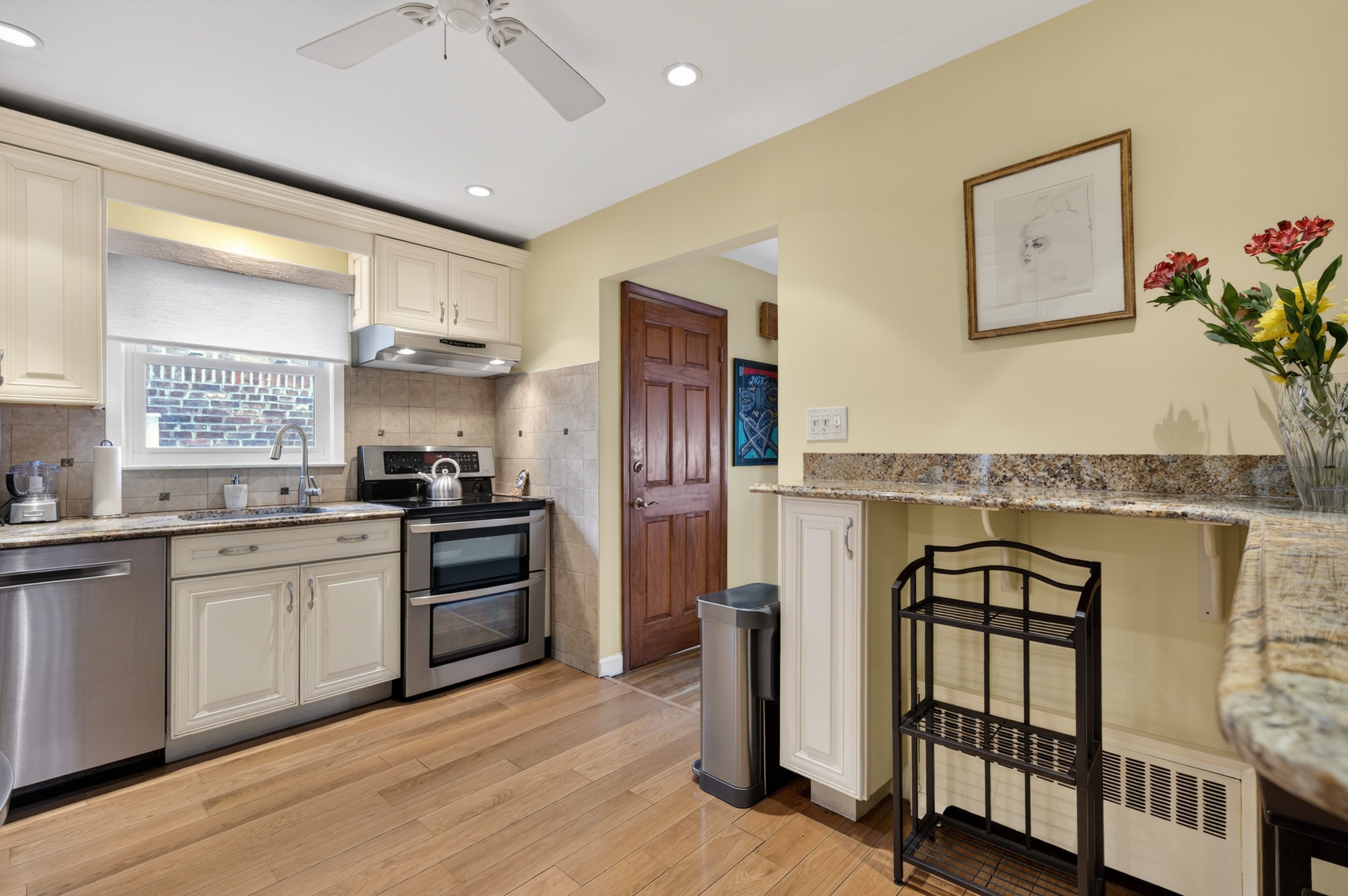 Welcome to this beautifully maintained 4-bedroom, 2-bath home in Floral Park, offering space, versatility, and comfort for today’s lifestyle.The first floor features a spacious primary bedroom, plus two additional bedrooms, a fully renovated bathroom, and an updated kitchen with granite countertops and stainless-steel appliances. A bright, inviting living room flows seamlessly into the dining area—perfect for both everyday living and entertaining. The second floor serves as a private retreat, complete with a large bedroom, full bathroom, and a convenient pantry with refrigerator. A generous bonus room adds flexibility, ideal for guests, a home office, or additional living space. Other highlights include a walk-out lower level, hardwood floors, a one-car garage, and a private backyard perfect for relaxing or entertaining outdoors. This home blends charm and functionality in a desirable location, close to transportation, dining, and shopping. Don’t miss this opportunity to own in Floral Park!