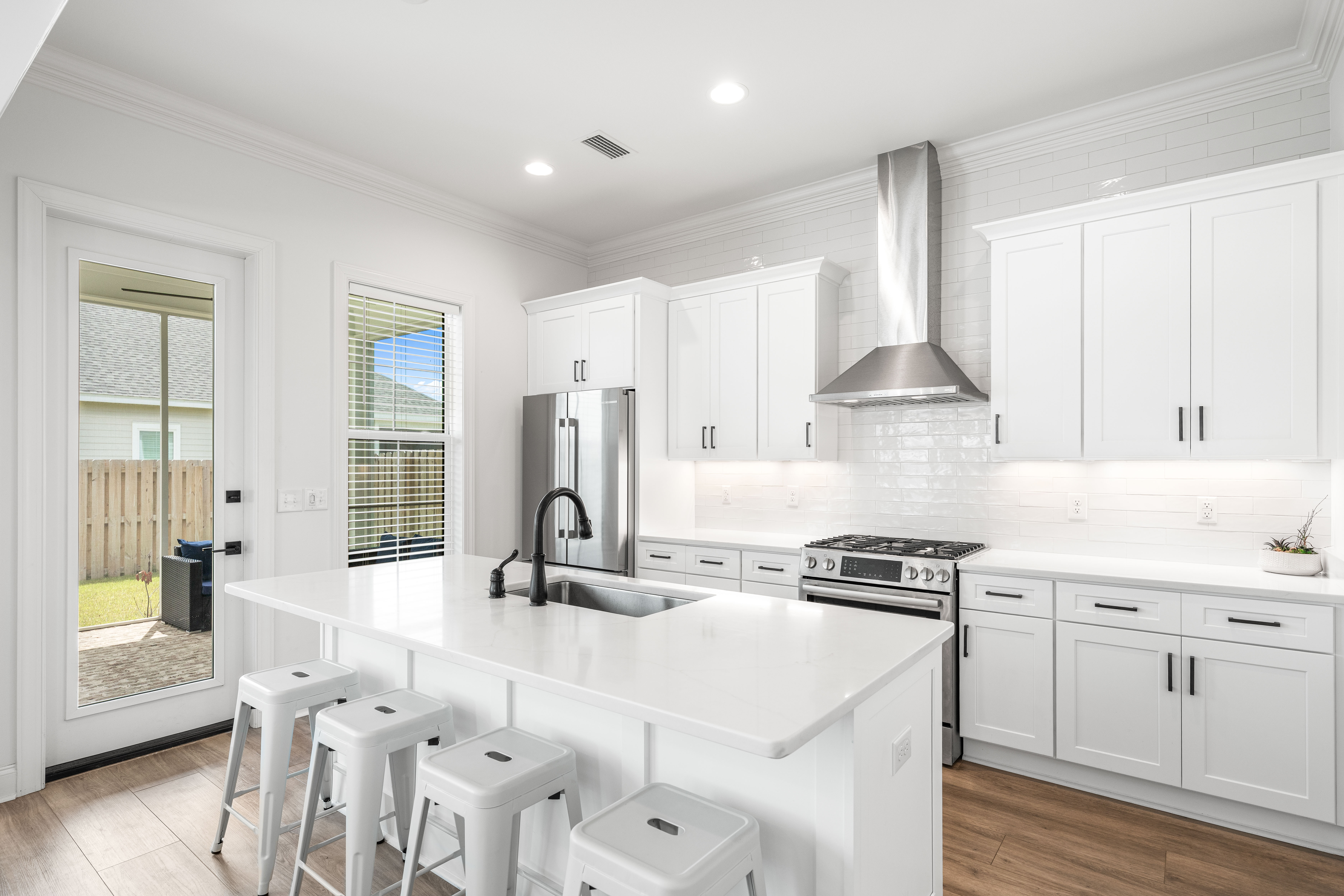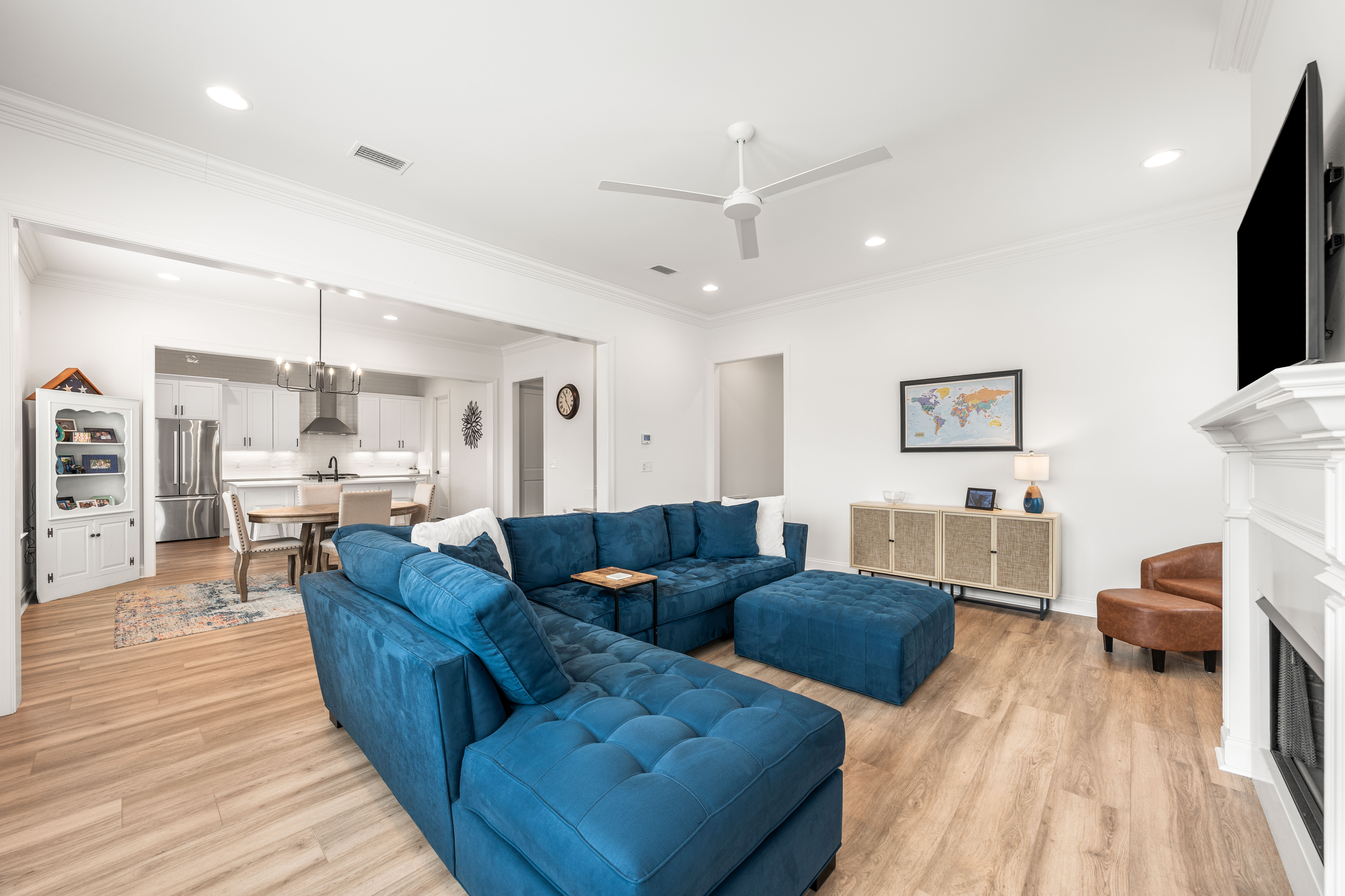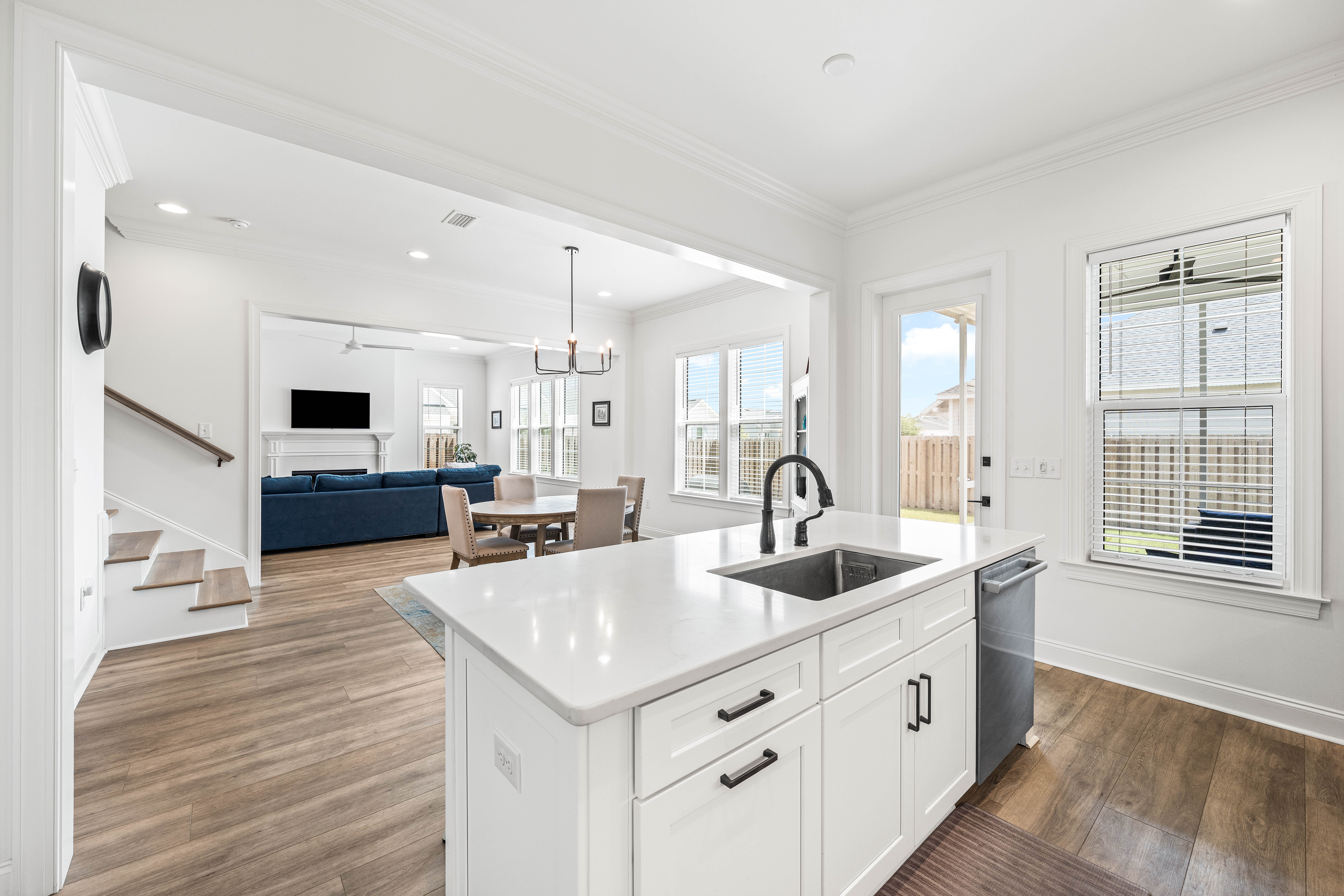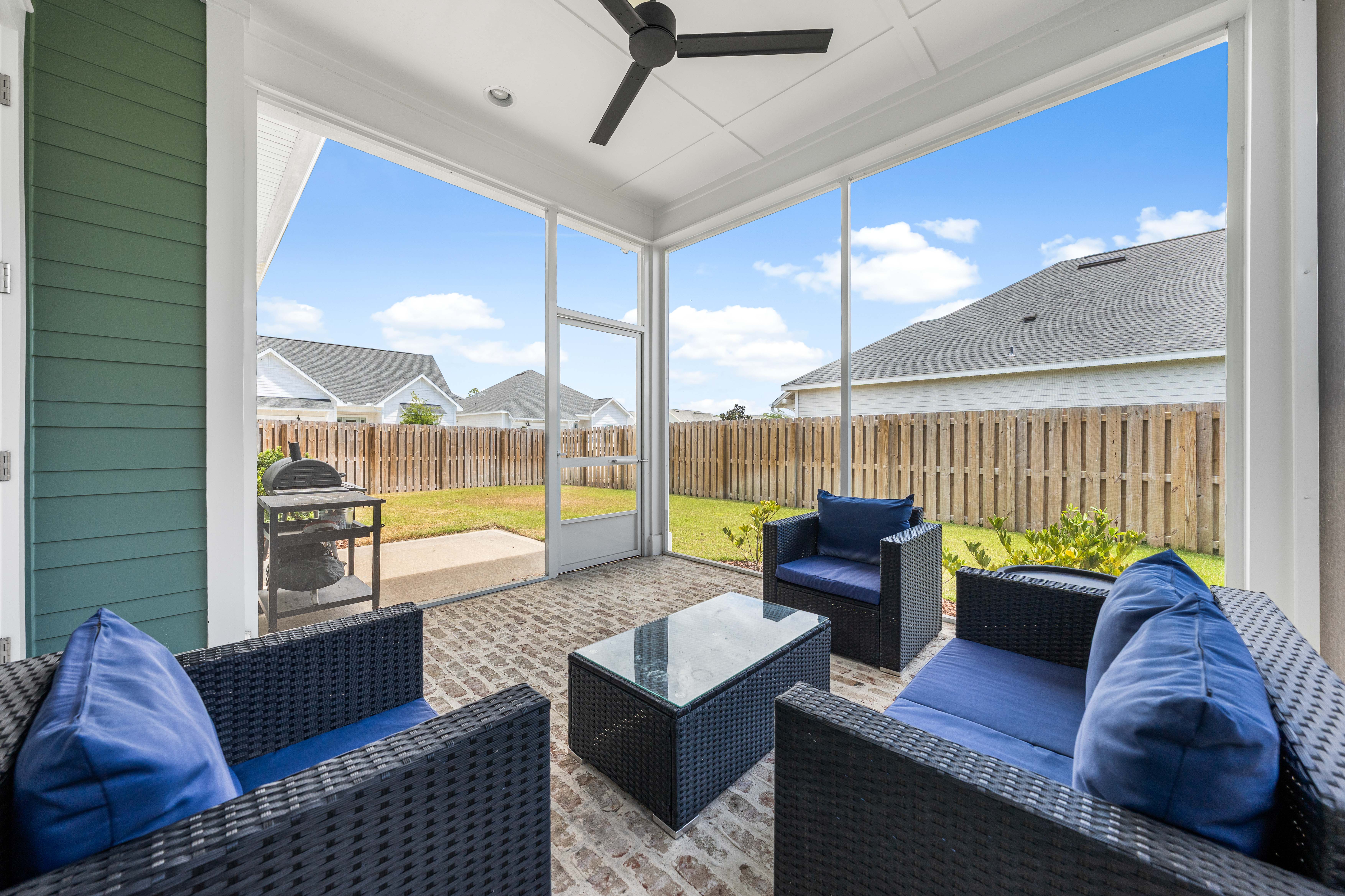 Positioned on a corner homesite, this newly constructed home includes four bedrooms, three full baths and one powder bath in the popular Watersound Origins community. This residence seamlessly blends traditional elements with contemporary features. The thoughtfully designed living space is centered around the custom fireplace and offers a harmonious blend of modern luxury and tranquil charm. The expansive open-concept layout is surrounded in natural light, thanks to ample windows throughout. The interconnected living, dining, and kitchen areas create an inviting space ideal for everyday living. The kitchen is equipped with stainless appliances including a 6-burner range, quartz countertops, and a spacious walk-in pantry. The screened porch is the perfect spot to read a book that overlooks the fenced backyard.The home’s design includes a primary suite on the first floor, featuring its own ensuite bathroom. There is also a powder bath, laundry, and custom-built locker area. Upstairs, there is a versatile flex space, perfect for a home office, media room, or play area. A junior primary suite with ensuite, two guest bedrooms, and a full bath are also on the second floor. Situated on a quiet street, this home provides peaceful living in a desirable area. This like new home perfectly balances elegance and convenience, making it a must-see for those interested in the Watersound Origins neighborhood.Watersound Origins offers residents the perfect blend of natural beauty and modern amenities. Surrounded by towering pines and Lake Powell, the community is only two miles from the vibrant beaches of Scenic Highway 30A. The Village Commons serves as the neighborhood hub, featuring a resort-style pool, fitness center, pickleball and tennis courts, and an event lawn. Residents enjoy access to the highly rated Origins Golf Course, scenic walking and biking trails, Lake Powell, and an upcoming Art Park. Additionally, the Watersound Town Center at the entrance to the community offers dining, shopping, a Publix grocery store, medical facilities, and more.