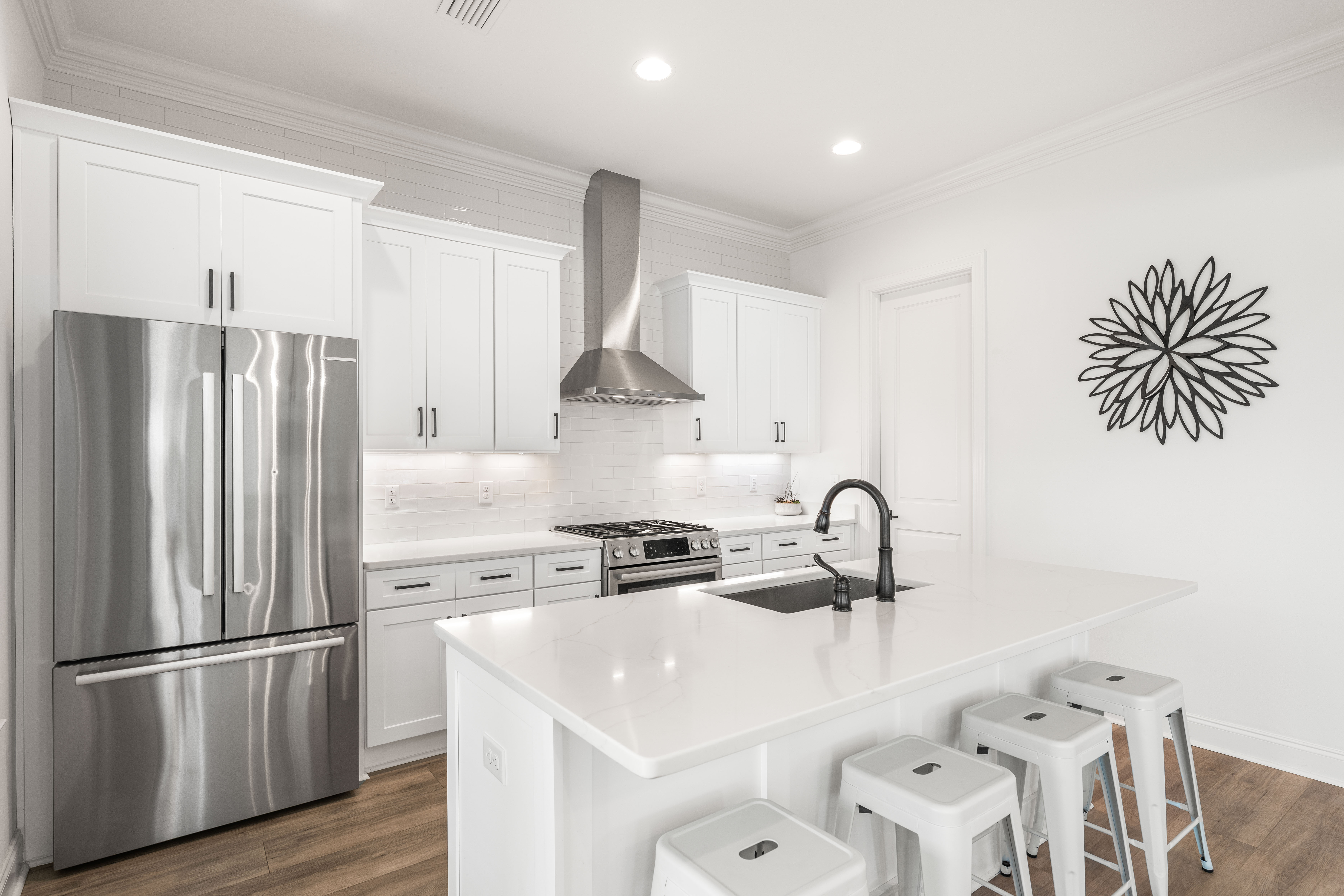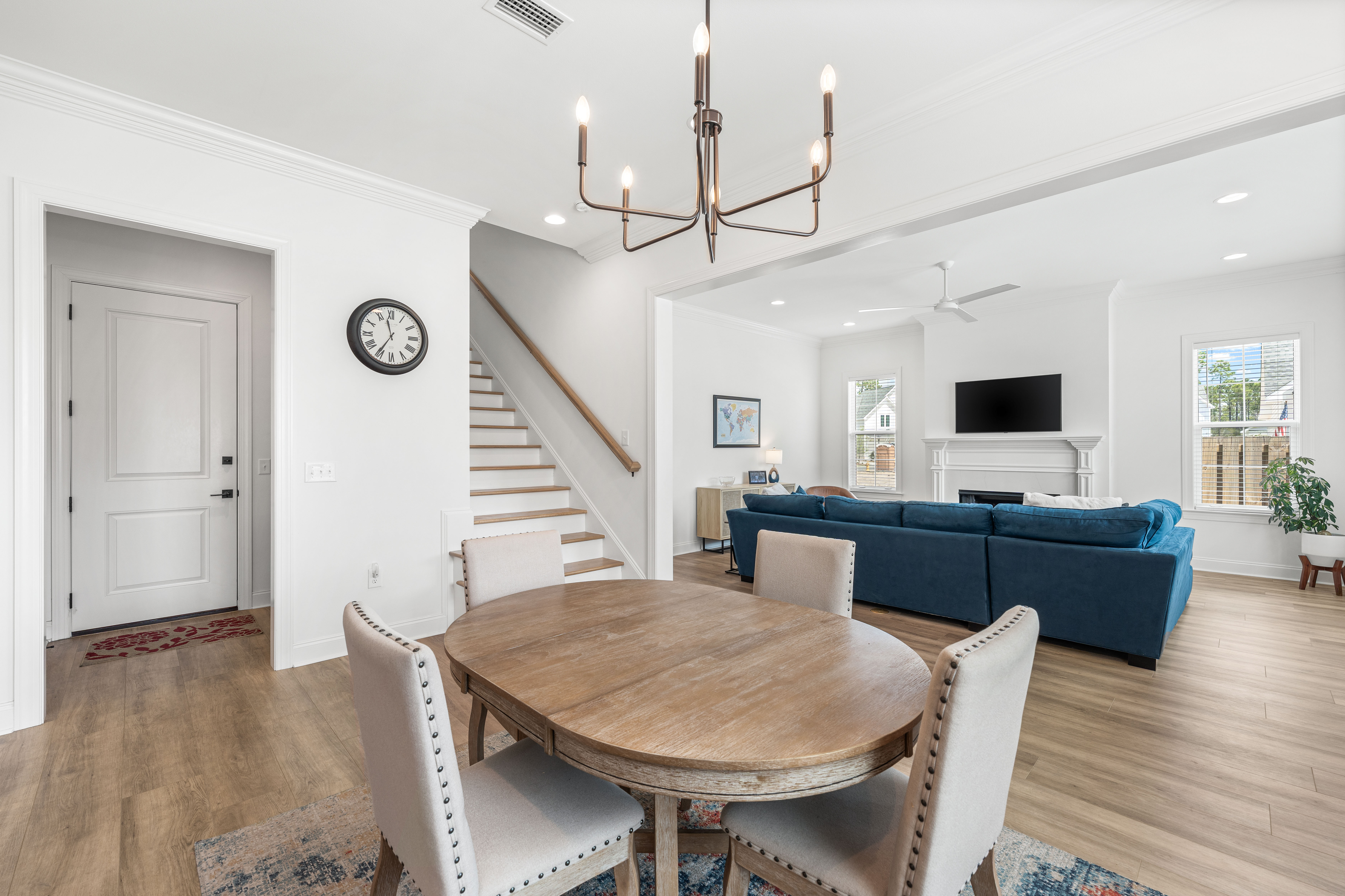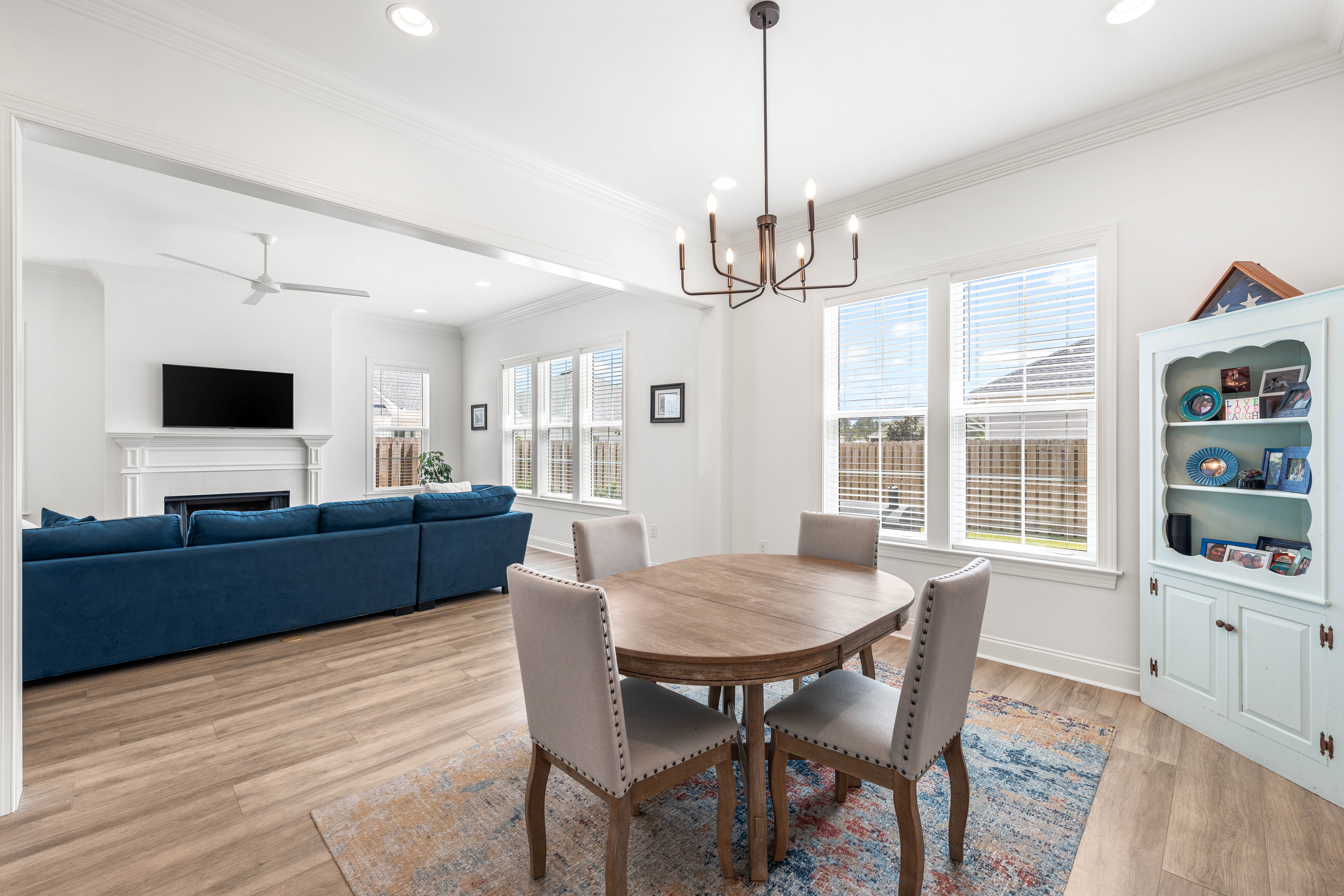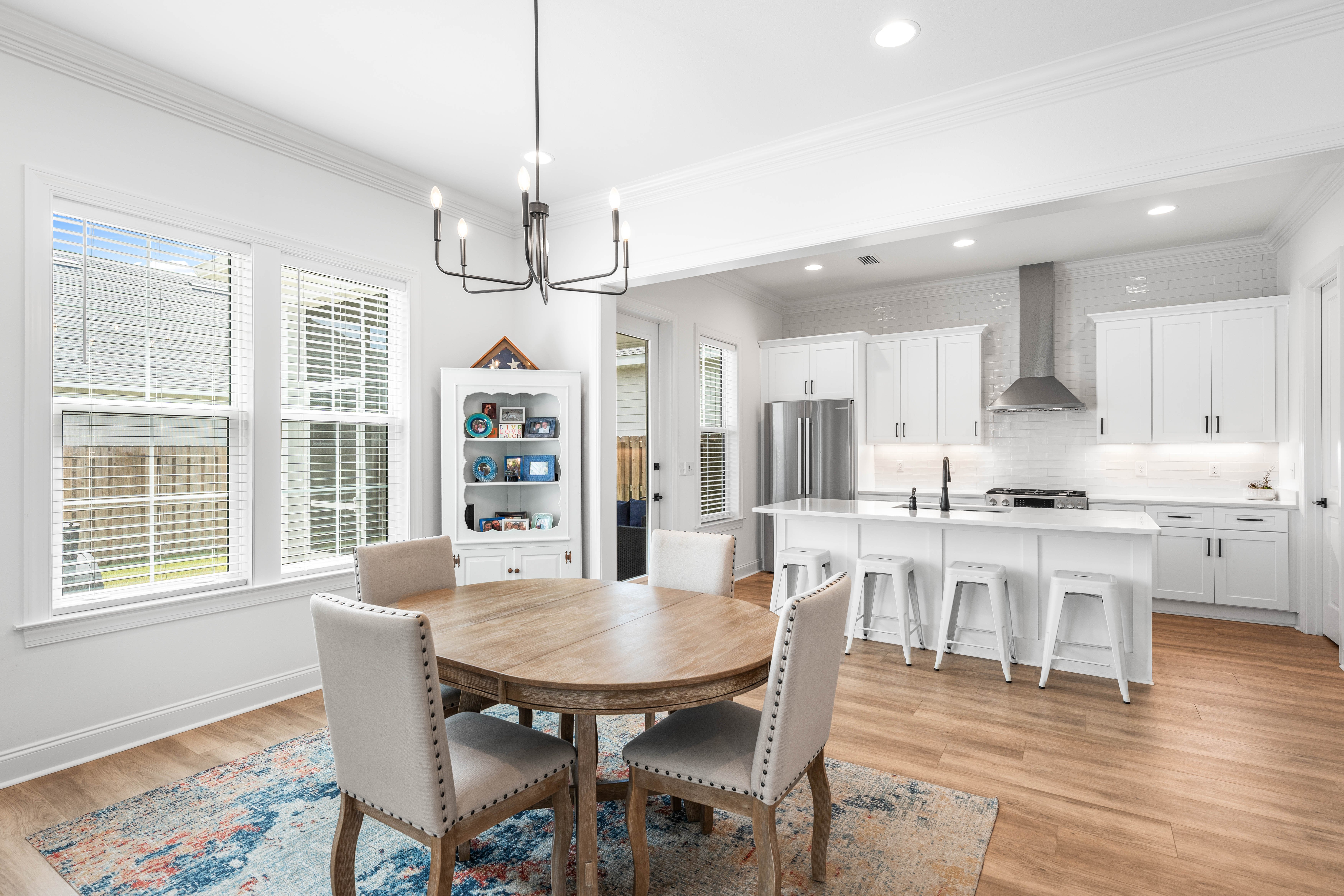 Positioned on a corner homesite, this newly constructed home includes four bedrooms, three full baths and one powder bath in the popular Watersound Origins community. This residence seamlessly blends traditional elements with contemporary features. The thoughtfully designed living space is centered around the custom fireplace and offers a harmonious blend of modern luxury and tranquil charm. The expansive open-concept layout is surrounded in natural light, thanks to ample windows throughout. The interconnected living, dining, and kitchen areas create an inviting space ideal for everyday living. The kitchen is equipped with stainless appliances including a 6-burner range, quartz countertops, and a spacious walk-in pantry. The screened porch is the perfect spot to read a book that overlooks the fenced backyard.The home’s design includes a primary suite on the first floor, featuring its own ensuite bathroom. There is also a powder bath, laundry, and custom-built locker area. Upstairs, there is a versatile flex space, perfect for a home office, media room, or play area. A junior primary suite with ensuite, two guest bedrooms, and a full bath are also on the second floor. Situated on a quiet street, this home provides peaceful living in a desirable area. This like new home perfectly balances elegance and convenience, making it a must-see for those interested in the Watersound Origins neighborhood.Watersound Origins offers residents the perfect blend of natural beauty and modern amenities. Surrounded by towering pines and Lake Powell, the community is only two miles from the vibrant beaches of Scenic Highway 30A. The Village Commons serves as the neighborhood hub, featuring a resort-style pool, fitness center, pickleball and tennis courts, and an event lawn. Residents enjoy access to the highly rated Origins Golf Course, scenic walking and biking trails, Lake Powell, and an upcoming Art Park. Additionally, the Watersound Town Center at the entrance to the community offers dining, shopping, a Publix grocery store, medical facilities, and more.