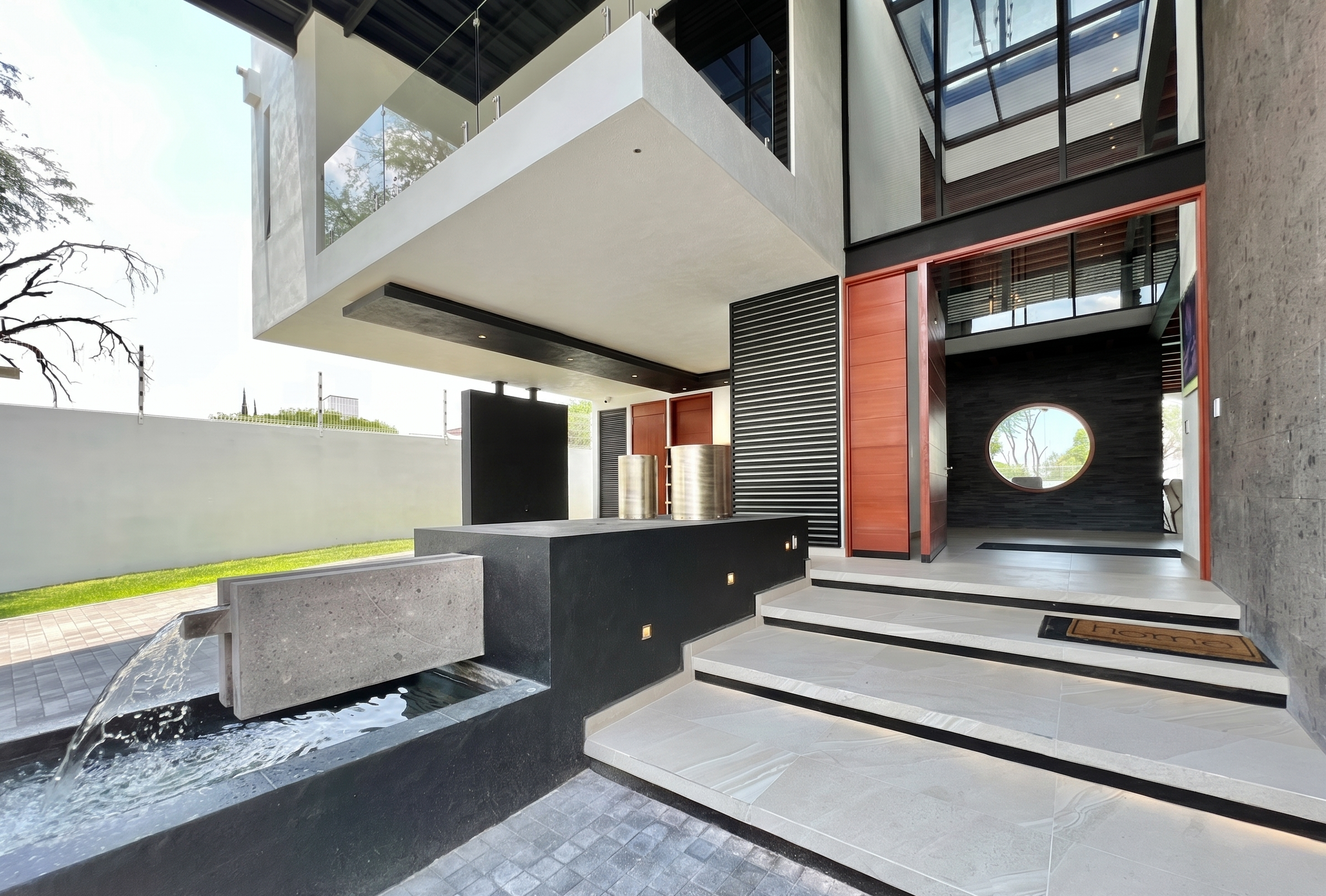The property welcomes you with a monumental facade framed by a modern, minimalist fountain—an artistic detail that harmonizes the surroundings and provides an imposing entrance, projecting a distinguished lifestyle from the very first moment.