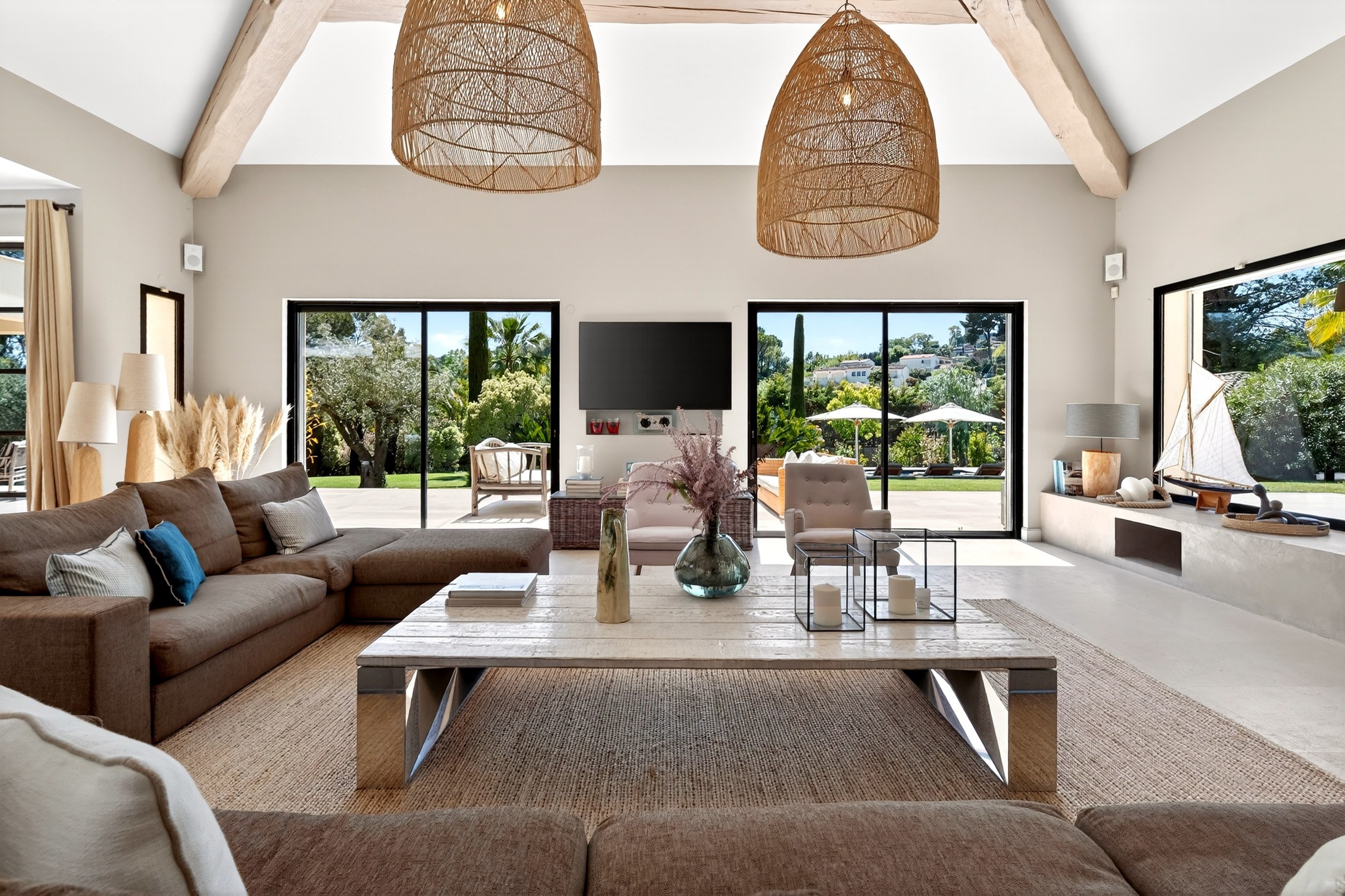 Valbonne luxury property 445 sqm with 6 bedrooms, guest house, pool and landscaped grounds near international schools Located in a highly sought-after residential area near the village of Valbonne, this exceptional property offers approximately 445 sqm of living space, complemented by a 180 sqm basement, set within 4,552 sqm of landscaped grounds with open views over the surrounding hills and Castellaras. The main villa features expansive reception areas of approximately 200 sqm, including a living room and dining area opening onto large terraces and the pool, creating a seamless indoor-outdoor living environment. The fully equipped kitchen extends onto a covered terrace, ideal for outdoor dining. The property offers six bedrooms, including a master suite with dressing room, en suite bathroom and direct access to the terrace, as well as additional bedrooms on the upper level, each benefiting from their own bathroom or shower room and, in some cases, access to a terrace. The lower level provides significant additional space, allowing for the creation of a gym, home cinema, wine cellar or leisure areas, depending on the buyer’s requirements. A pool house of approximately 45 sqm and an independent guest house of approximately 53 sqm, offering two bedrooms and separate access, complete the property, providing ideal accommodation for guests or staff. The landscaped grounds feature a swimming pool and multiple outdoor living areas, within a peaceful and private setting. Ideally located just minutes from Valbonne village, close to international schools such as Mougins School and CIV, and within easy reach of Nice International Airport, this property is perfectly suited as a primary residence or high-end secondary home on the French Riviera. Côte d’Azur Sotheby’s International Realty For further information or to arrange a private viewing, please contact Côte d’Azur Sotheby’s International Realty, your expert in luxury real estate on the French Riviera.