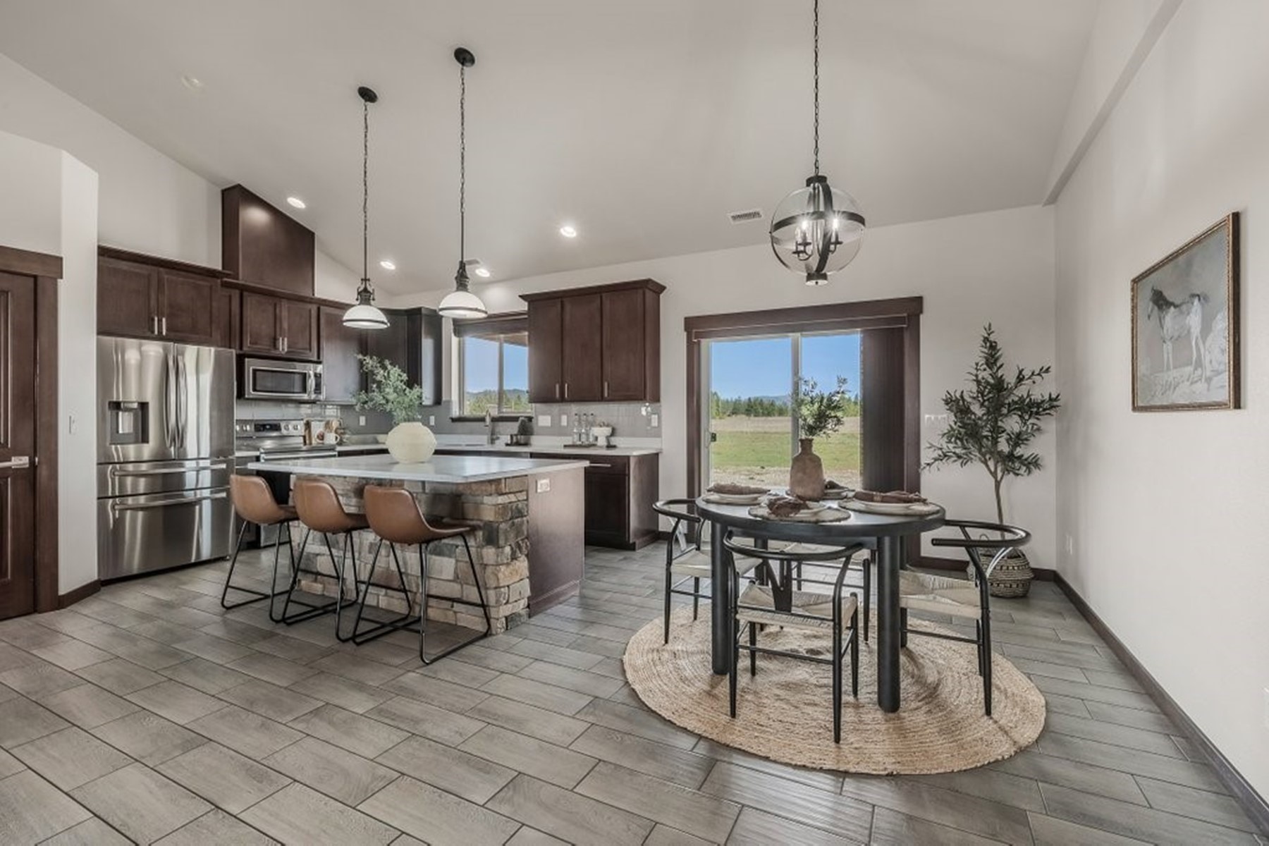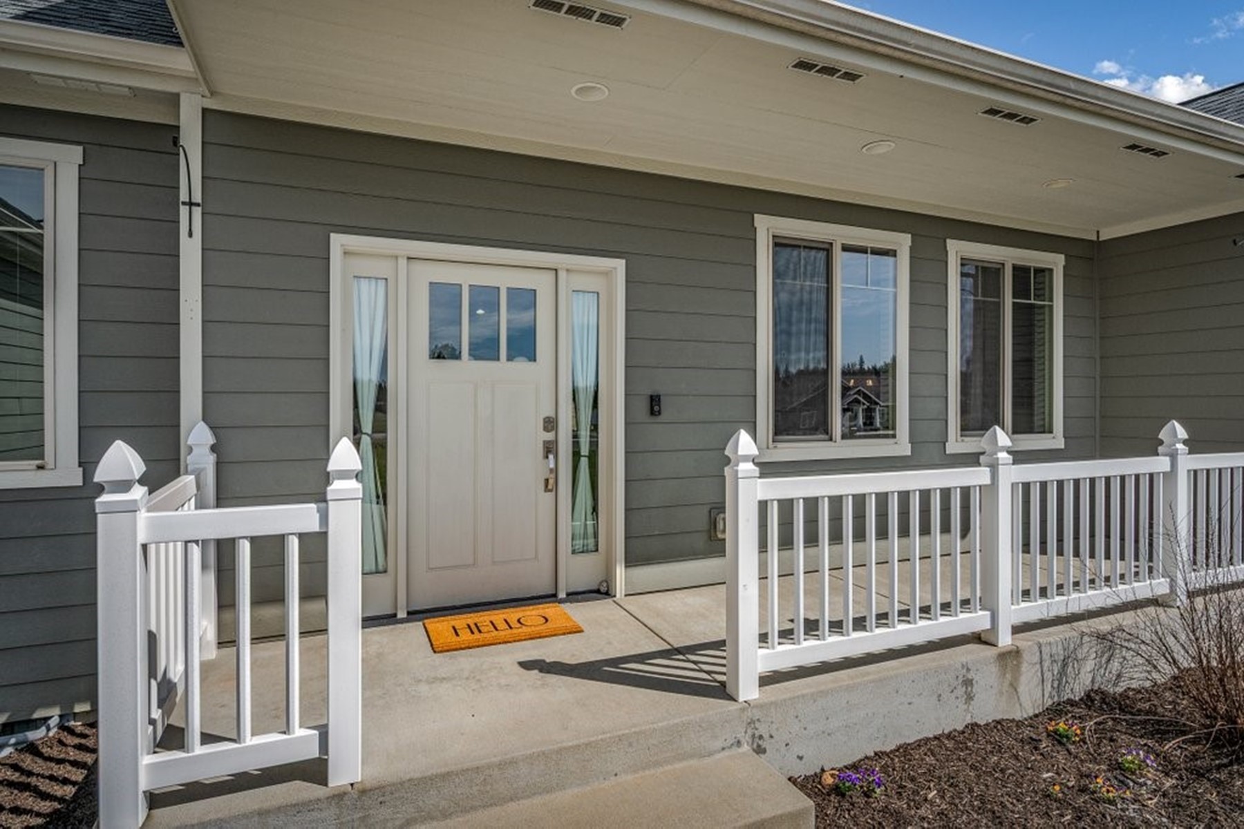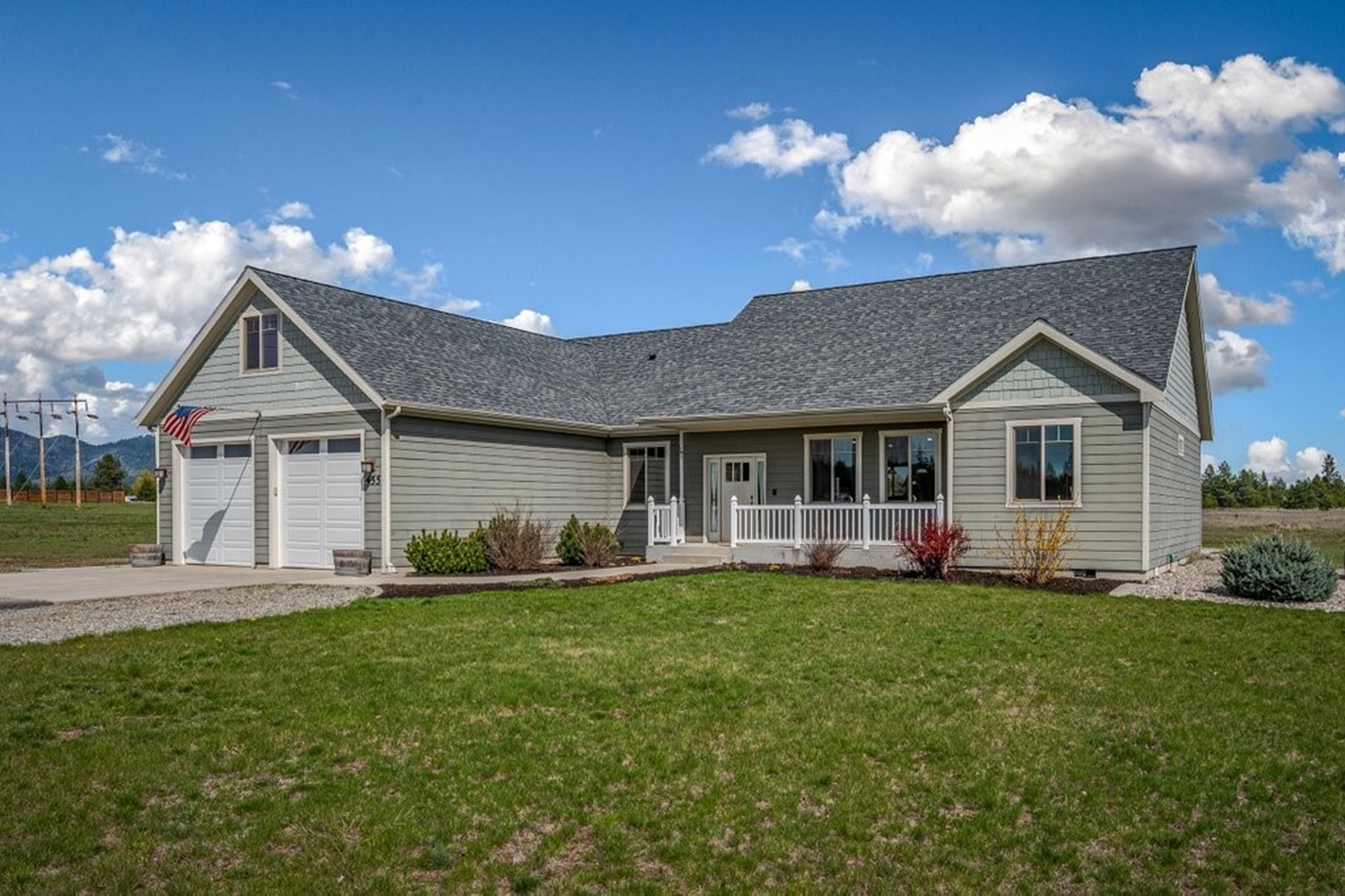 Experience refined North Idaho living in this beautifully designed 3-bed, 2.5-bath home set on just shy of an acre with sweeping views of the Hoo Doo Mountain Range. From the moment you enter, you're welcomed by a grand open layout with vaulted ceilings and an impressive floor-to-ceiling stone fireplace. The kitchen showcases Corian countertops, SS appliances, and soft-close cabinetry, anchored by a stone-accented island that echoes the fireplace's rustic elegance. The open layout extends effortlessly to an oversized covered patio; perfect for entertaining or simply soaking in the serene mountain backdrop. Retreat to a spacious primary suite with a soaking tub, dual vanities, and walk-in closet, while additional bedrooms, a spacious bonus room and a dedicated office provide flexible living space. Complete with an oversized 2-car garage, landscaped grounds, and a peaceful setting just minutes from town, this home offers comfort, style, and convenience in one exceptional package.