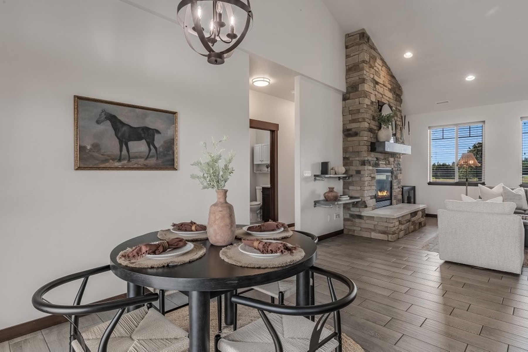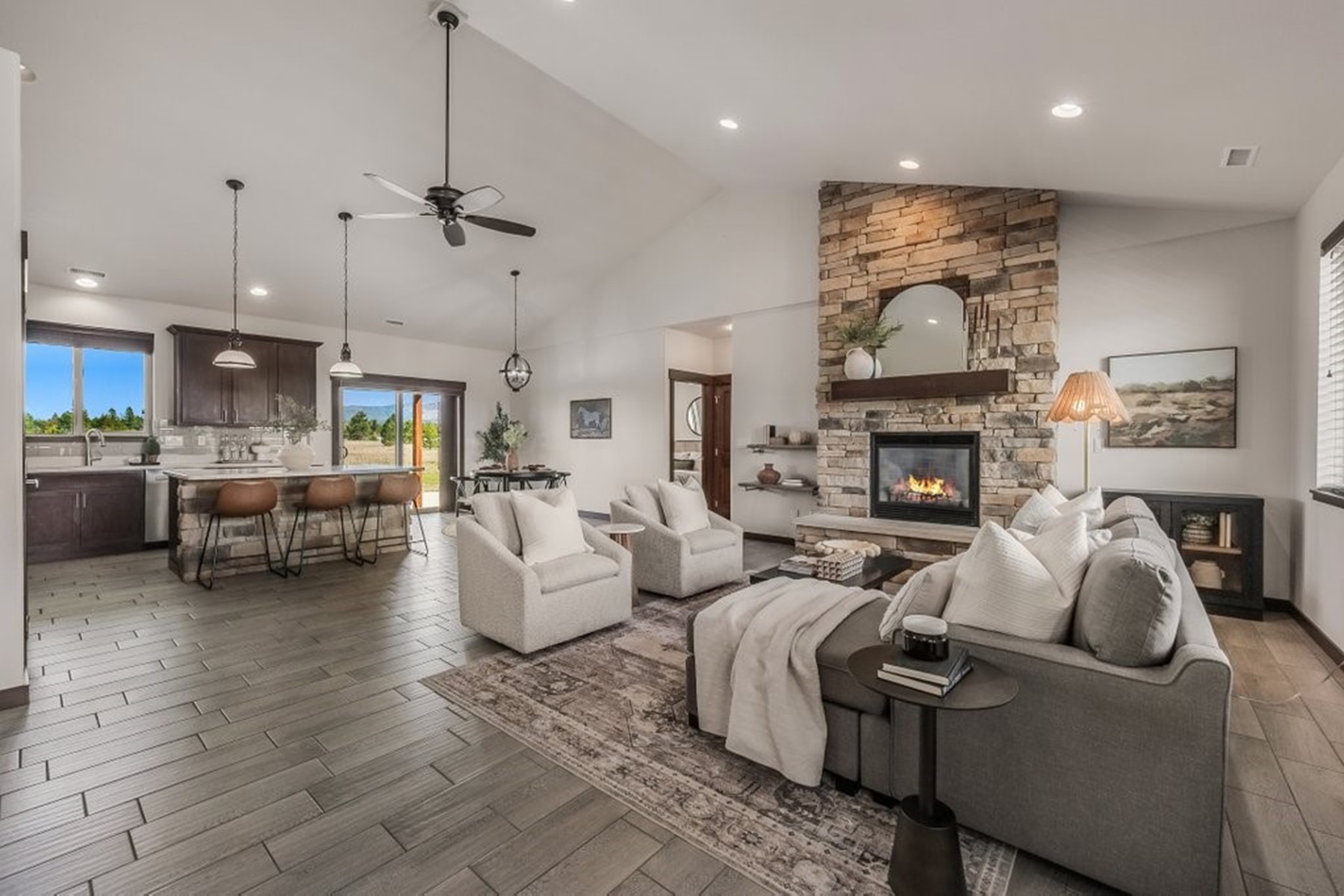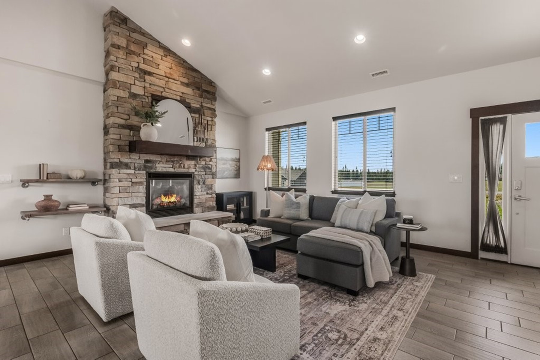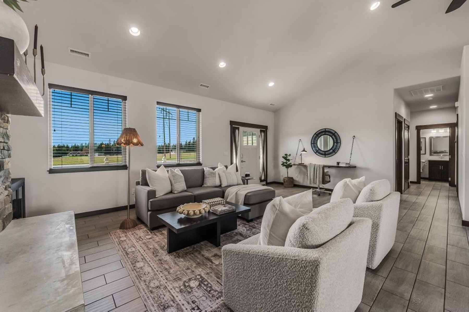 Experience refined North Idaho living in this beautifully designed 3-bed, 2.5-bath home set on just shy of an acre with sweeping views of the Hoo Doo Mountain Range. From the moment you enter, you're welcomed by a grand open layout with vaulted ceilings and an impressive floor-to-ceiling stone fireplace. The kitchen showcases Corian countertops, SS appliances, and soft-close cabinetry, anchored by a stone-accented island that echoes the fireplace's rustic elegance. The open layout extends effortlessly to an oversized covered patio; perfect for entertaining or simply soaking in the serene mountain backdrop. Retreat to a spacious primary suite with a soaking tub, dual vanities, and walk-in closet, while additional bedrooms, a spacious bonus room and a dedicated office provide flexible living space. Complete with an oversized 2-car garage, landscaped grounds, and a peaceful setting just minutes from town, this home offers comfort, style, and convenience in one exceptional package.