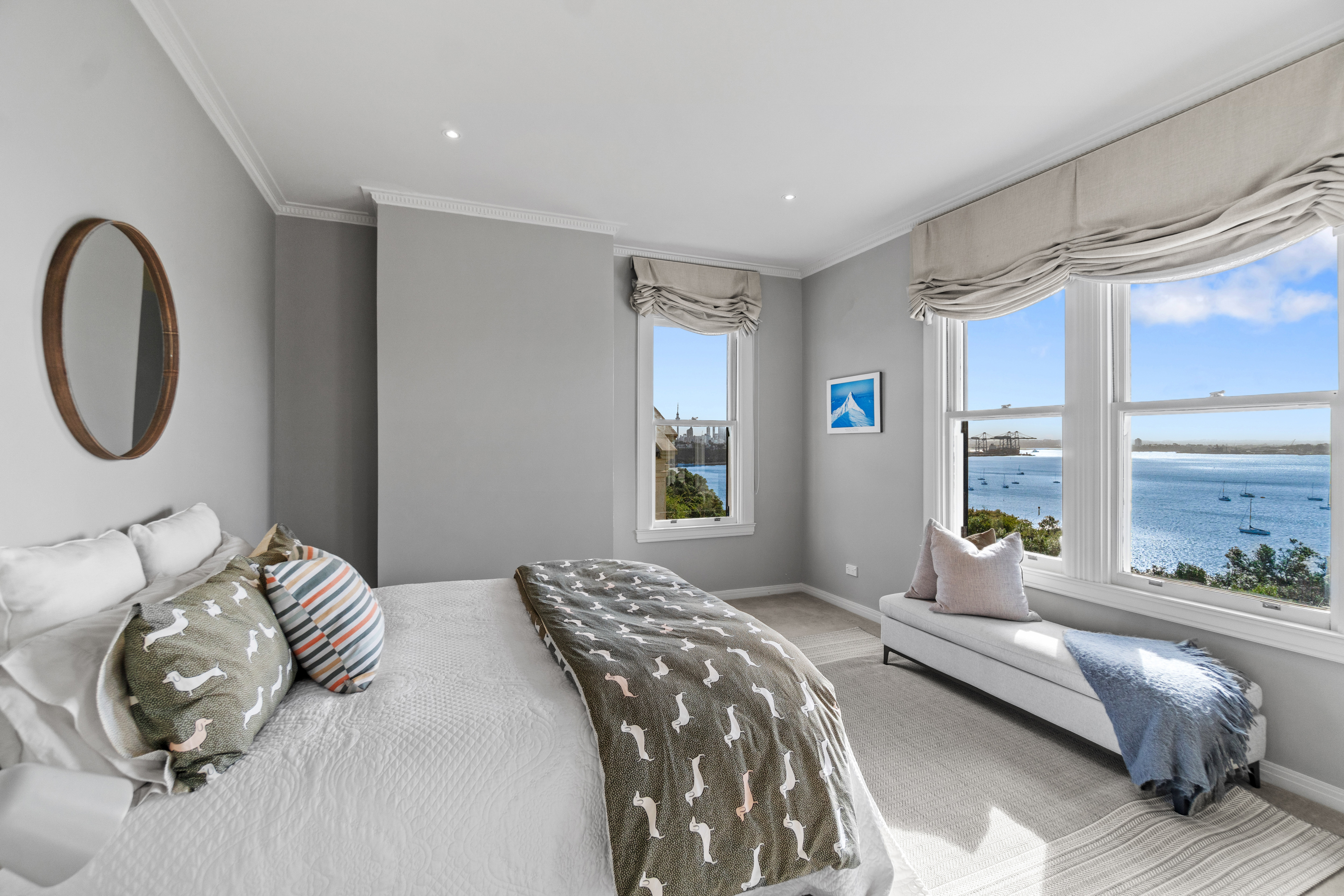 The light-filled kitchen has been updated with modern appliances and there is also a bathroom, laundry and single internal garage on this level. Upstairs, three bedrooms are serviced by the family bathroom, with the master enjoying 180-degree views of the harbour and North Shore.