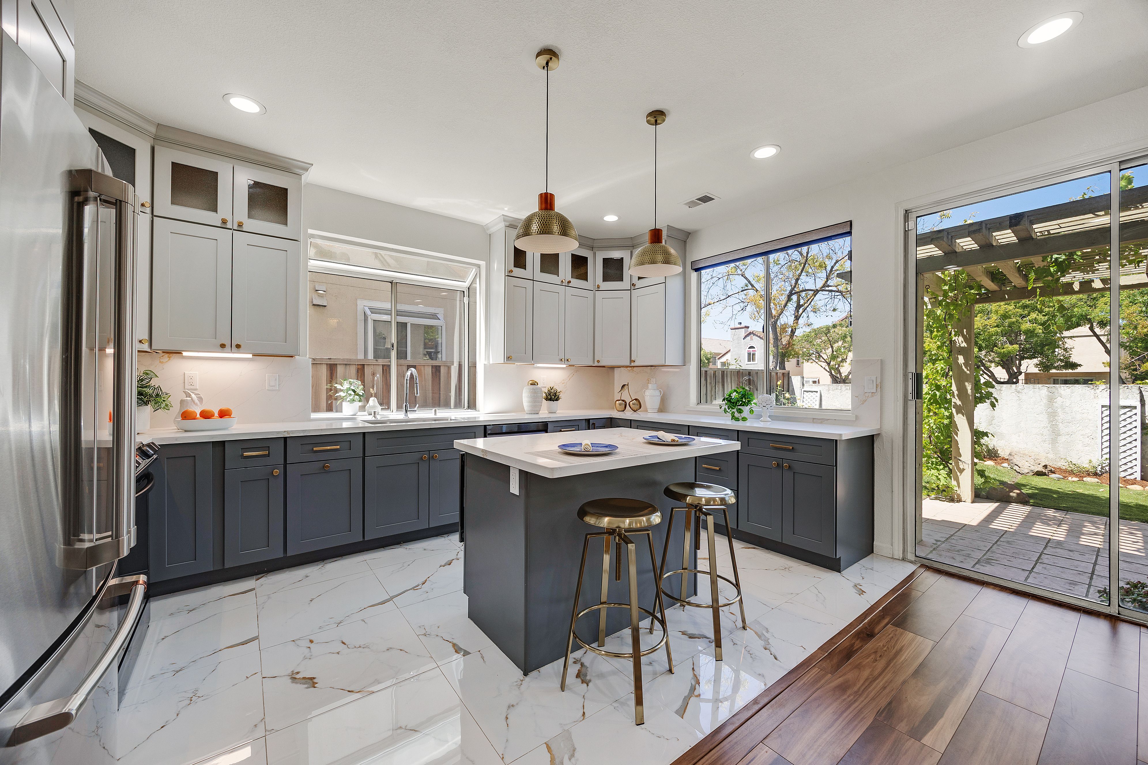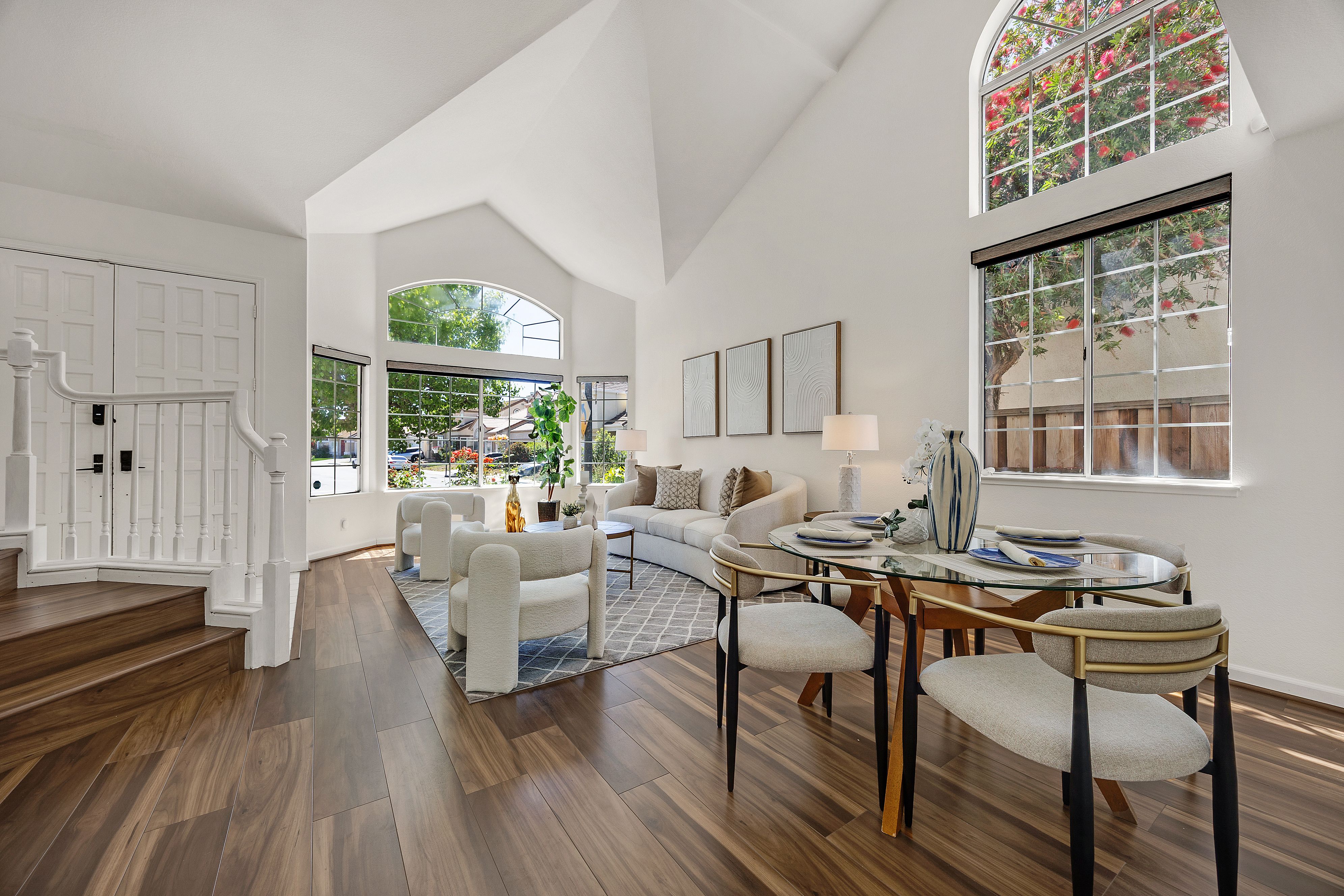 Exquisitely renovated and thoughtfully reimagined, this elegant Milpitas residence blends timeless sophistication with modern comfort in a sought-after neighborhood. Showcasing refined interiors, a light-filled open floor plan, and beautifully curated living spaces, this exceptional home offers an elevated lifestyle designed for both everyday living and effortless entertaining. A dramatic cathedral ceiling entry makes a striking first impression, introducing grand formal living and dining spaces enhanced by soaring ceilings and expansive windows. The airy layout creates a seamless flow while balancing sophistication and warmth. At the heart of the home, the newly renovated gourmet kitchen is a true showpiece, featuring stainless steel appliances, abundant cabinetry, generous prep space, designer backsplash, and a sunlit casual dining area. The kitchen opens seamlessly to the inviting family room, centered around a cozy fireplace, creating the perfect setting for relaxed evenings and memorable gatherings. A highly desirable main-level bedroom with direct access to a full bathroom offers exceptional flexibility for guests, multigenerational living, or a private office. Upstairs, a spacious landing with built-in cabinetry adds both architectural interest and practical storage. Two generously sized secondary bedrooms are filled with natural light, while the luxurious primary suite serves as a serene retreat with a walk-in closet and spa-inspired ensuite bathroom featuring dual vanities and a soaking tub. The outdoor setting extends the home’s appeal with a beautifully designed backyard retreat featuring a paved patio beneath a charming pergola, ideal for alfresco dining and entertaining. Mature fruit trees and established landscaping create a private, tranquil garden setting. Extensive renovations and thoughtful upgrades throughout enhance the home with modern finishes and turnkey appeal. Every detail reflects quality, comfort, and style. Ideally located near top-rated schools, parks, shopping, dining, and major commute routes, this exceptional residence offers the perfect blend of luxury, functionality, and convenience. A rare opportunity to own a beautifully updated home where elegant design, versatile living, and an outstanding Milpitas location come together.