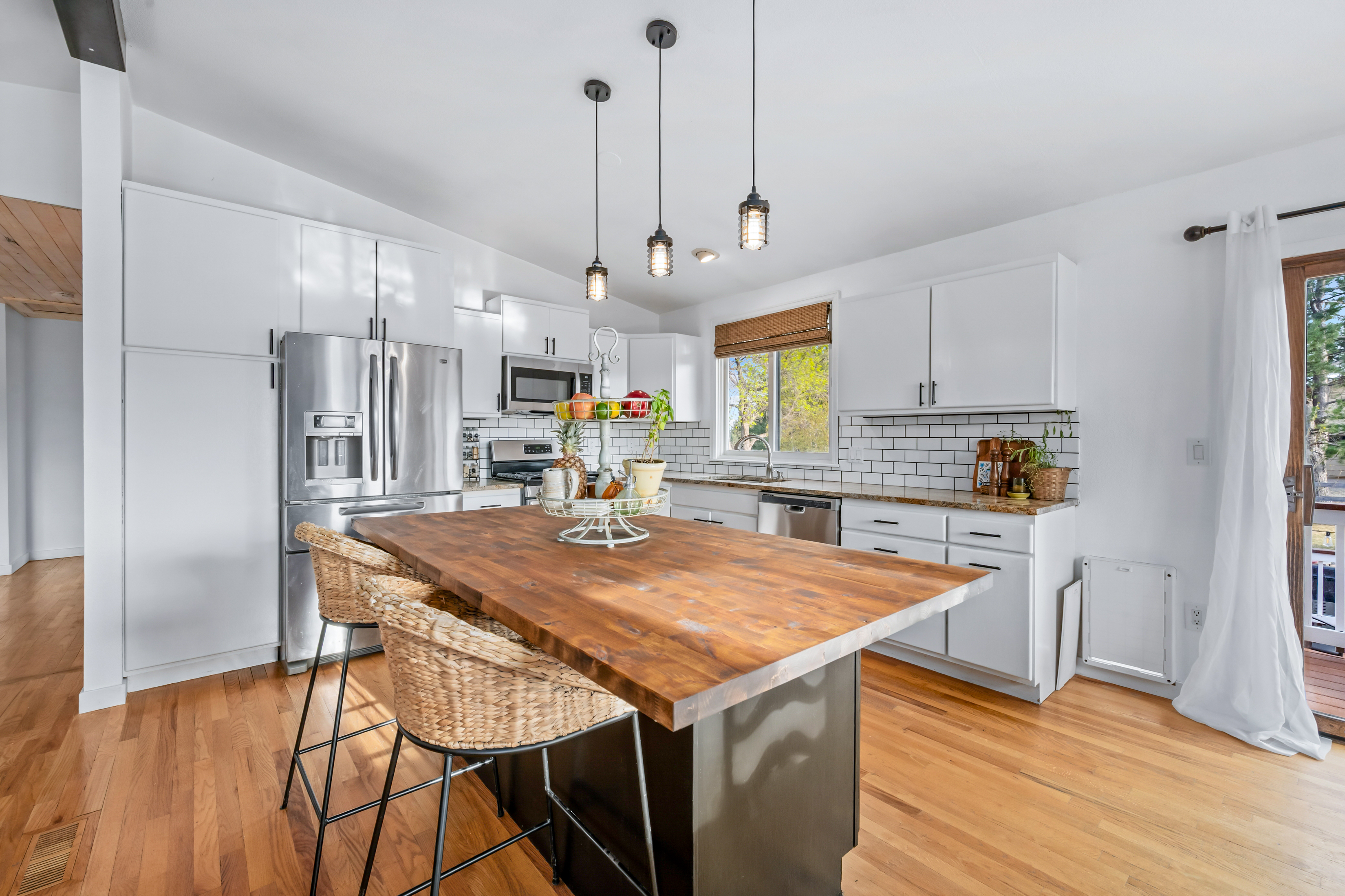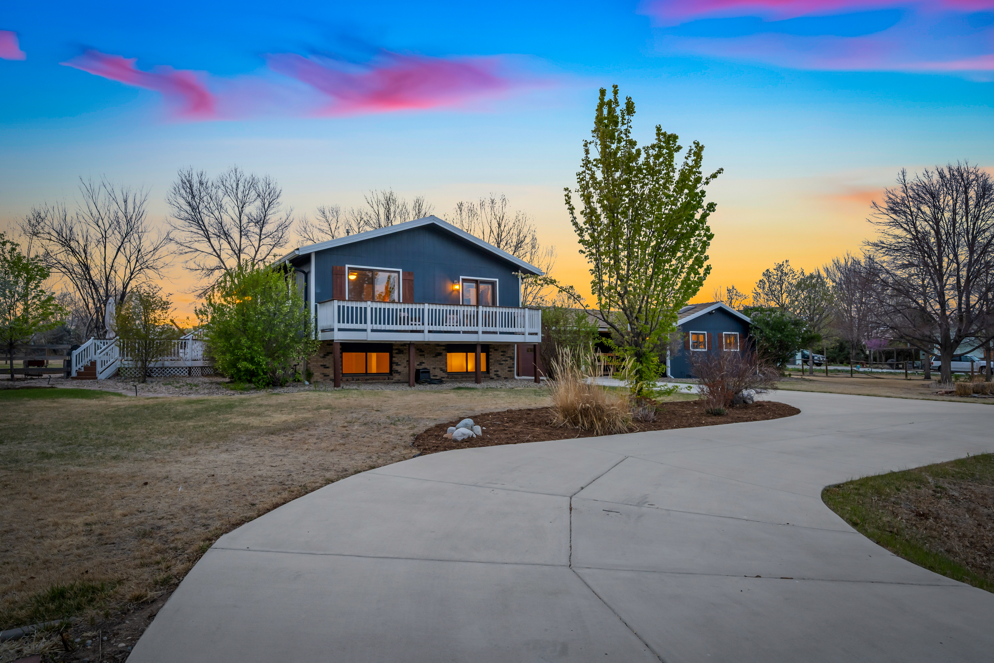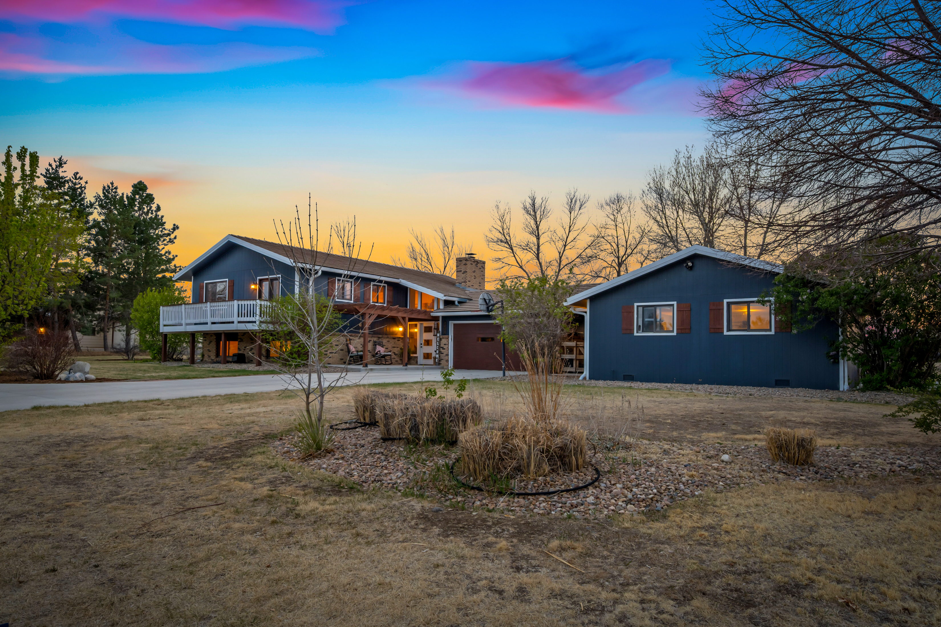 Welcome to this beautifully updated bi-level home on 1.62 acres, offering space, flexibility, and modern upgrades-all with no metro district. Ideally located just 6 miles from TPC Colorado, 4 miles to downtown Berthoud, 7 miles to downtown Longmont, and 10 miles to downtown Loveland, this home provides the perfect balance of privacy and convenience. Inside, you'll find a freshly painted interior, including updated kitchen cabinets and island, complemented by a new butcher block kitchen island that adds warmth and functionality. The home features an updated primary bathroom and a spacious primary suite with a full walk-in closet that leads directly to a private walk-out deck-perfect for enjoying quiet mornings or Colorado sunsets. The versatile bi-level layout offers multiple living areas, including a spacious lower-level living room/recreation space that includes a wood burning fireplace with abundant natural light-ideal for entertaining, working from home, or relaxing. Additional updates include a new entry door, enhancing both curb appeal and efficiency. A standout feature of the property is the 784 square foot bunk house, complete with its own full bathroom, dedicated living space, closet, and sliding doors leading outside-ideal for guests, multi-generational living, or potential rental use. Step outside to enjoy your expansive acreage, complete with a new exterior putting green, perfect for golf enthusiasts or outdoor entertaining. With plenty of room for gardening, the exterior space features raised garden beds with water for irrigation supplied by Ish Reservoir, space for recreation, or future customization, this property delivers the Colorado lifestyle buyers are searching for. With its acreage, updates, no metro district, and prime location near golf, dining, and amenities, this is a rare opportunity in Northern Colorado.The HOA does allow specific amounts of animals including horses, chickens and mules.