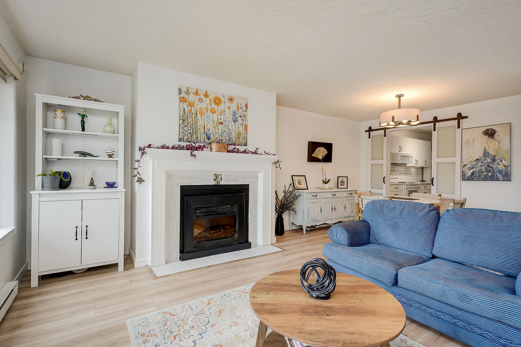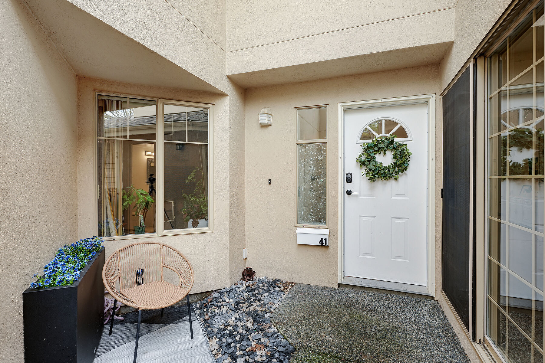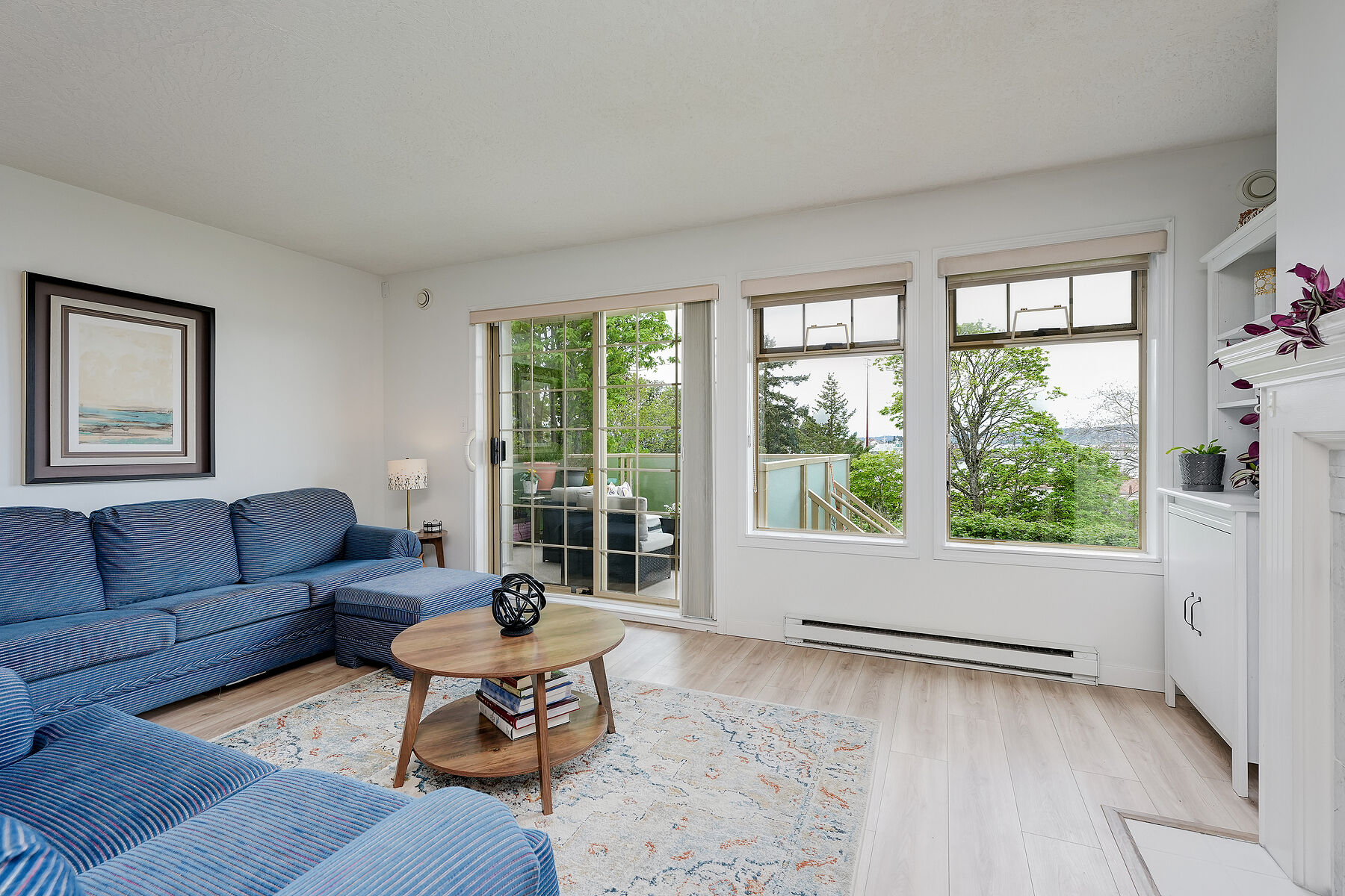 A superbly located one level ocean view townhouse is on offer in one of Esquimalt's finest developments. A low density complex with room to roam! A bright and spacious two bedroom and two bathroom with 1357' of elegant living space. Enjoy stunning ocean and Olympic Mountain views from this centre ice location. This well-maintained, pet-friendly home features contemporary laminate floors, upgraded kitchen and lighting. The chefs kitchen is equipped with ample storage and nook, the living and dining area boasts a step out south terrace with lawn access, and a cozy fireplace. The primary suite serves as a true retreat with a giant walk-in closet, a generous ensuite and additional deck access. Complete with an attached garage plus driveway stall, additional storage locker, and a friendly community clubhouse. This home offers direct access to the E&N Trail and is just minutes from golf, shopping, and downtown Victoria. An over height crawlspace offers an amazing storage capacity.