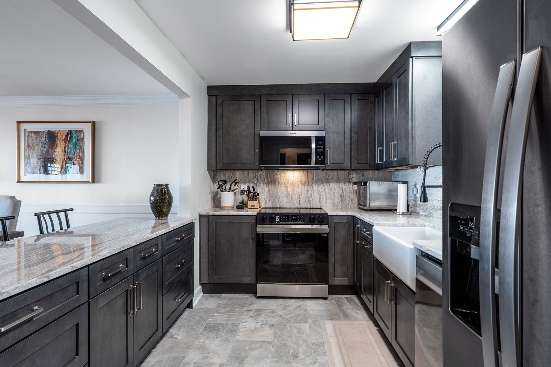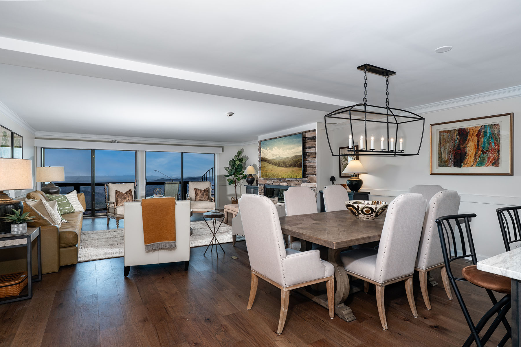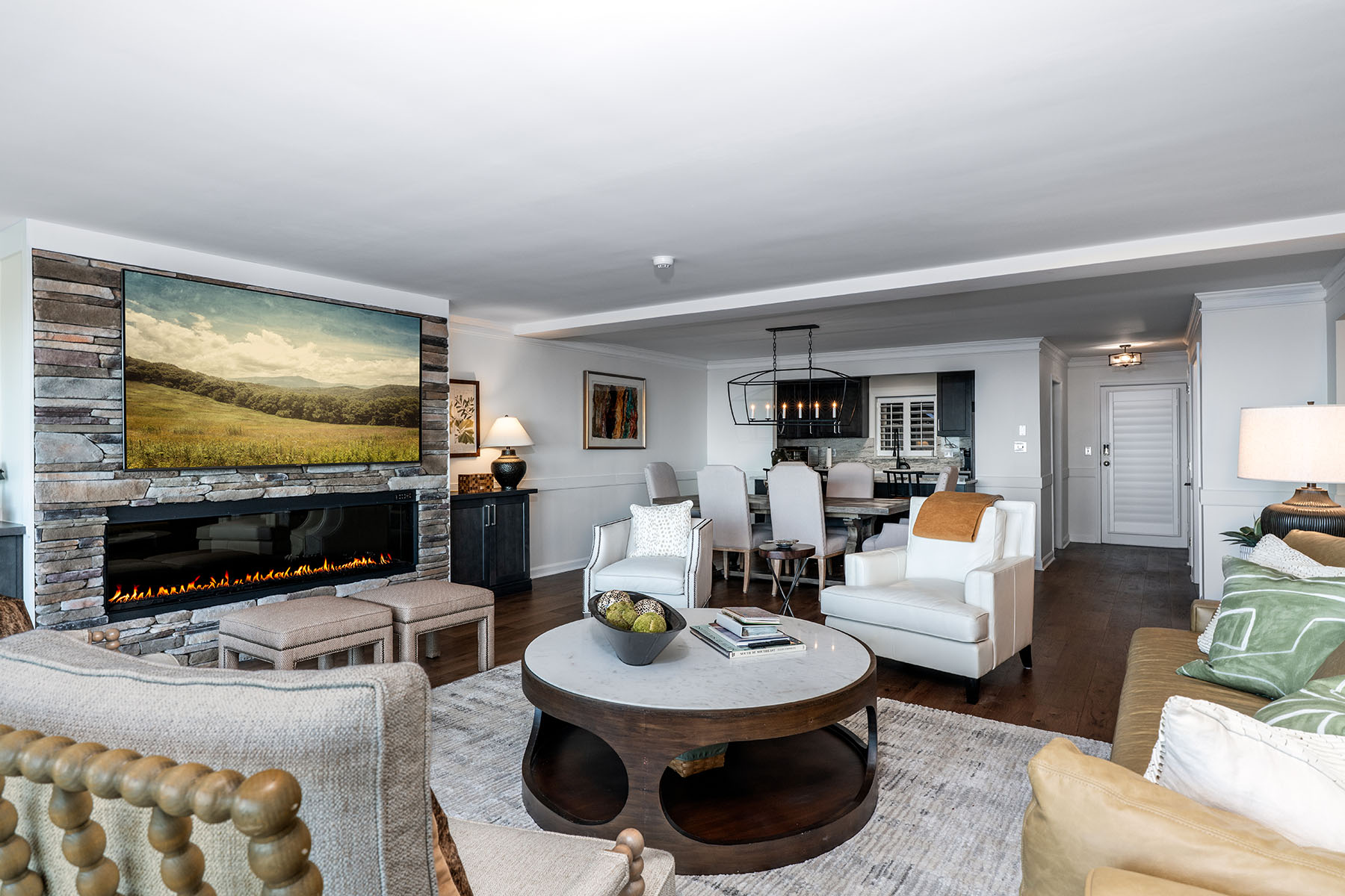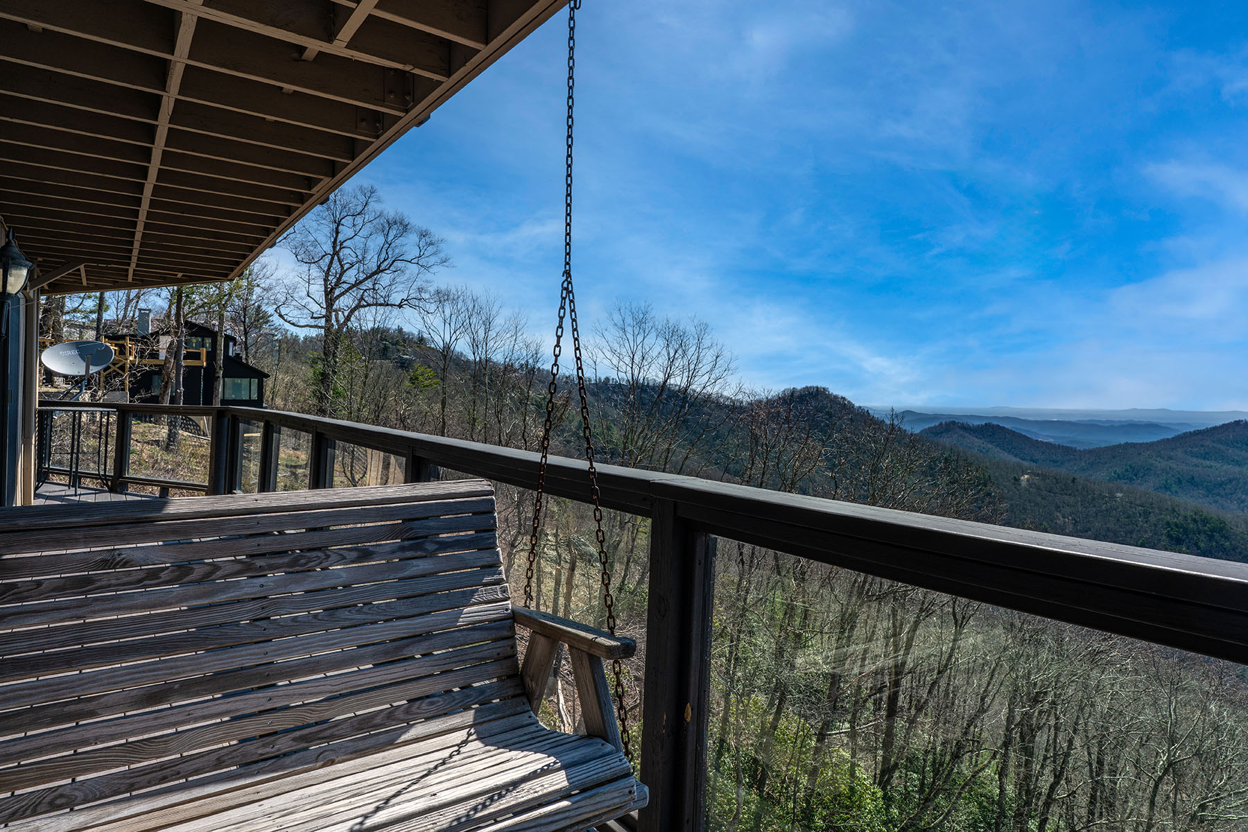 JUST REDUCED!!! BEST VIEW IN BLOWING ROCK-JUST BLOCKs FROM THE HEART OF THE VILLAGE. Be eyeball-to-eyeball with hawks and hummingbirds through the glass wall of your great room, while viewing 150-mile vistas of the Blue Ridge and Pisgah National Forest beyond. On a historic landmark site, you will be uplifted by the ever-changing scenery. Imagine being on your deck above the tree line amongst the clouds? This light-filled three-bedroom, 3 ½-bath condominium has been beautifully updated with all new wooden floors, carpet, kitchen and bath cabinets, granite counters, plantation shutters, appliances, ready to begin living. Entering the foyer, you can see through the great room's glass wall to the mountains beyond. You pass the galley kitchen on your right and the stone-walled bar to your left, you are awed by the luxurious space. There is a new stone contemporary electric fireplace with a giant flat screen TV above. A handsome leather sofa forms the sitting area with twin leather and twin fabric chairs making a great conversation area. At opposite end is a dining area that is adjacent to a granite-topped bar with stools facing the kitchen. Lots of areas for entertaining. The new wooden floors of the great room run down the hall to the primary bedroom on the right. That room has a window wall where you can lie in bed and enjoy the changing views. There is a small electric fireplace for chilly times and a cozy sitting area. A dressing room with double sink and walk-in closet adjoins a bath with tub/shower. A second walk-in closet has a washer and dryer. Across the hall is another bedroom with twin queen beds and a large flat-screen TV and large closet. It opens into a bath with new sink and toilet. Separated by a sliding door is a tile shower. That opens into another half bath. A third guest bedroom is down the hall which has luxuriously upholstered headboards for the queen and twin beds. There is a sitting area. Plantation shutters cover windows. Furnished, exception list attached. Living up close to nature with panoramic views is breathtaking!