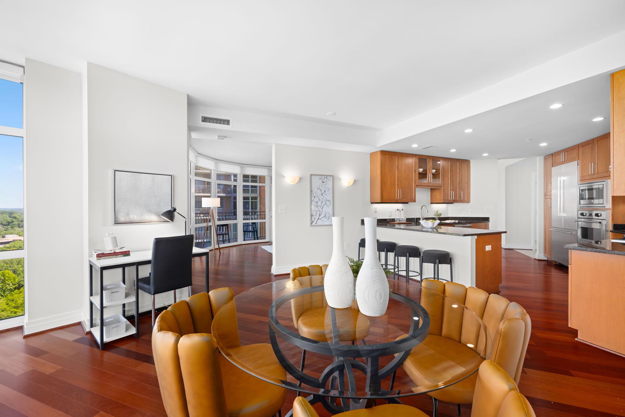 Residents of One Park Crest enjoy a full suite of luxury amenities, including a 24-hour concierge, fitness center, outdoor pool, club room, guest suites, and landscaped terrace. The building is ideally located near Tysons Galleria, fine dining, and Metro access.
