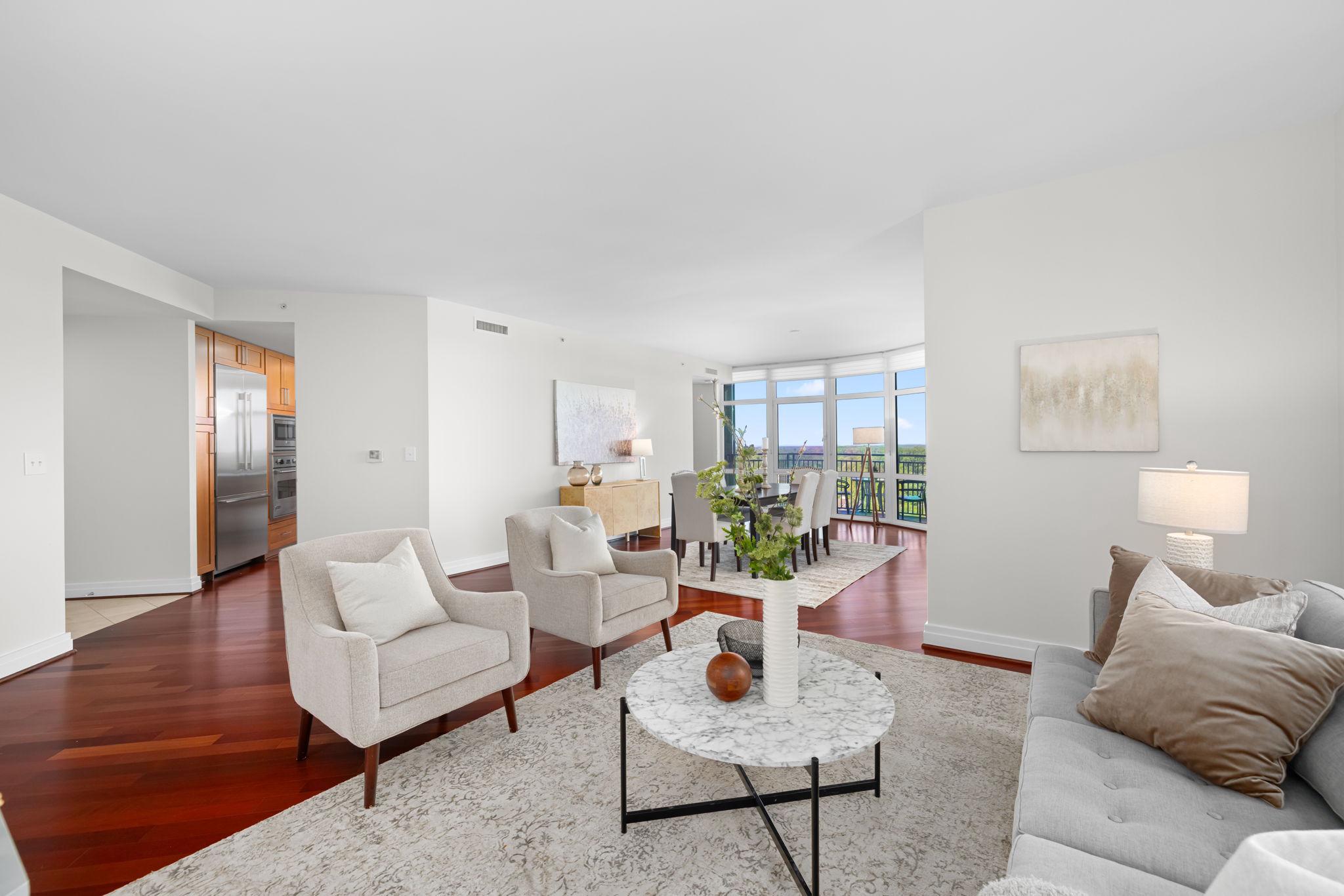 Discover elevated living in this beautifully appointed 2-bedroom, 2.5-bath condo at One Park Crest in the heart of Tysons. This spacious residence features an open-concept layout with floor-to-ceiling windows, filling the home with natural light and offering serene views from the private balcony. The open floor plan flows seamlessly from the elegant living room to formal dining room. The gourmet kitchen is equipped with high-end appliances, sleek cabinetry, and ample counter space including a breakfast bar. Each bedroom offers en-suite privacy, while the additional half bath adds convenience for guests. This unit conveys with two dedicated parking spaces and a secure storage unit, providing exceptional value and ease in one of Northern Virginia’s most sought-after communities.