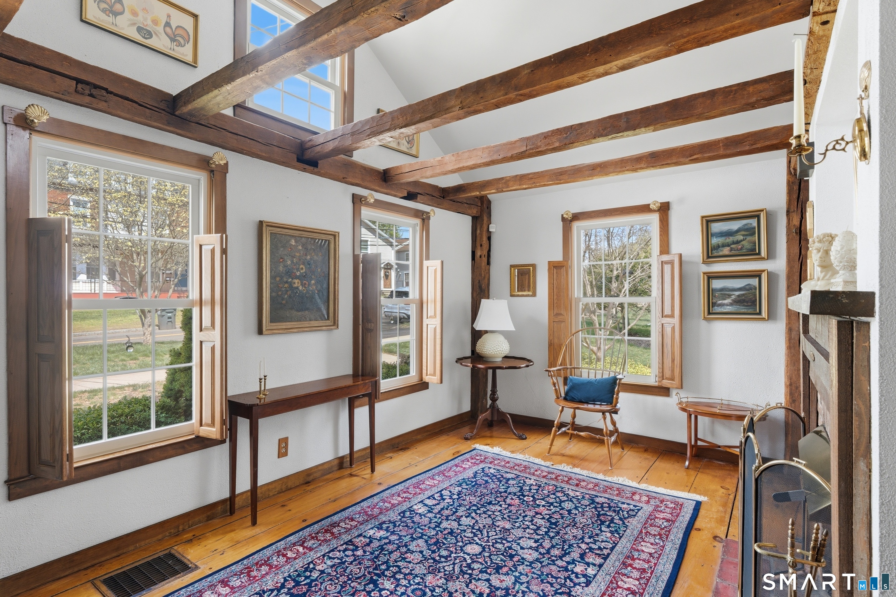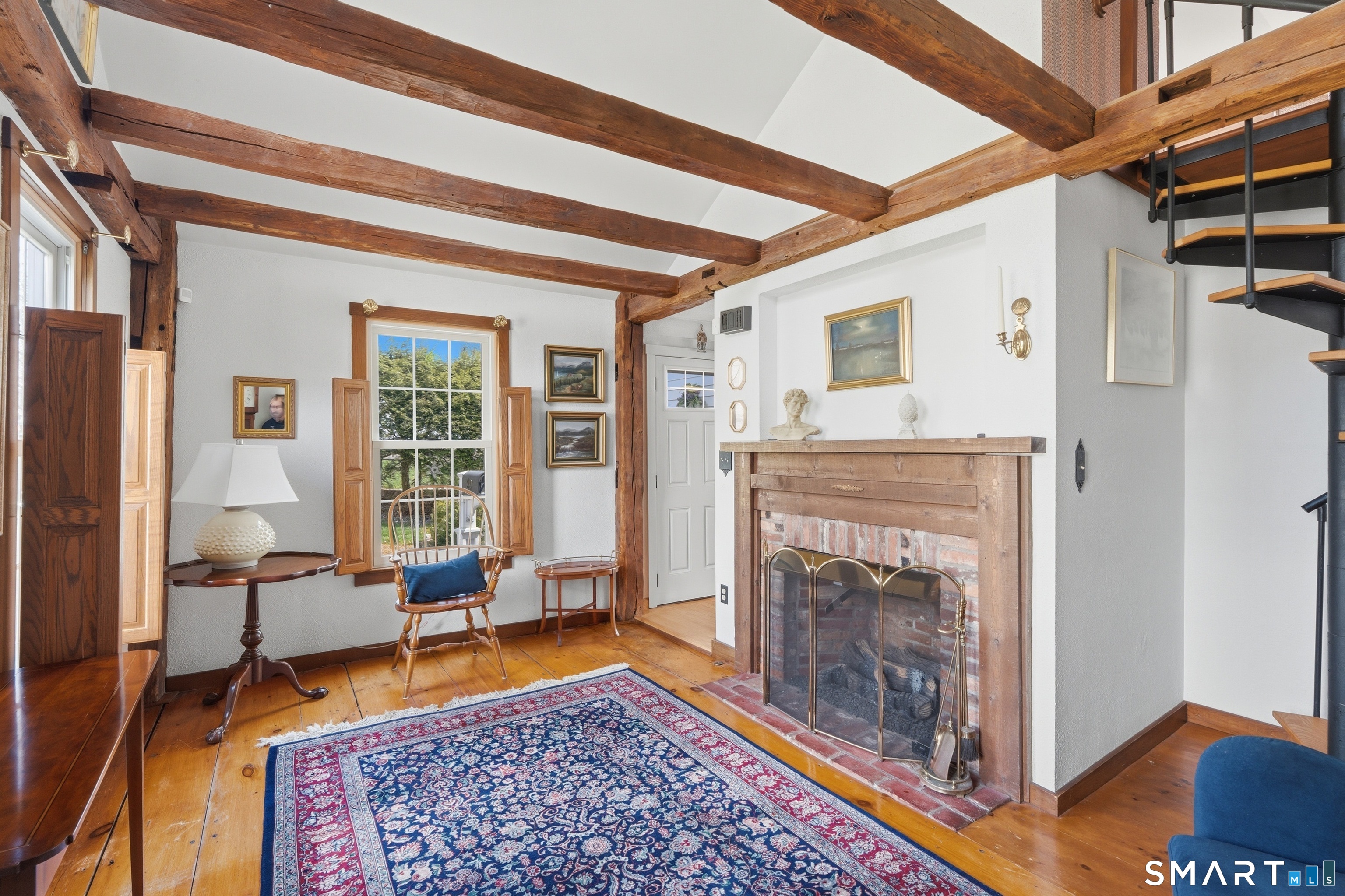 Adorable "hidden gem" nestled in the Historic section of Middletown! This charming 2-bedroom Cape with a versatile loft offers convenient, easy one-floor living in a character-filled historic home. Enjoy beautiful exposed beams and a cozy double-sided gas fireplace that adds warmth and charm to multiple living spaces. The home features hardwood floors throughout the main living areas and a spacious primary bedroom with carpeting for added comfort. Step outside to a lovely, private fenced backyard complete with a deck-perfect for relaxing or entertaining. Ideally located within walking distance to Middlesex Hospital, Wesleyan University, local restaurants, and shopping, this home offers both charm and convenience in one perfect package.