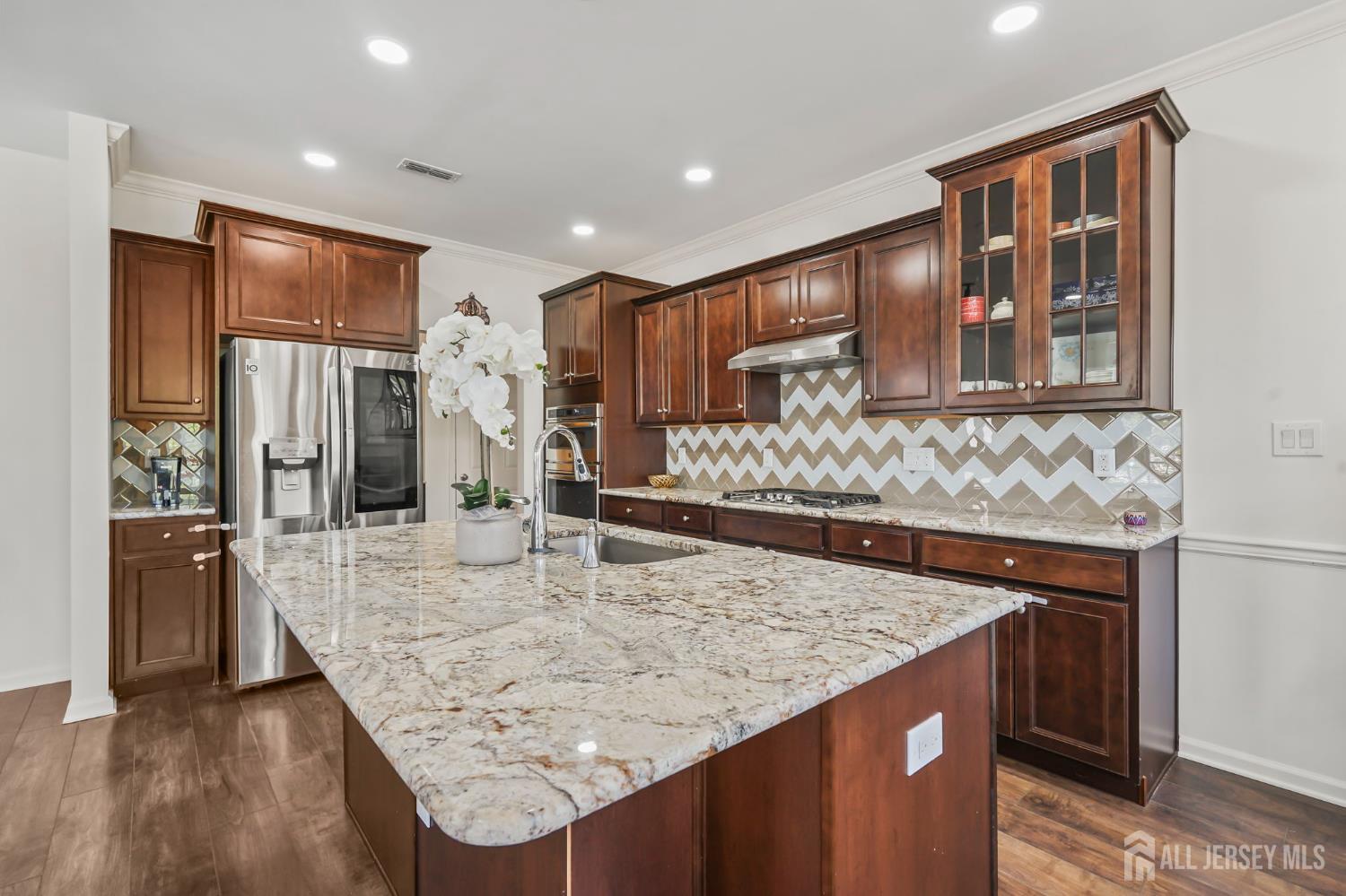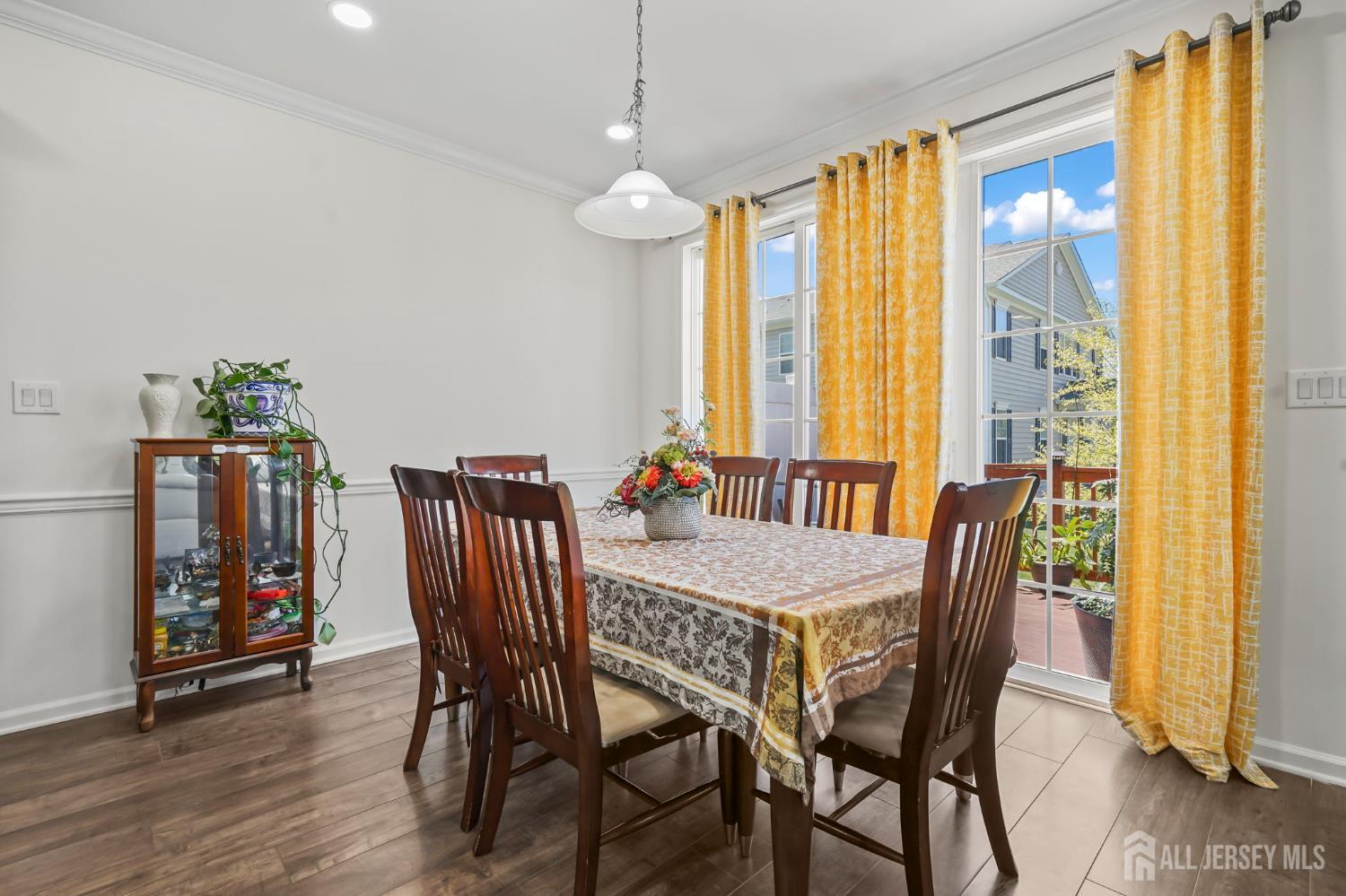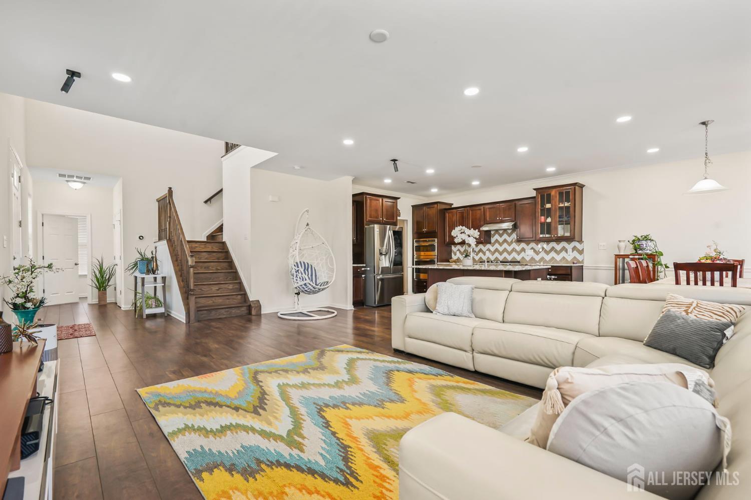 Welcome to the super desirable Arbors community of luxury townhomes located in Monroe Township. This bright and airy 3-bedroom, 3.5-bath end unit townhome features a grand open floor plan with a gourmet kitchen equipped with granite countertops, upgraded cabinets, premium stainless steel appliances, and a spacious island, plus generous living and dining areas. The living room also includes a full Bose surround sound system. Wood floors cover the main level, and sliding doors from the dining room lead to a custom deck for relaxing on those warm sunny days. The second floor has a large main bedroom with a walk-in closet and a custom bathroom with a whirlpool tub and a separate shower along with double sinks. In addition, there are two extra bedrooms for guests or family, another full bathroom offers double sinks with a tub/shower and a bonus den provides space for TV or reading. The finished basement features a 3rd full bathroom and built-in speakers, great for hosting guests or movie nights. The two-car garage has an electric car charger. Community perks feature a clubhouse, pool, fitness center, top schools, a direct NYC bus stop, and quick access to Rt 33, restaurants, and shopping.