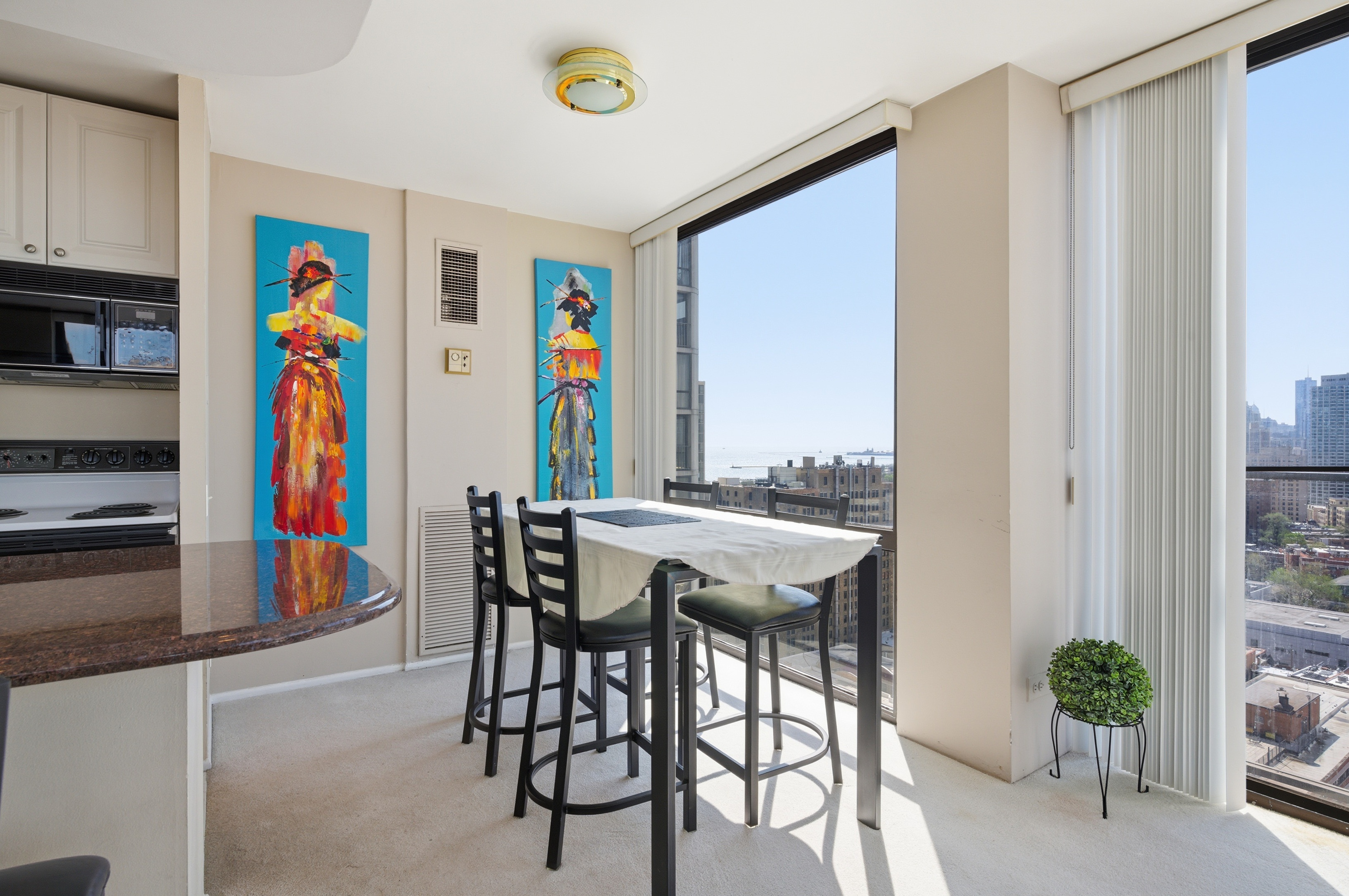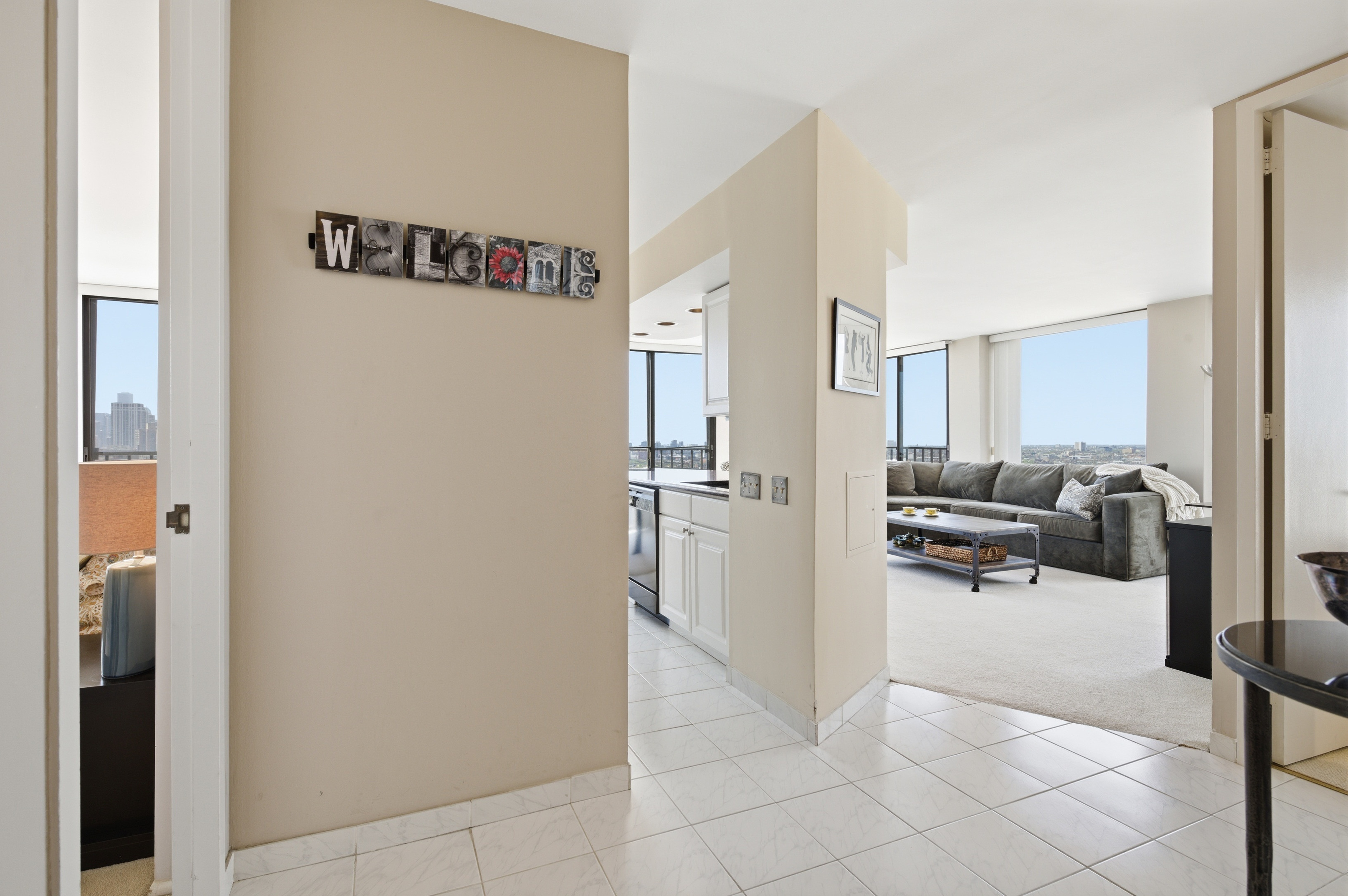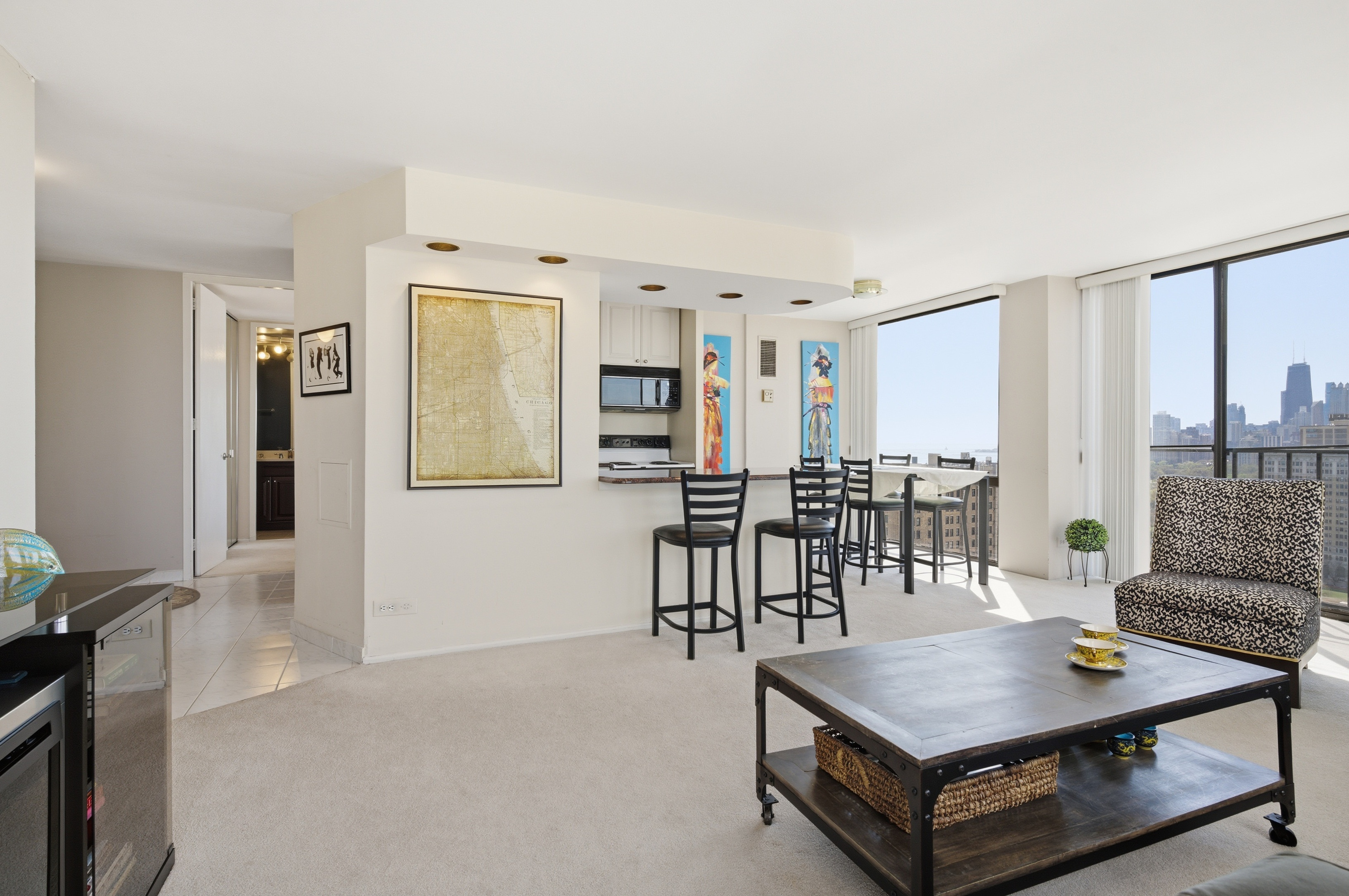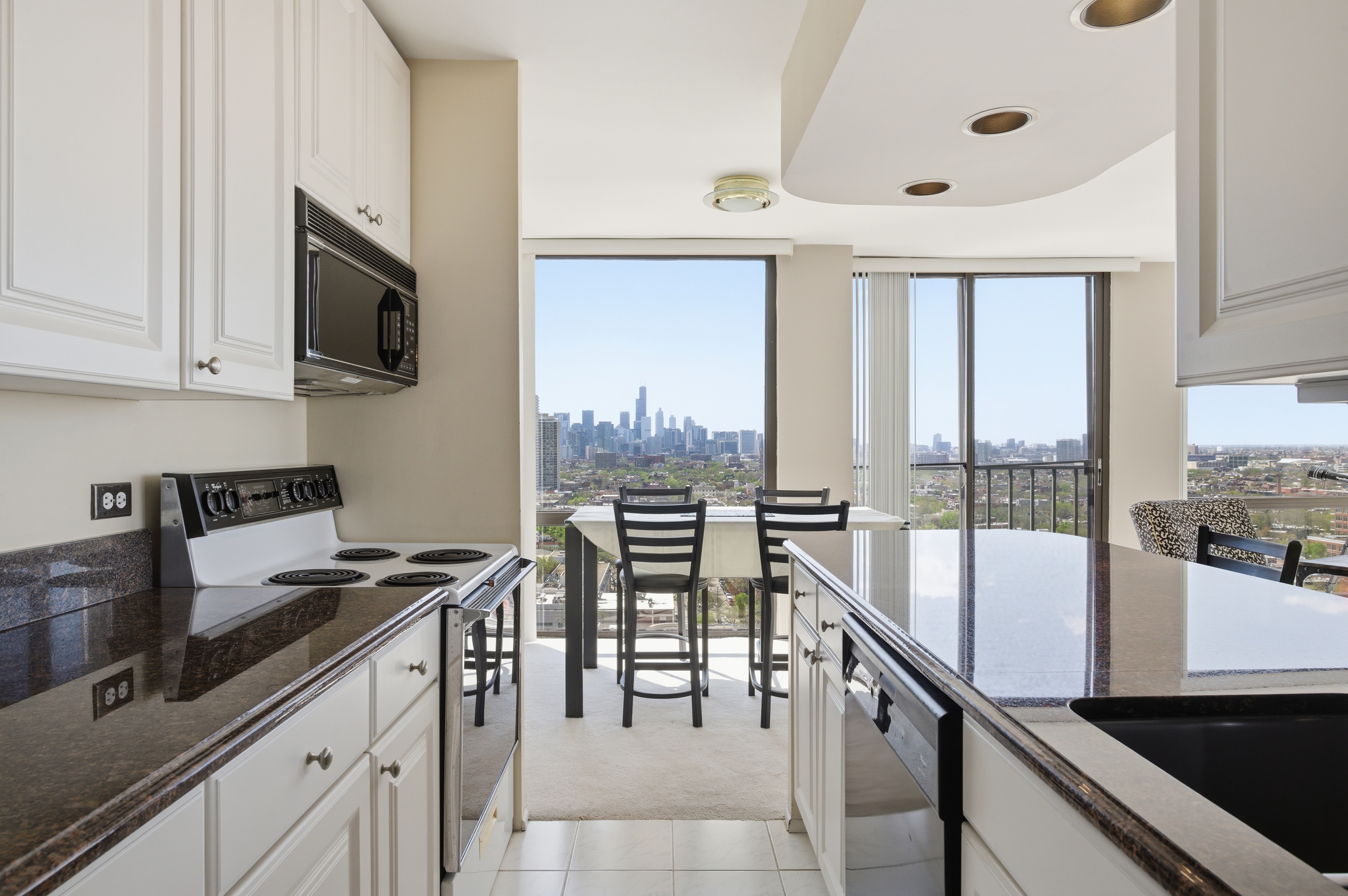 Take in sweeping southwest-facing views of the Chicago skyline and the lake from this sun-drenched 2-bedroom, 2-bath corner home high above the city. Wrapped in floor-to-ceiling windows, the main living space feels bright, open, and connected to the incredible scenery beyond, offering a front-row seat to both vibrant city lights and peaceful daytime views. The thoughtfully designed split-bedroom layout offers both privacy and functionality, while the open-concept living and dining area provides the perfect space for entertaining or simply relaxing above it all. The kitchen features a breakfast bar and opens seamlessly into the main living space, allowing the views to remain front and center. This is a wonderful opportunity to move right in and enjoy the home as-is, or bring your own vision and make it your own over time. The spacious king-sized primary bedroom offers more spectacular views along with the convenience of a walk-in closet and en suite bath. The second bedroom is well-sized and positioned for privacy, while the guest bath offers direct access from both the bedroom and main living area, making it ideal for guests and everyday ease. Located in a highly desired, professionally managed building, residents enjoy 24-hour door staff, a fitness center, and a sundeck. Garage parking is available with valet or self-park options. Set directly across from Lincoln Park, you are just steps from the zoo, lakefront trails, and vibrant Clark Street with endless dining, shopping, and entertainment. Easy access to Lake Shore Drive and public transit makes commuting a breeze.