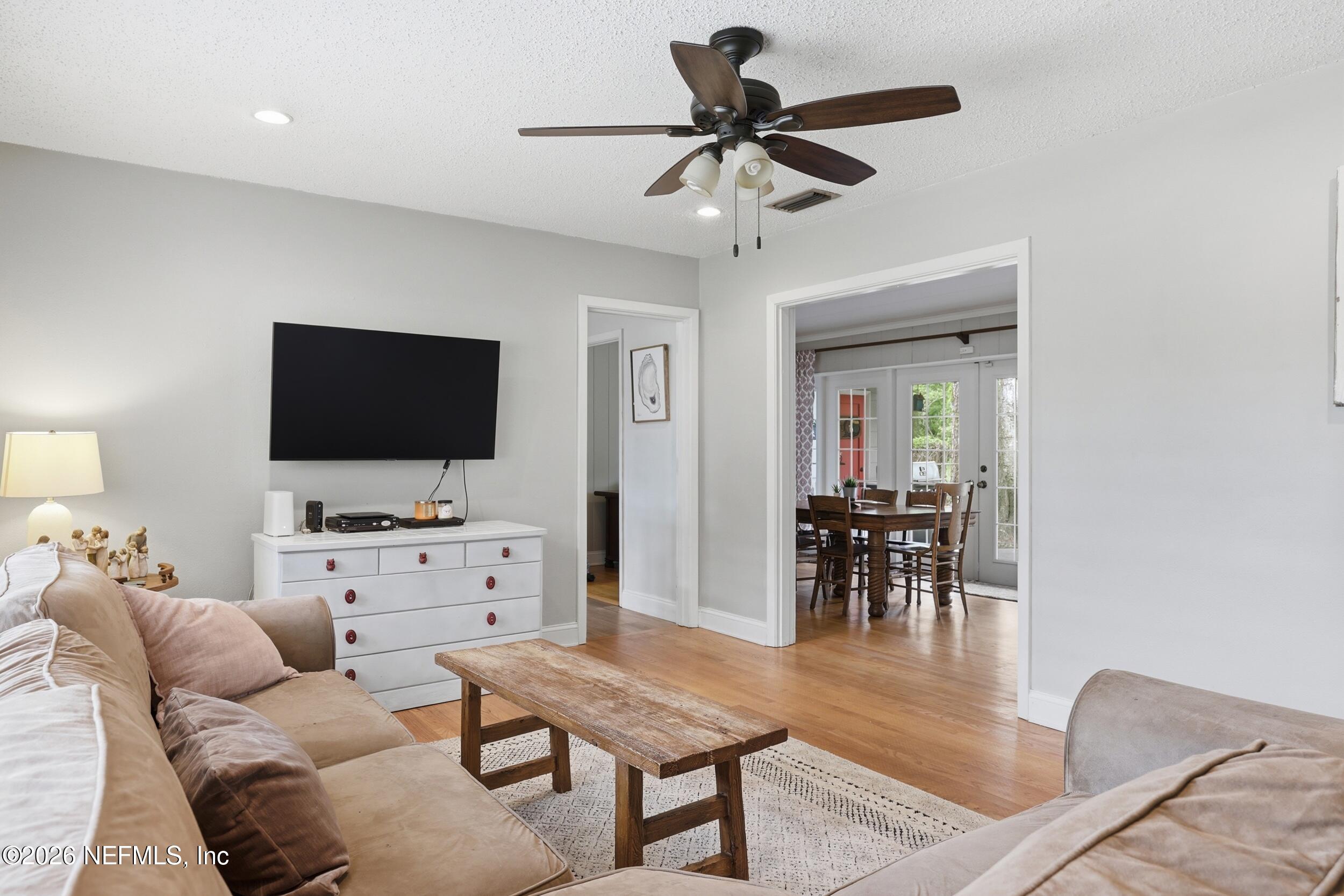 Built to last and full of charm, this solidly constructed home offers a warm and inviting feel from the moment you arrive. Inside you'll find beautiful hardwood floors run throughout, adding timeless character and durability. The layout features a separate living room and an oversized dining room that opens through French doors to a covered back patio, creating an easy flow for everyday living and entertaining. Step outside to enjoy a generously sized backyard that backs up to a peaceful wooded area, offering privacy and a natural backdrop. A firepit, playset and fruit trees complete the space, making it ready for fun! Enjoy the benefits of no HOA and no additional fees while still having a strong sense of community with neighborhood events and an active Facebook page. The local park is within walking distance, adding to the appeal of this inviting home.