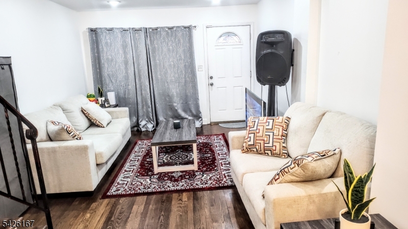 Bright & comfortable 2 bedroom 1.5 bath townhome style unit. Enjoy fixed budgeting w included Utilities. Hardwood floors throughout. 1st floor provides an open flow living and dining room area that leads to the kitchen and half bath. Kitchen boasts stainless appliances. Upstairs find two large bedrooms, full bath and lots of closet space. Sun on the private deck with just enough yard space. On street parking. EZ commute - walk 5 minutes to light rail to Exchange Place PATH station. 2 Minute walk to park. Close to stores, restaurants, laundry, transportation, NJTrnpk, GSP, Schools, Universities, Houses of Worship. Can be rented partially furnished for additional $50/month. Tenant handles first $100.00 of repairs.