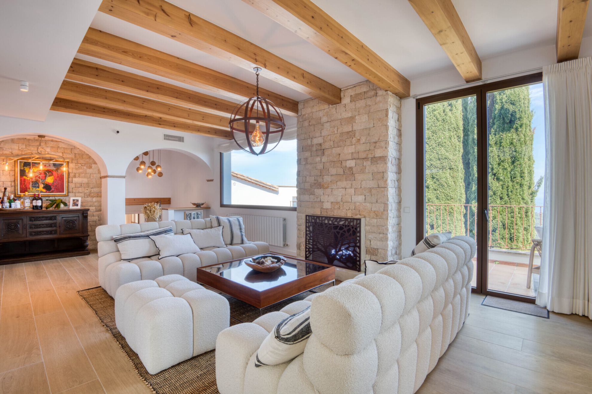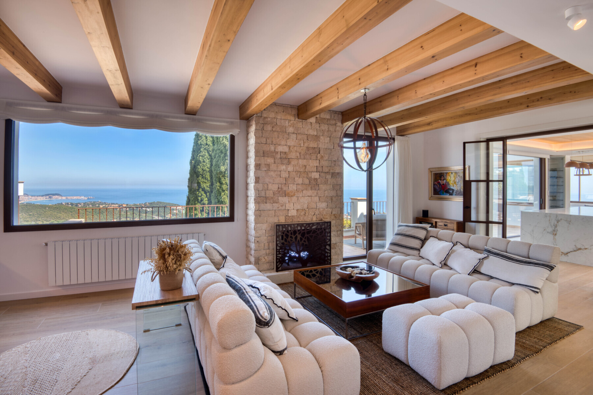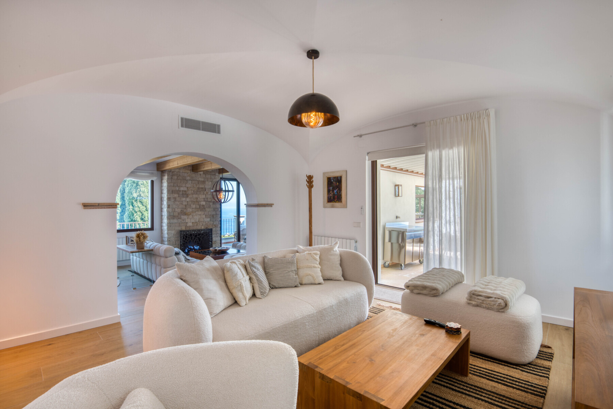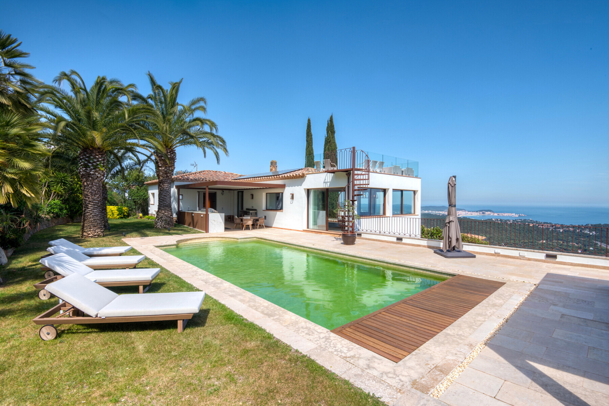 Outside, the property offers everything you need to enjoy the Costa Brava lifestyle: a private pool surrounded by relaxation areas, a chill-out space with privileged views, a summer kitchen and several versatile outdoor corners. The closed garage, with space for three cars, also has a practical private gym designed for everyday comfort.