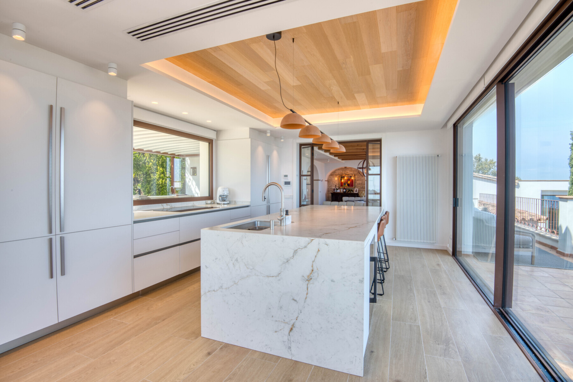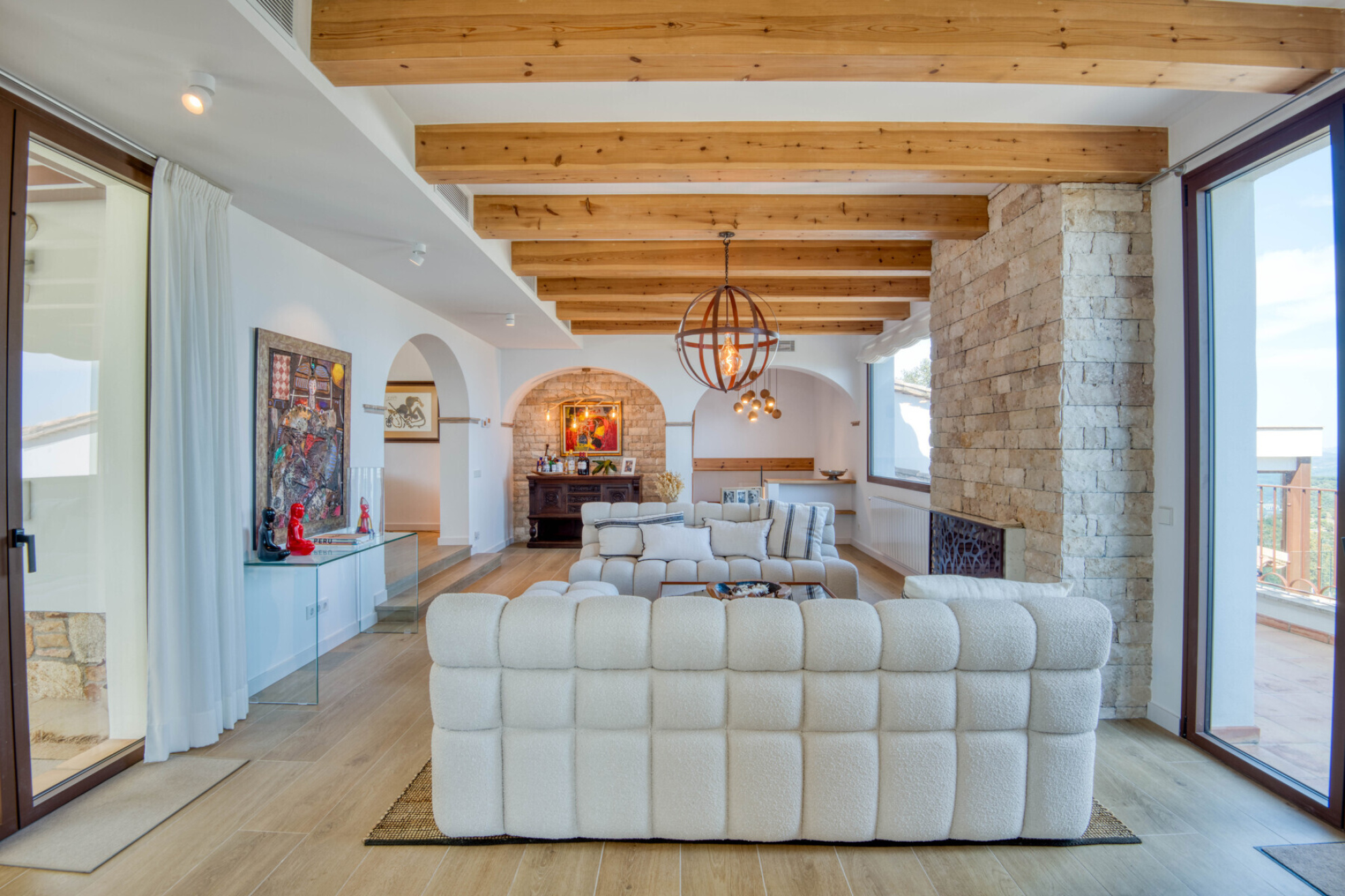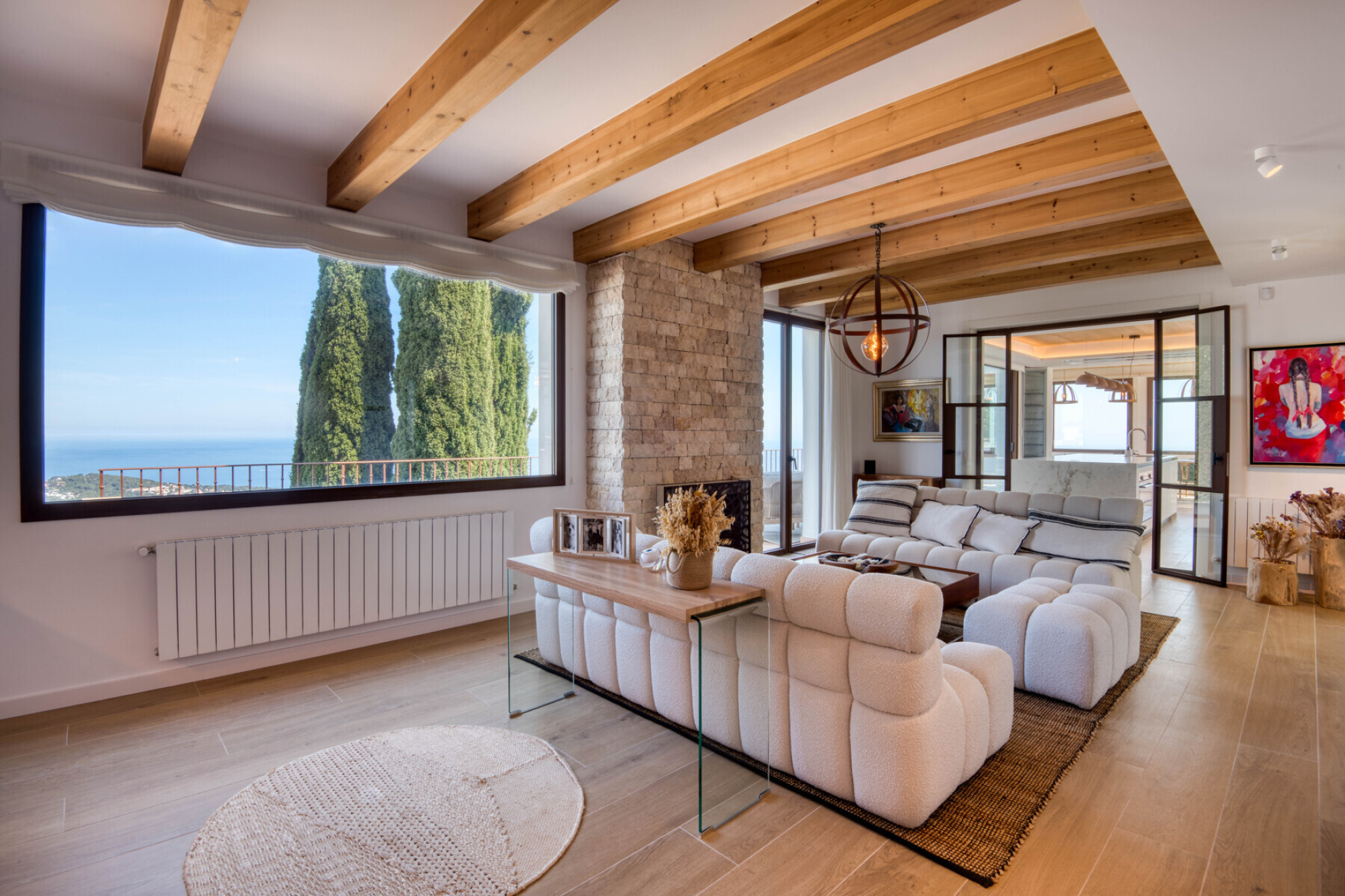 Outside, the property offers everything you need to enjoy the Costa Brava lifestyle: a private pool surrounded by relaxation areas, a chill-out space with privileged views, a summer kitchen and several versatile outdoor corners. The closed garage, with space for three cars, also has a practical private gym designed for everyday comfort.