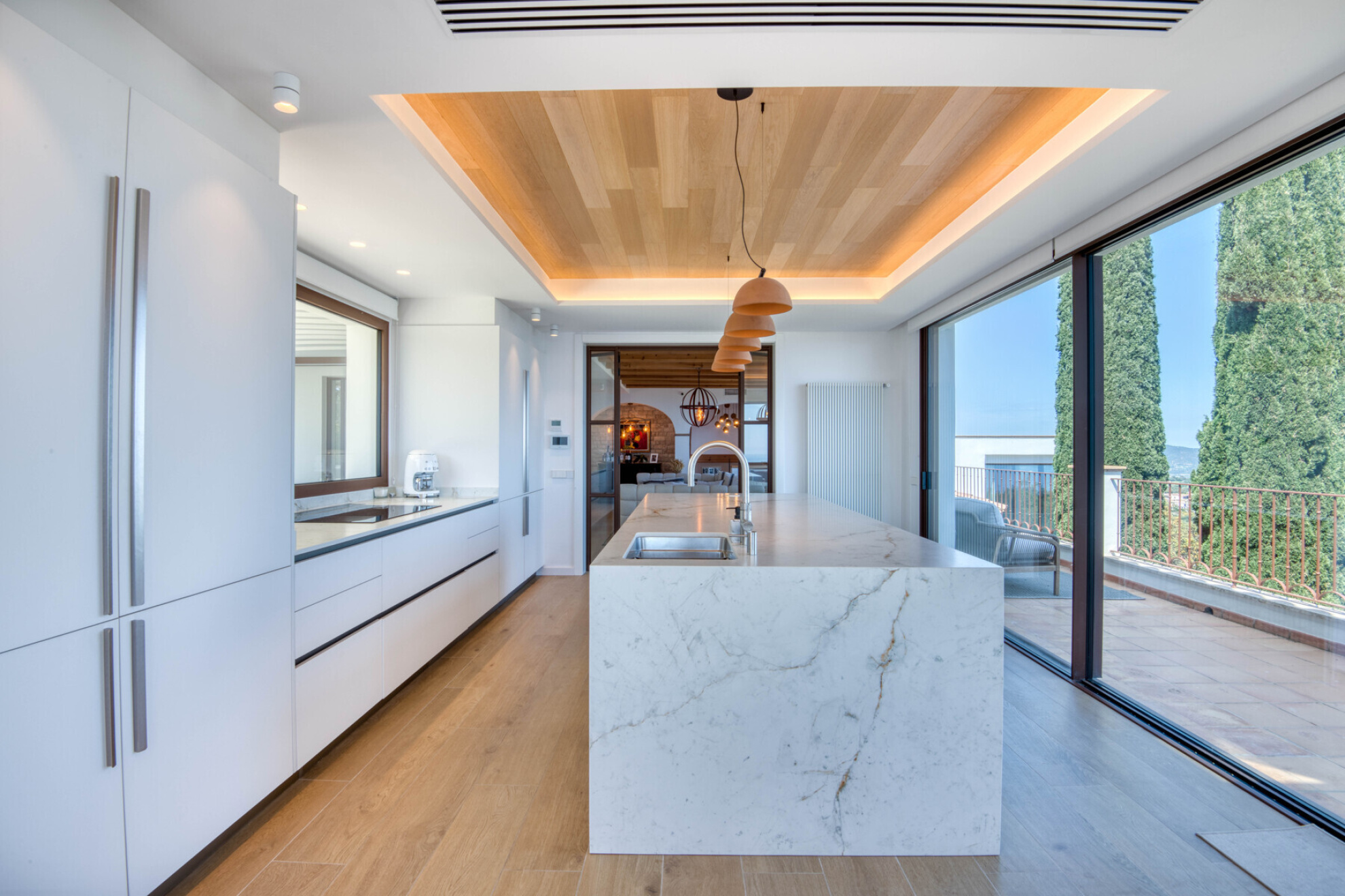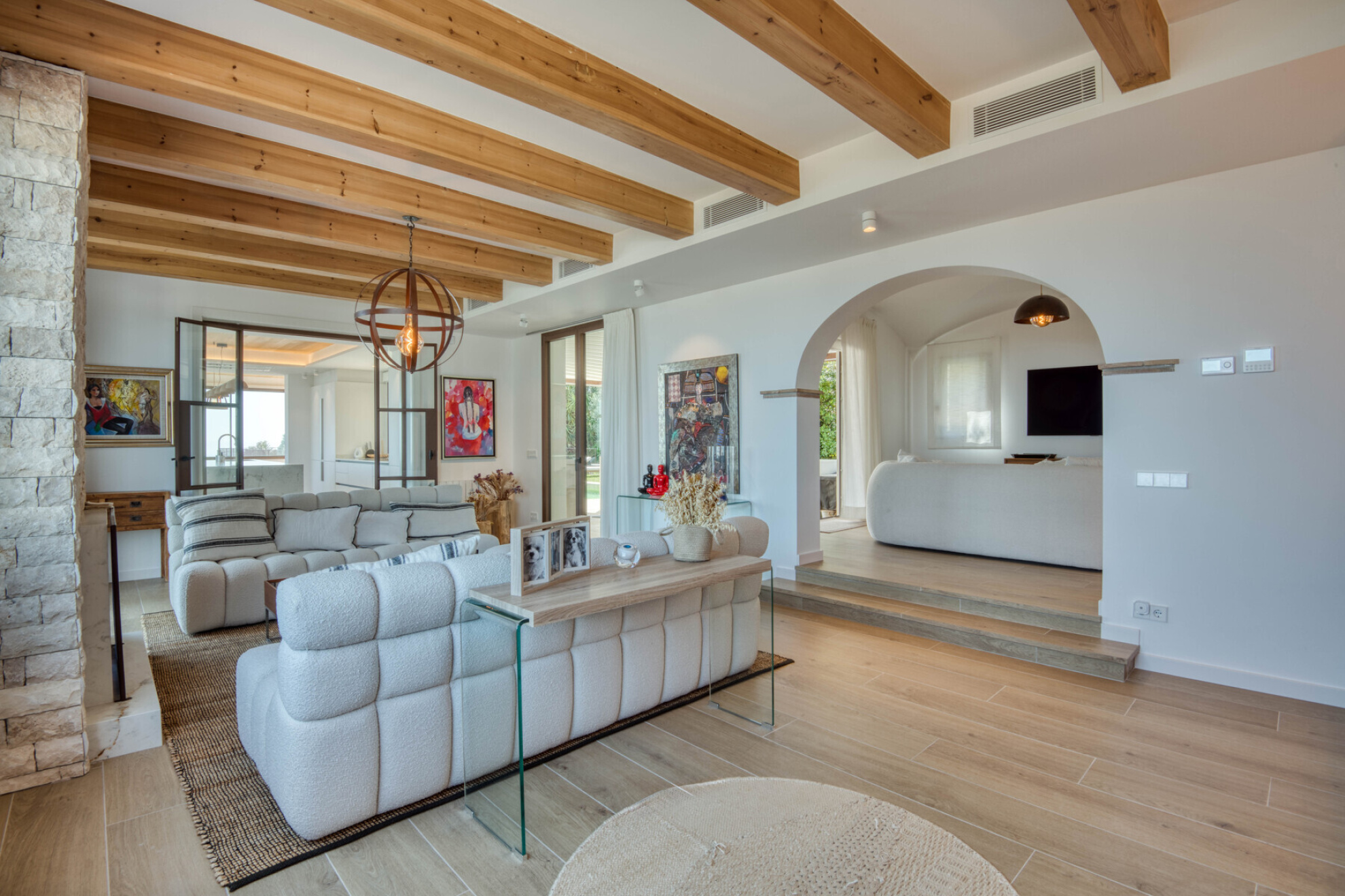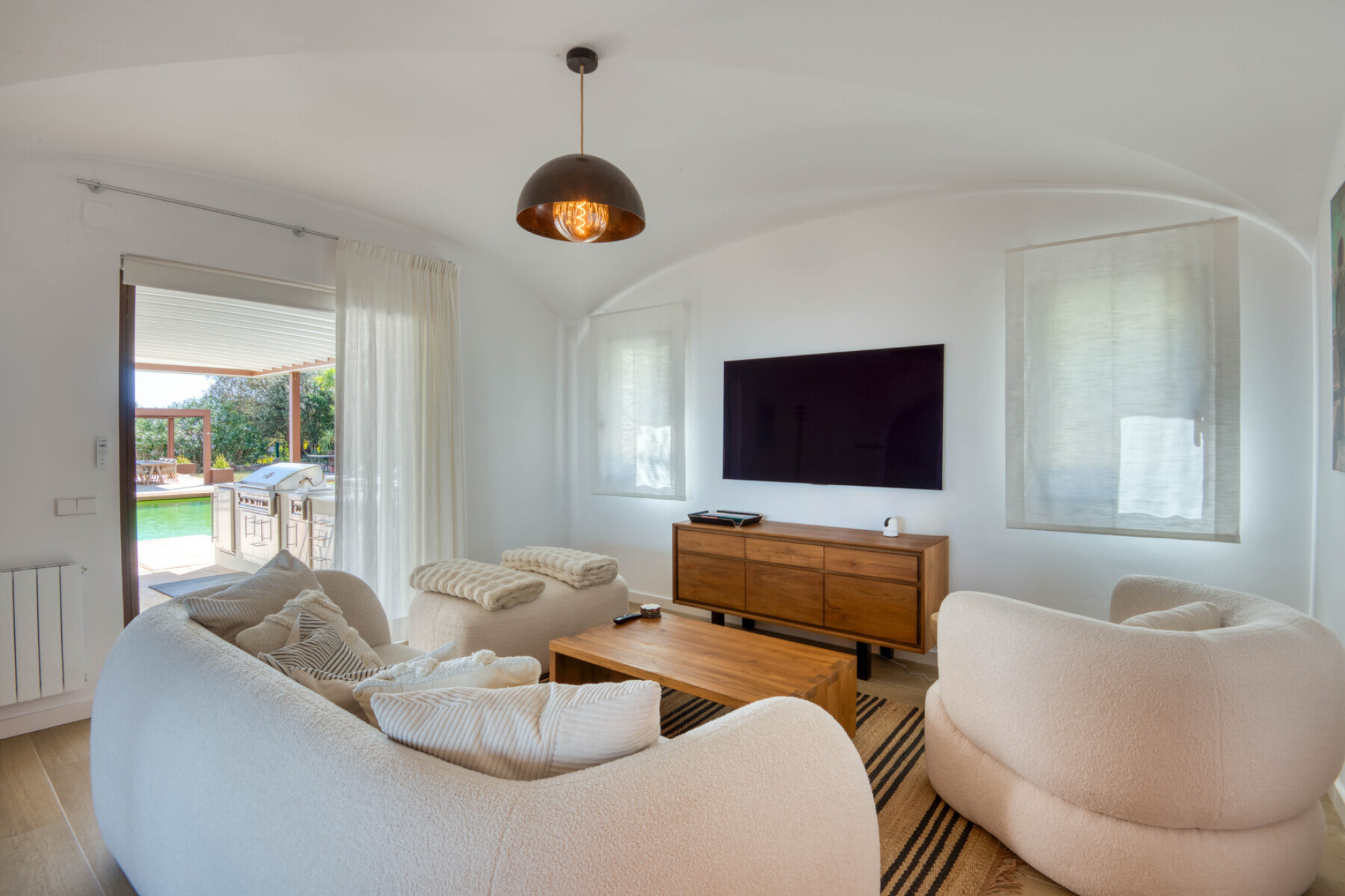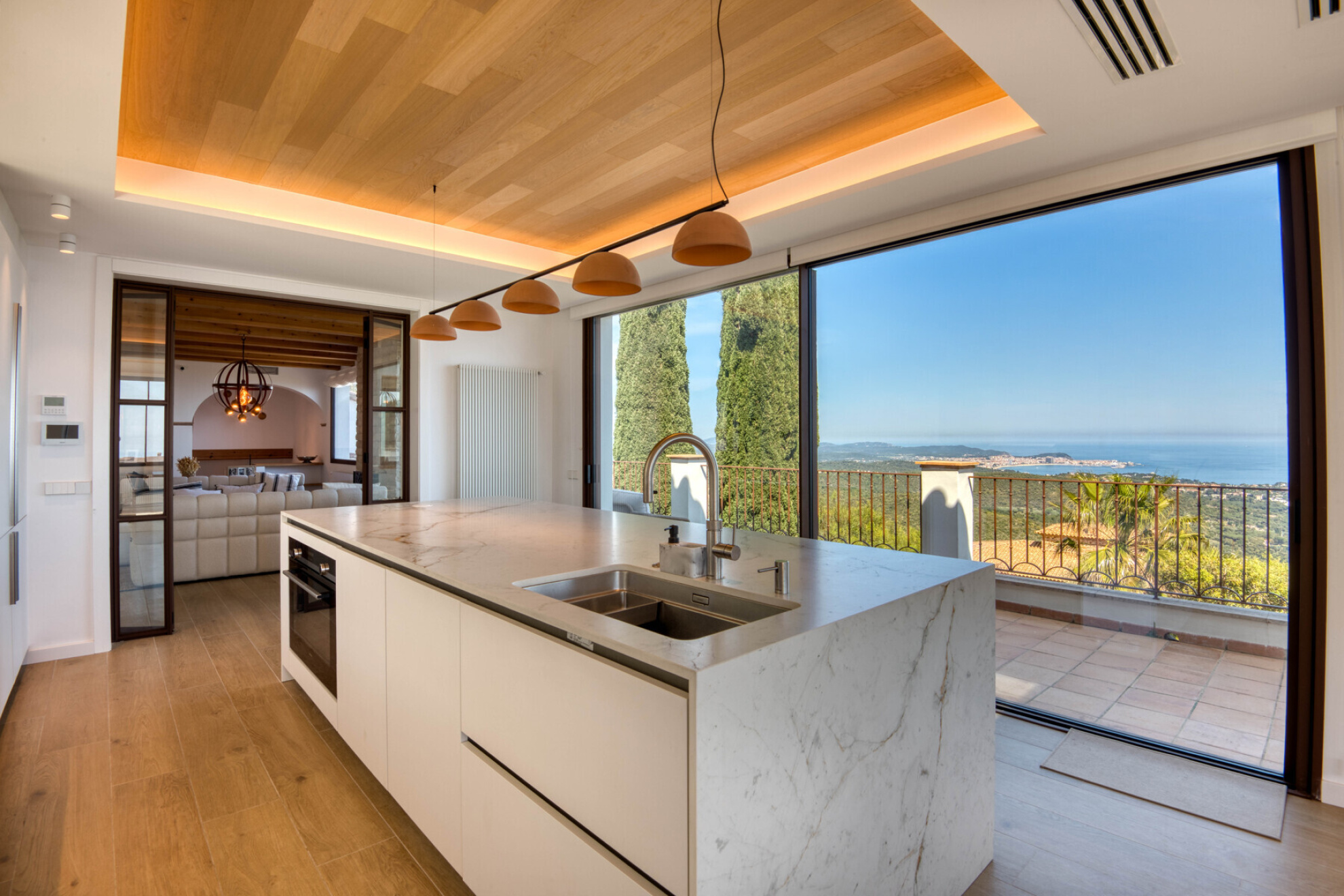 Outside, the property offers everything you need to enjoy the Costa Brava lifestyle: a private pool surrounded by relaxation areas, a chill-out space with privileged views, a summer kitchen and several versatile outdoor corners. The closed garage, with space for three cars, also has a practical private gym designed for everyday comfort.