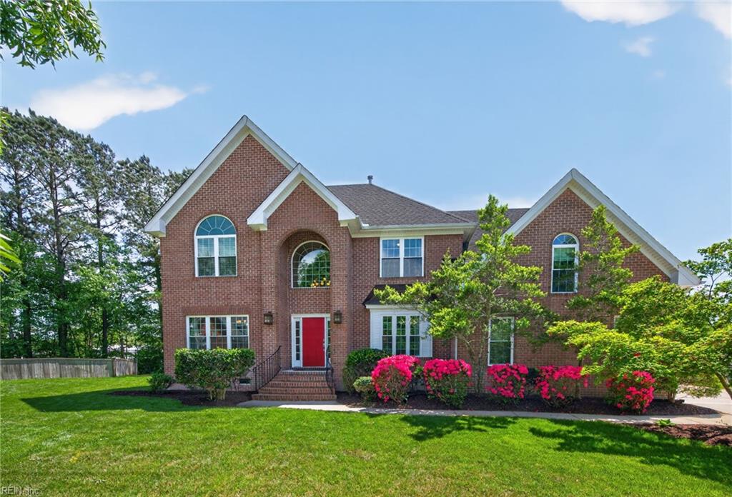 5-bed, 3-ba home tucked on a cul-de-sac in the desirable Morgans Walke community. Built by LR Hill, this home welcomes you with a palatial foyer and sweeping open staircase. Cathedral ceilings and an open-concept layout create a bright, airy feel throughout the main living areas. A private first-floor bedroom oYers flexibility as a guest suite or home oYice. The large kitchen is great for entertaining, featuring an island, prep sink, with ample workspace and storage. Upstairs, the grand primary suite includes an oversized ensuite bath with a jetted tub for a true retreat. Outside you will enjoy your own backyard oasis with a saltwater pool, complete with a new liner and sand filter. Additional upgrades include a whole-house generator, all new windows, irrigation system, and air purification system. Ideally located with convenient access to Virginia Beach, Chesapeake, and major interstates, offering the perfect blend of peaceful country living and city convenience.
