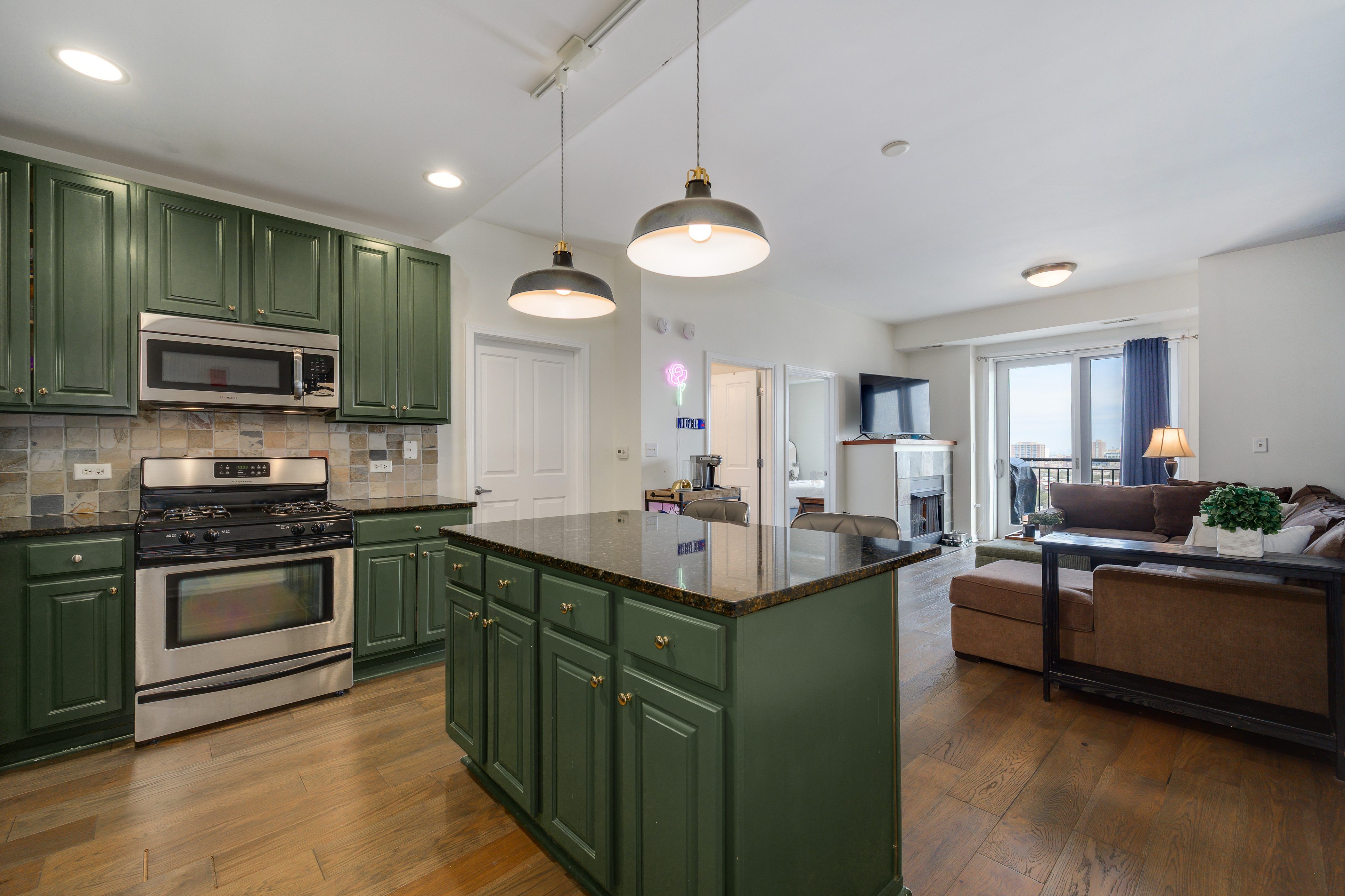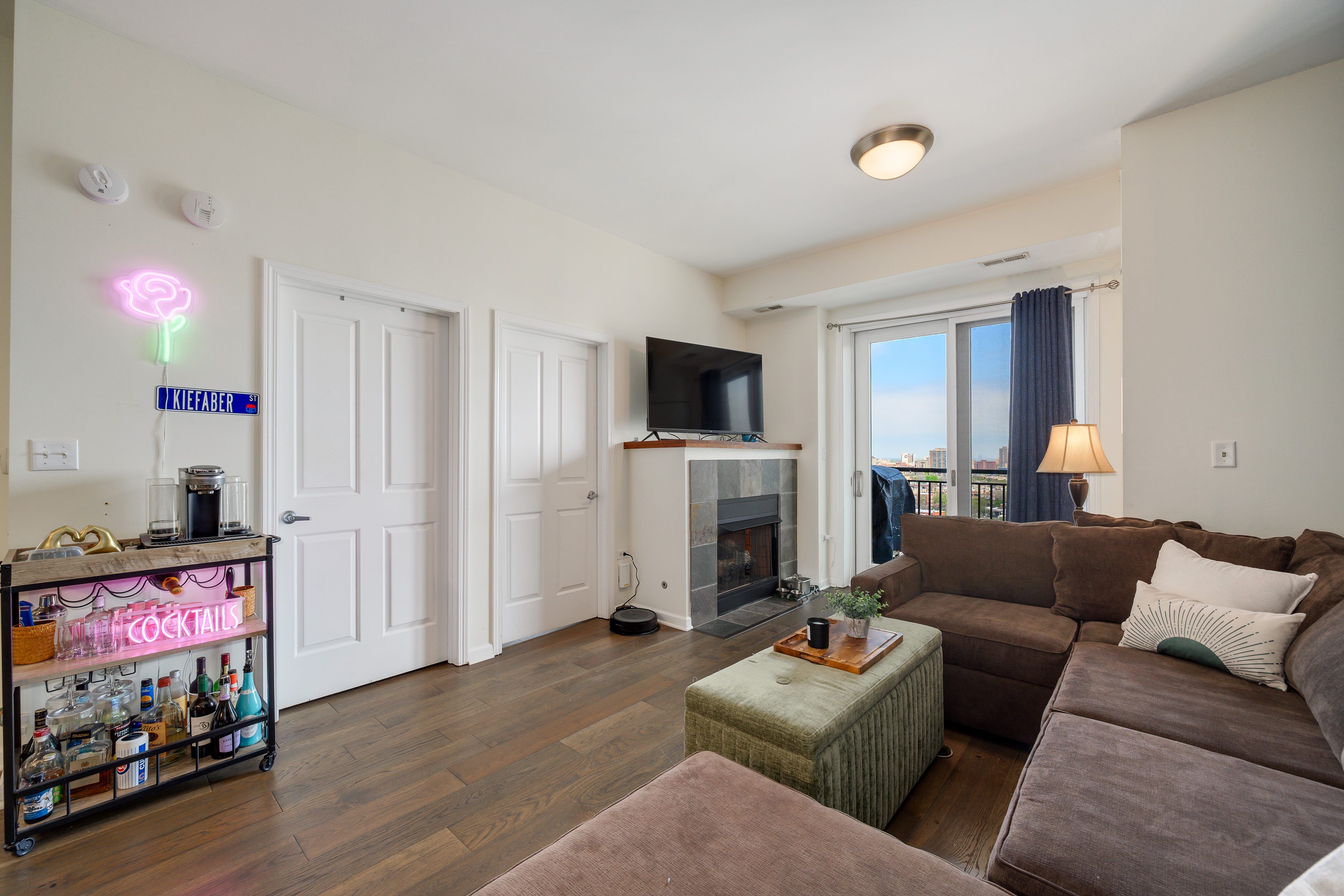Bright, beautiful, and effortlessly livable-spacious corner 2 bedroom, 1 bath residence in the heart of Wrigleyville/Lakeview offers an open-concept layout designed for modern living. Wonderful features include newly installed Wide-plank flooring flowing throughout leading to an updated island kitchen with vibrant freshly painted cabinetry and stone countertops. Generous bedroom sizes, gas fireplace, in-unit laundry, and abundant natural light enhance the home's comfort, while a large private balcony provides the perfect setting for grilling and taking in sweeping views of the city skyline, Lake Michigan, and even Wrigley Field. Complete with attached off-street parking included in the price, this unit has low assessments, in a solid building including door staff, all in an unbeatable location just steps from shopping, dining, Wrigley, and the lake-this is city living at its finest!