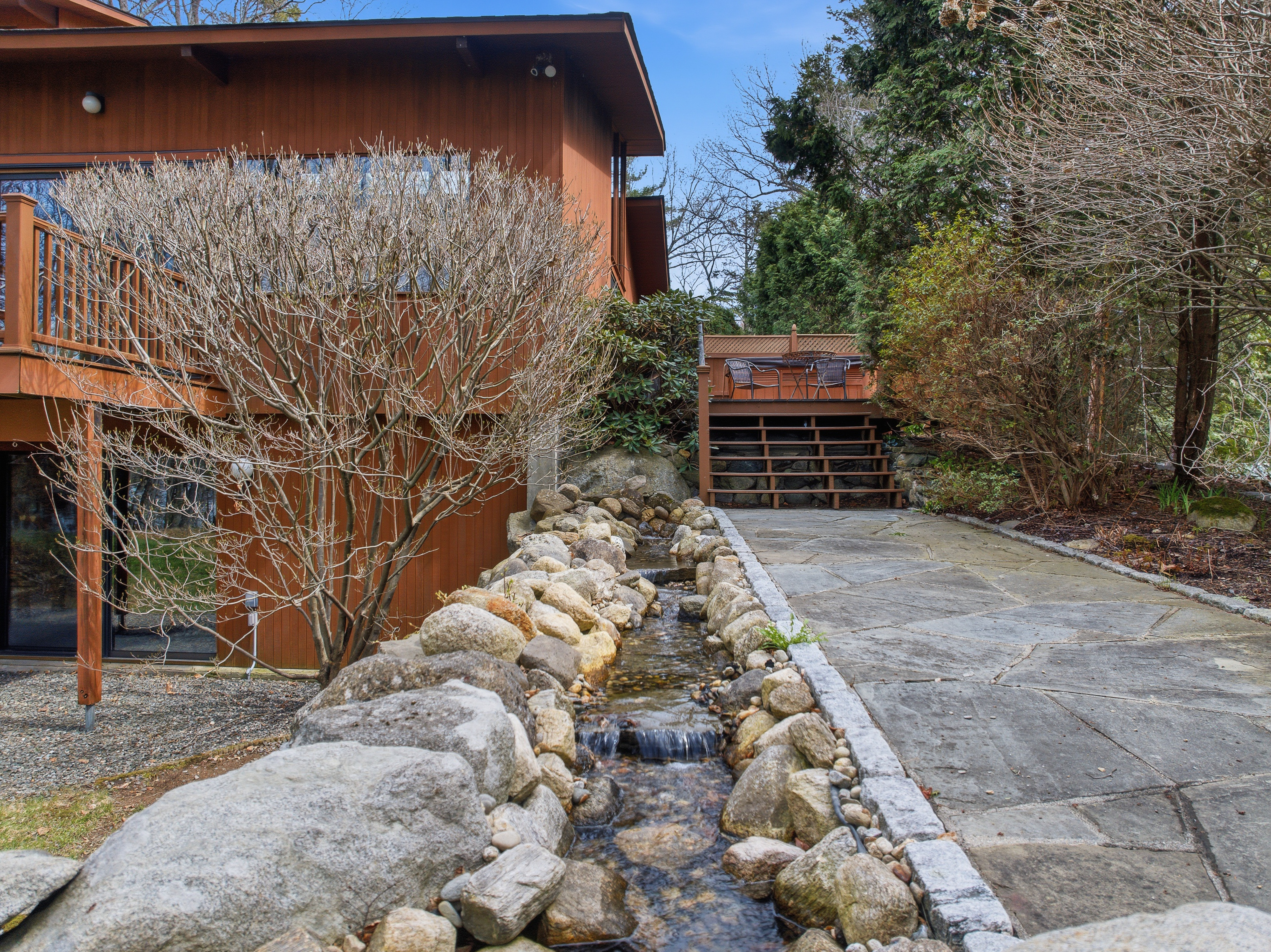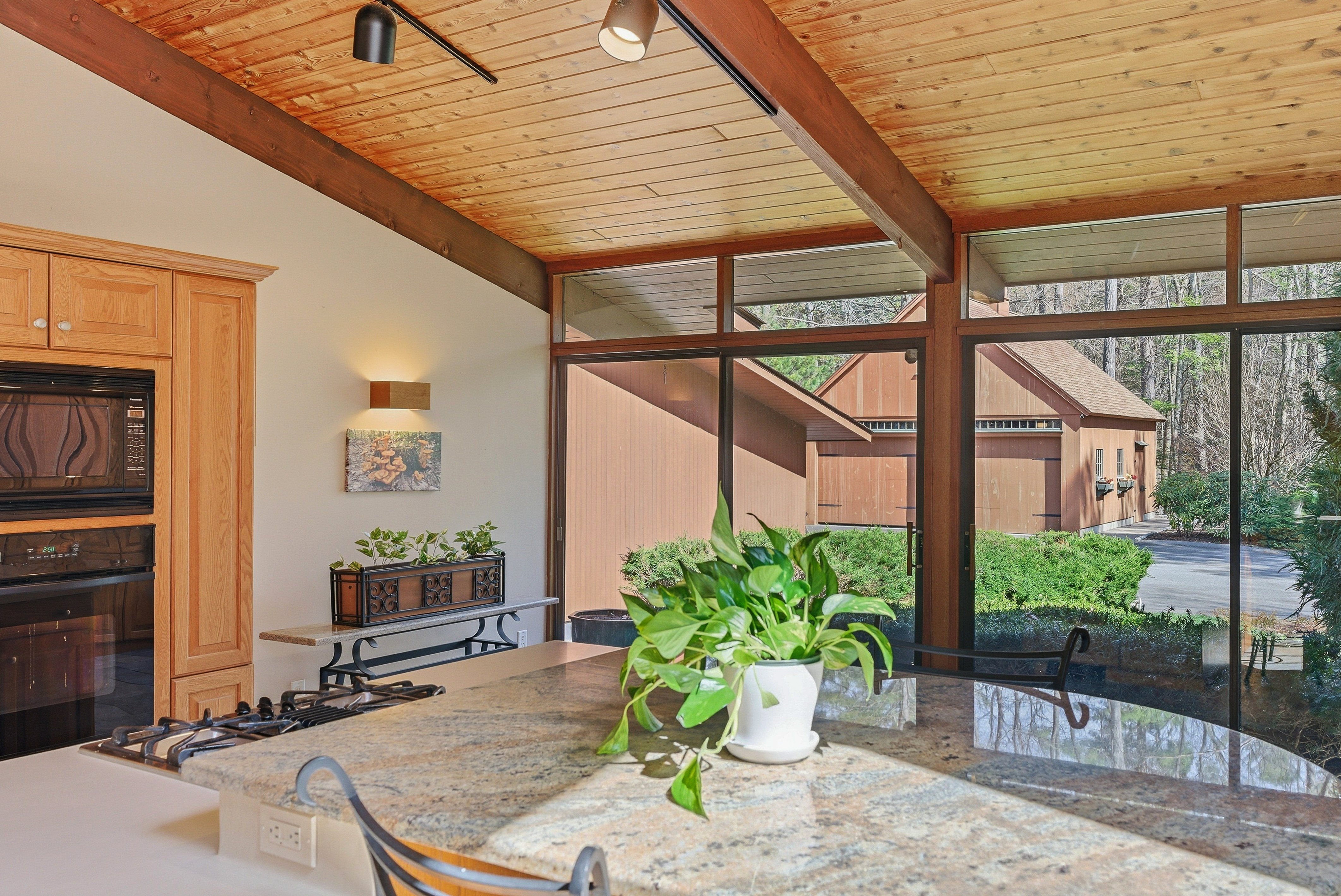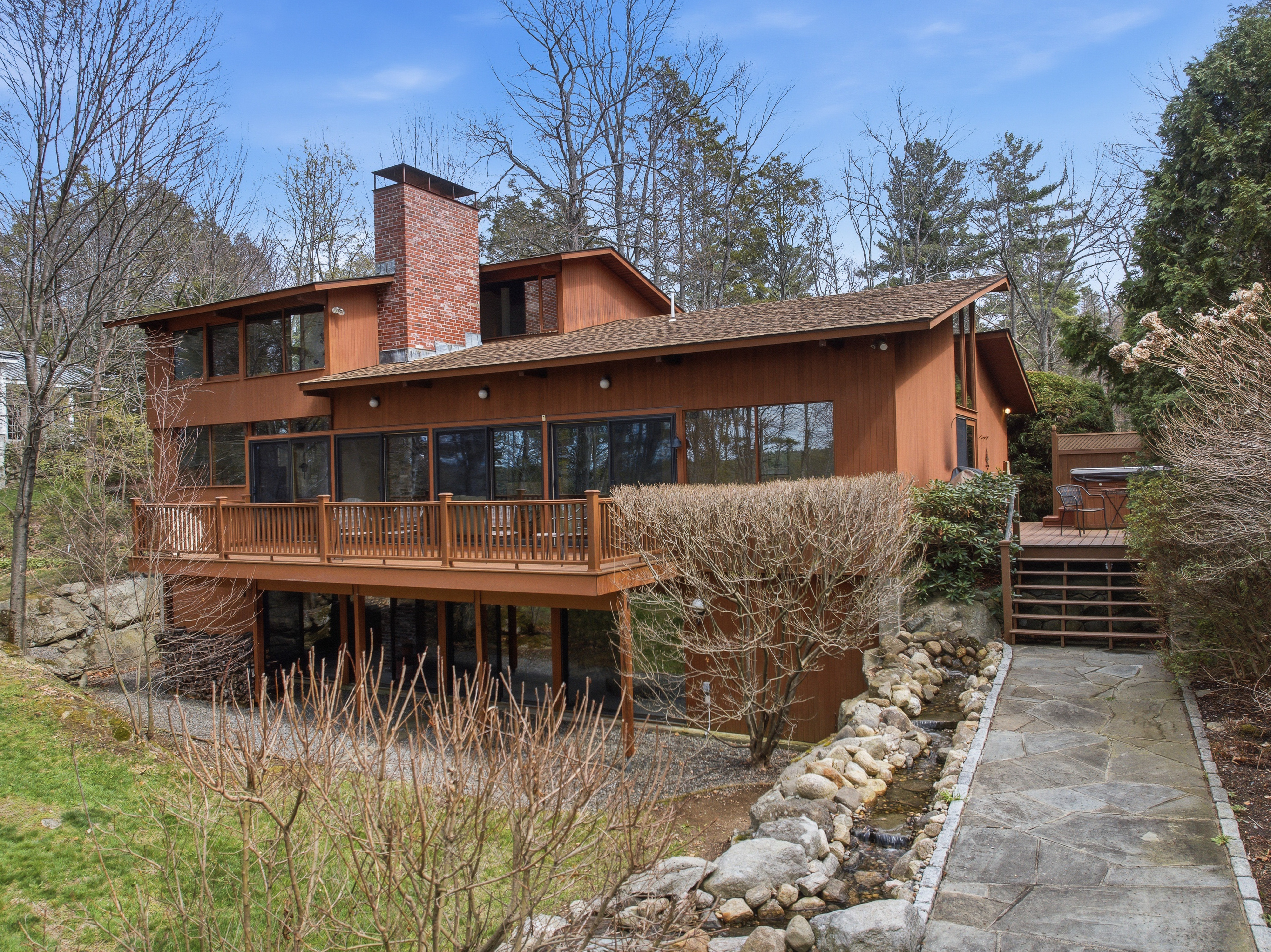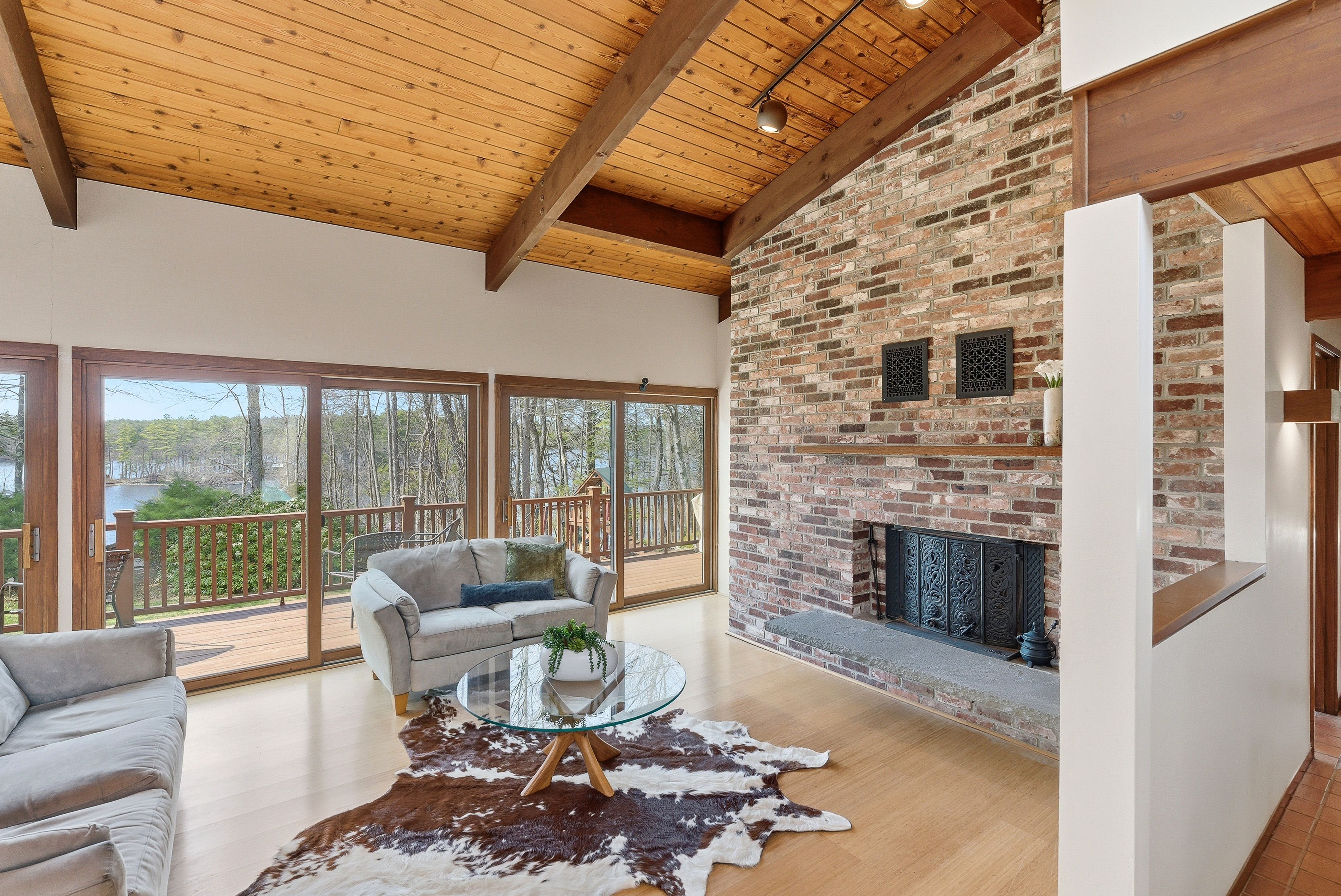 Imagine panoramic westerly views over the pond as a part of everyday life. Oversized windows bring in both distant views and property's flora giving a feeling of being wrapped in nature. With meticulous care, the present owners have created inviting spaces for indoor living and entertainment. Cozy places to retreat, quiet spots for in-home offices,plus myriad outdoor play spaces to make this both a vacation and year-around home. The gazebo, tiered steps, pondside storage, "drive thru window" and floating dock (enough for a 20 ft boat) all make this a watersport enthusiast's dream. This stunning property offers versatile, accommodating living owners/guests of varying interests and abilities with options for single-level accessible living. Thoughtful use of high-quality materials and automated systems provides ease of maintenance. The barn is perfect for boat and extra storage.This pondside location cannot be beat with its private glacial silt beach and town/schools a short distance.