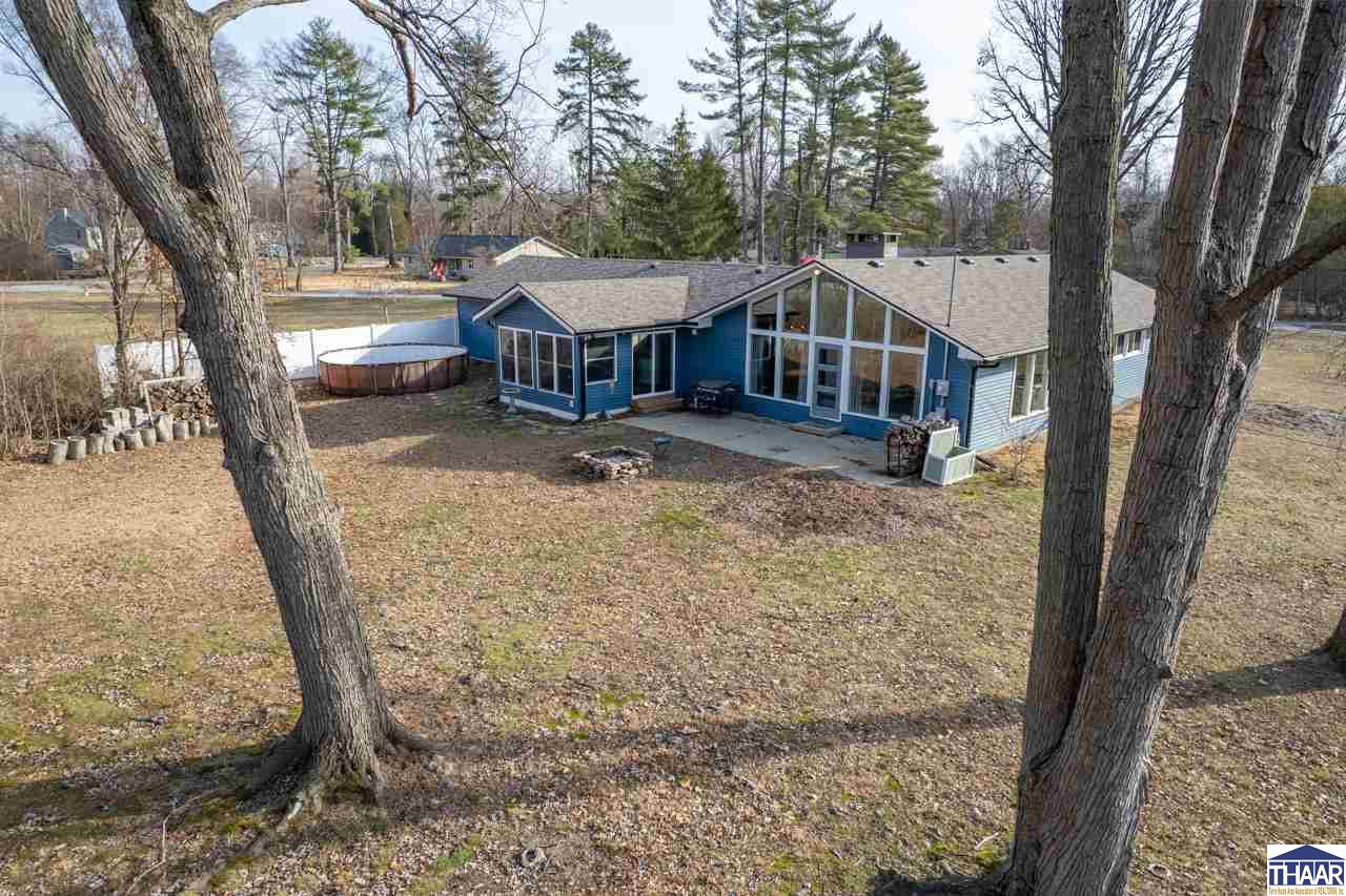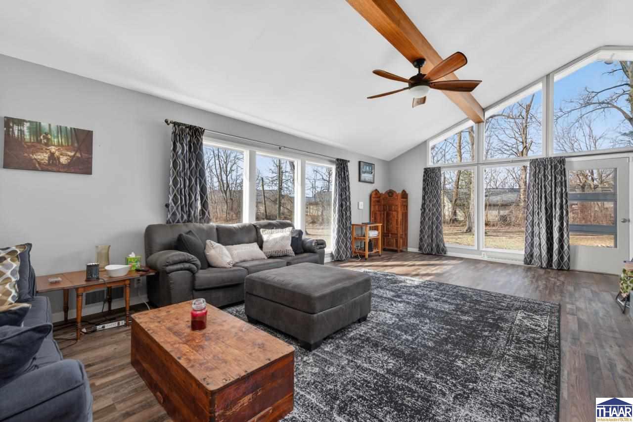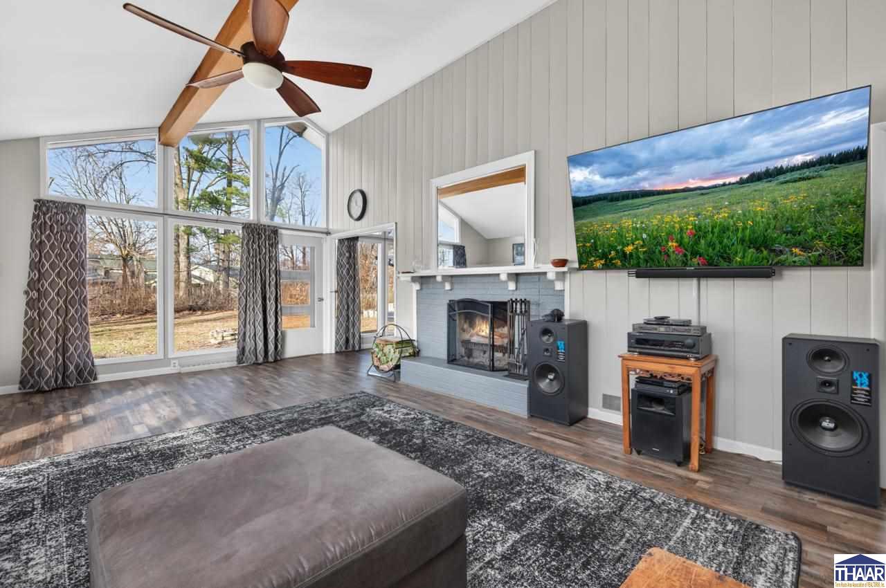 Welcome home to 117 Allendale Terrace, a beautifully updated property that blends timeless mid-century modern charm with modern comfort. Sitting on nearly an acre surrounded by mature trees and manicured landscaping, this home offers both privacy and convenience. Step through the foyer into an oversized living room featuring a stunning wall of windows, vaulted ceilings, and a cozy fireplace - a perfect space for everyday living or entertaining. The dining room flows seamlessly into the updated kitchen, complete with navy cabinetry, tile backsplash, and stainless steel appliances. Just off the kitchen, a versatile flex space offers the ideal spot for an office, den, or additional living area. A highlight of this home is the brand-new sunroom, thoughtfully designed with a breakfast bar and panoramic views of the peaceful backyard. The primary bedroom includes its own en-suite bath, while two additional bedrooms and a full hall bath provide comfortable accommodations for guests or family members. Luxury vinyl plank flooring runs throughout for a cohesive and stylish finish. Outside, enjoy nearly an acre of outdoor living with a new fence, mature trees, and plenty of space to relax and play. Additional updates include a new roof in 2024, ensuring confidence and peace of mind. This one is truly move-in ready and full of character - call broker for more information!