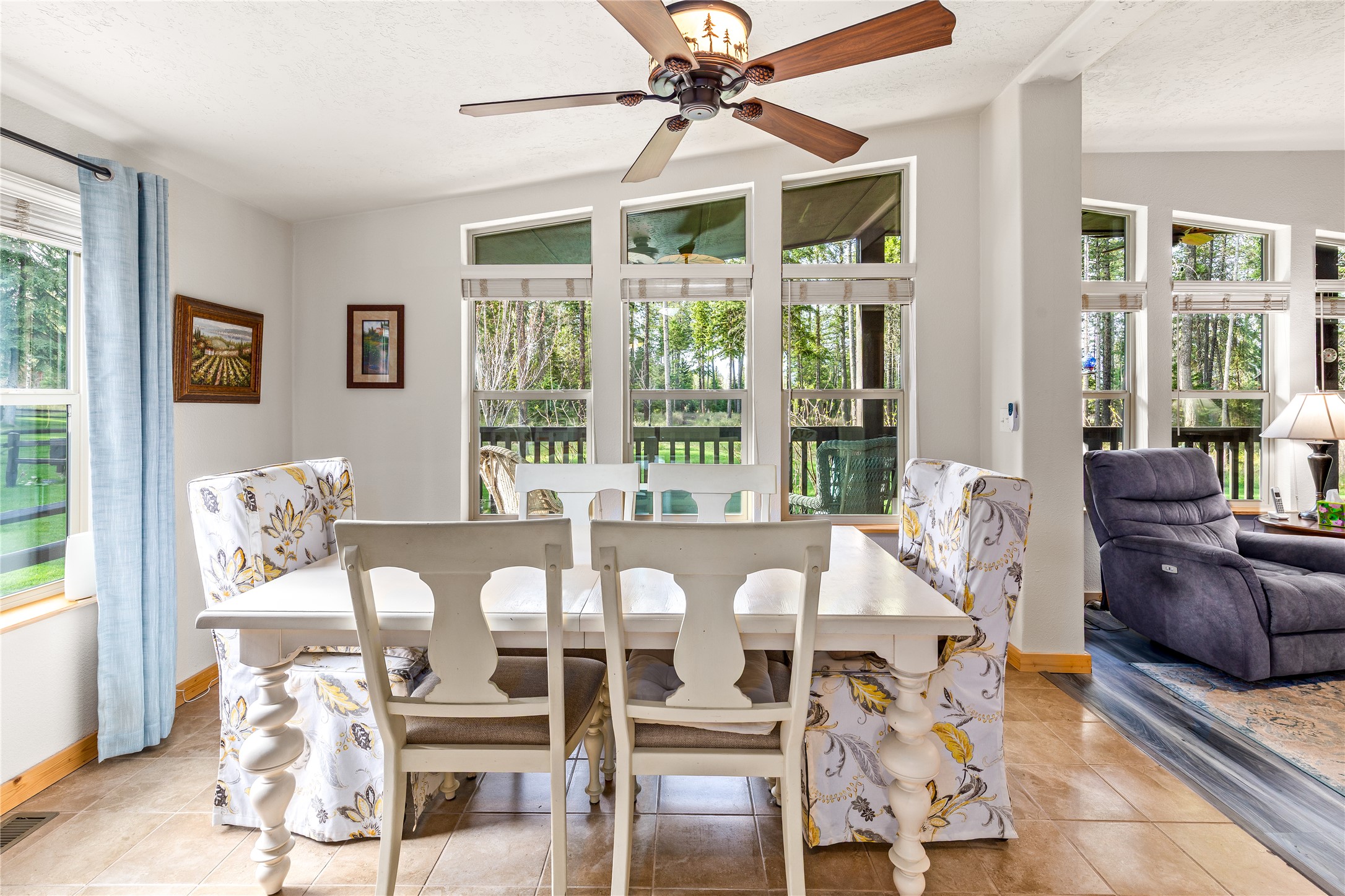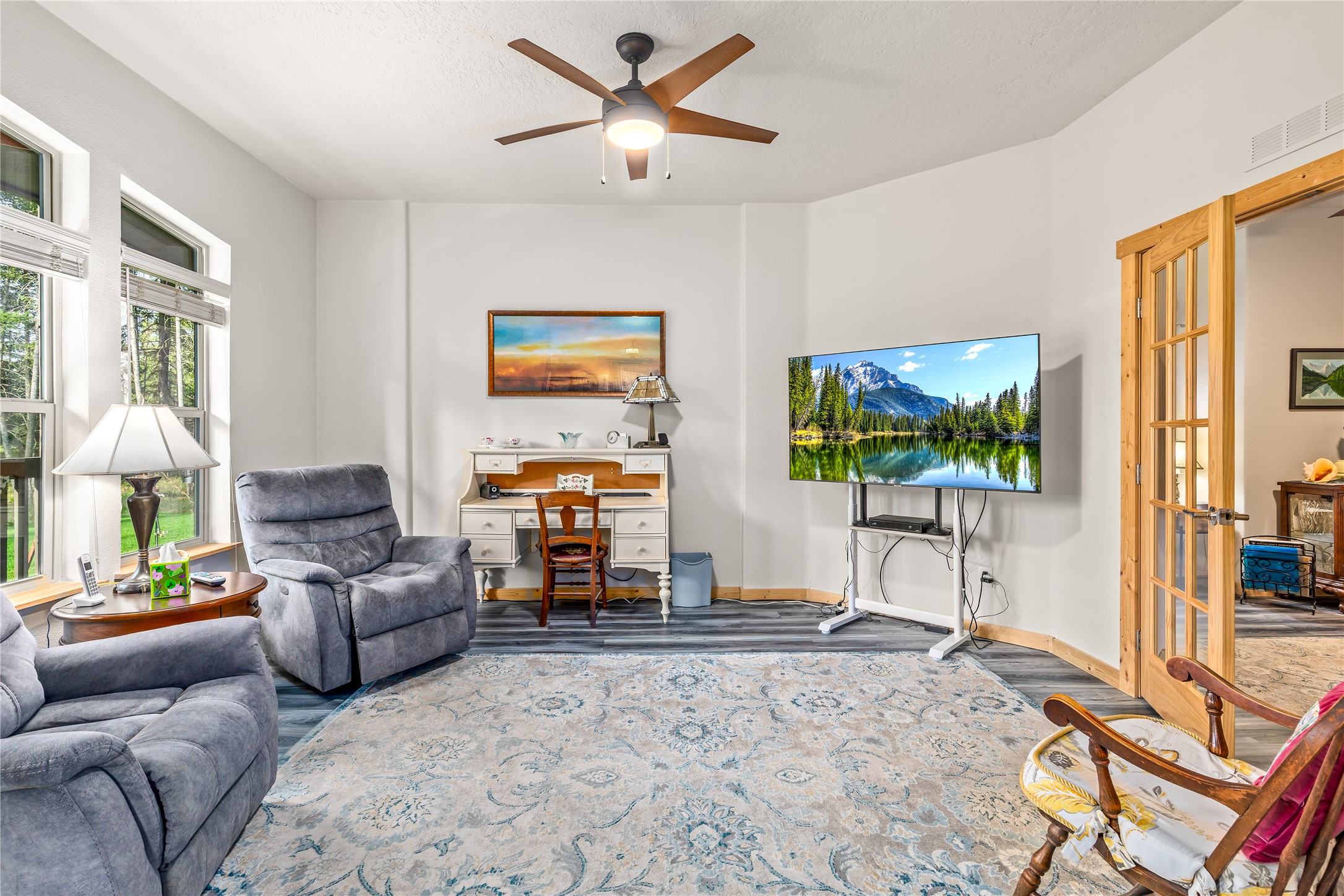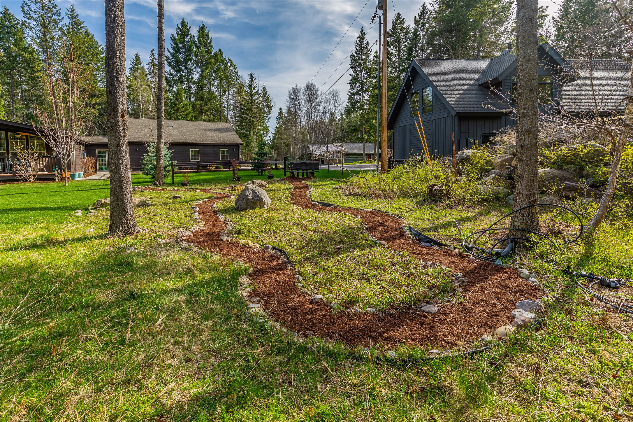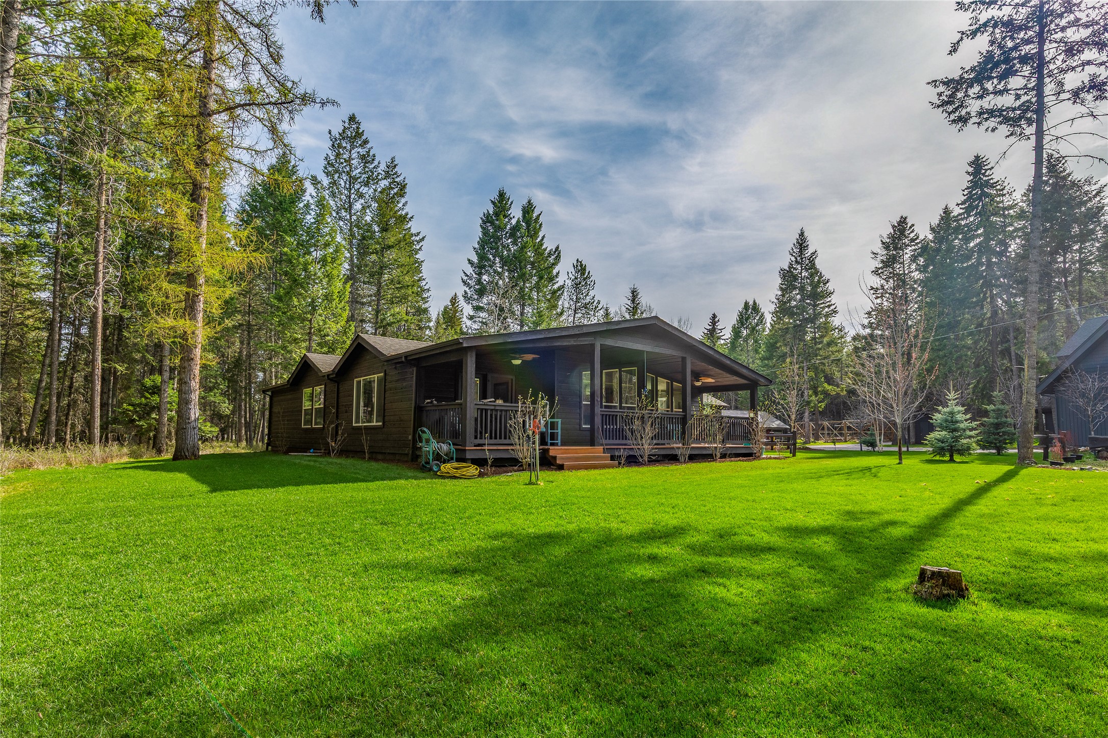 Tucked away at the end of the road on sought-after Blanchard Lake Rd, this 3-acre property offers the kind of peace, privacy, and pride of ownership that's hard to find. Built in 2018, the home sits in a truly desirable area just a few miles south of town, surrounded by beautifully maintained grounds and thoughtfully cared-for gardens that clearly reflect years of attention and love. The 1,920 sq ft manufactured home features 3 bedrooms, 2 full bathrooms, and a highly functional layout with two separate living areas, a breakfast nook, and a dedicated dining room. Vaulted ceilings and an abundance of windows bring in natural light throughout, creating a bright and inviting interior. A fully enclosed breezeway connects the home to the garage, adding both convenience and additional usable space. The garage itself offers even more flexibility, with two finished rooms and a half bath at the front - perfect for a shop, craft room, studio, or home office setup. Enjoy Montana living from the expansive front deck overlooking the lush yard and gardens, all set in a quiet, end-of-the-road location that enhances the sense of privacy and retreat. Including the breezeway and finished spaces, the property offers approximately 2,596 square feet of usable living area - an exceptional value for acreage, privacy, and versatility in the Whitefish area.